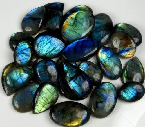 Labradorite cabochons are stunning gemstones known for their mesmerizing play of colors, called "labradorescence." These stones, typically cut into smooth, rounded shapes (cabochons), showcase a beautiful array of iridescent hues, including blues, greens, golds, and sometimes even purple or orange, depending on the angle of light.