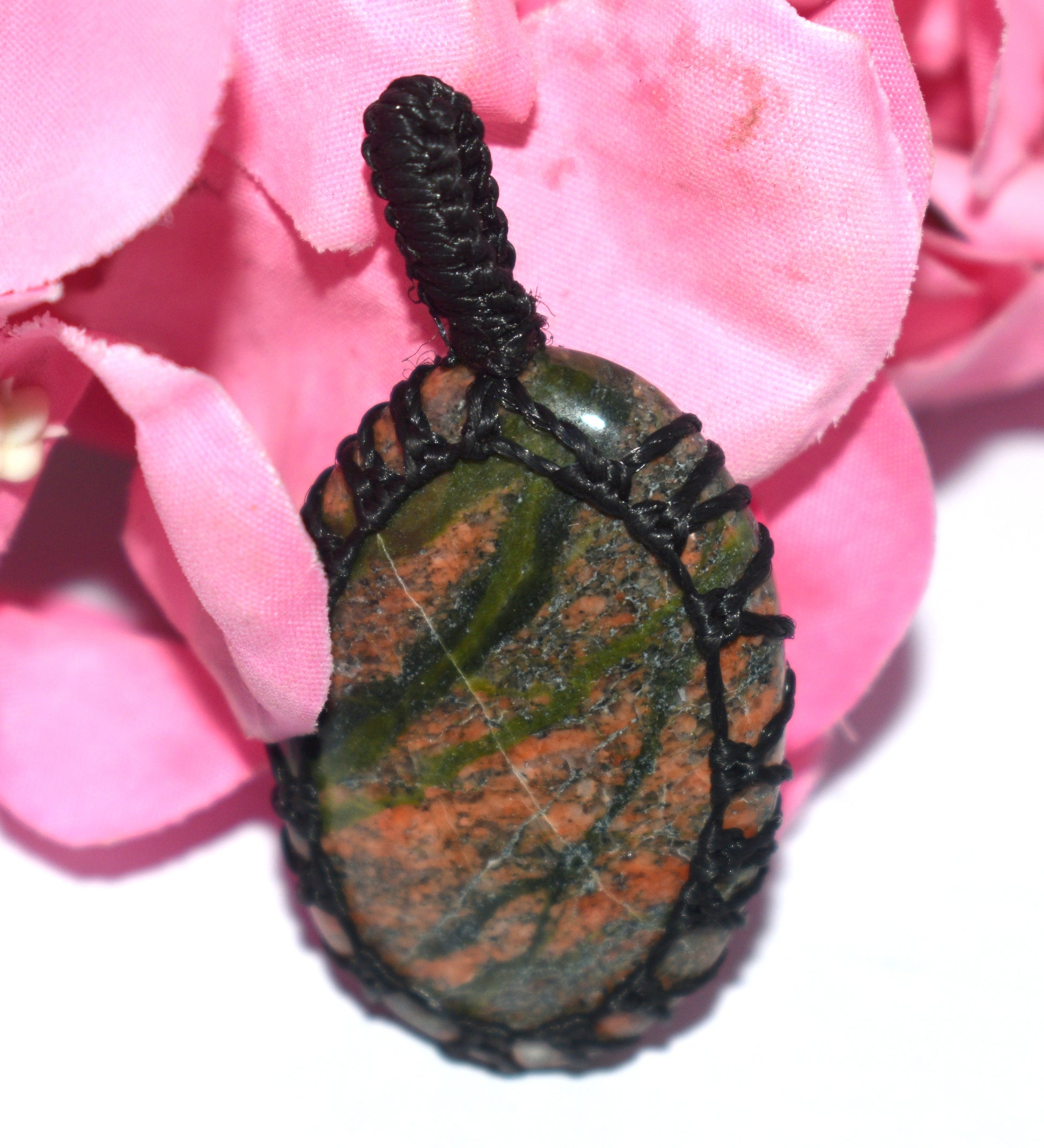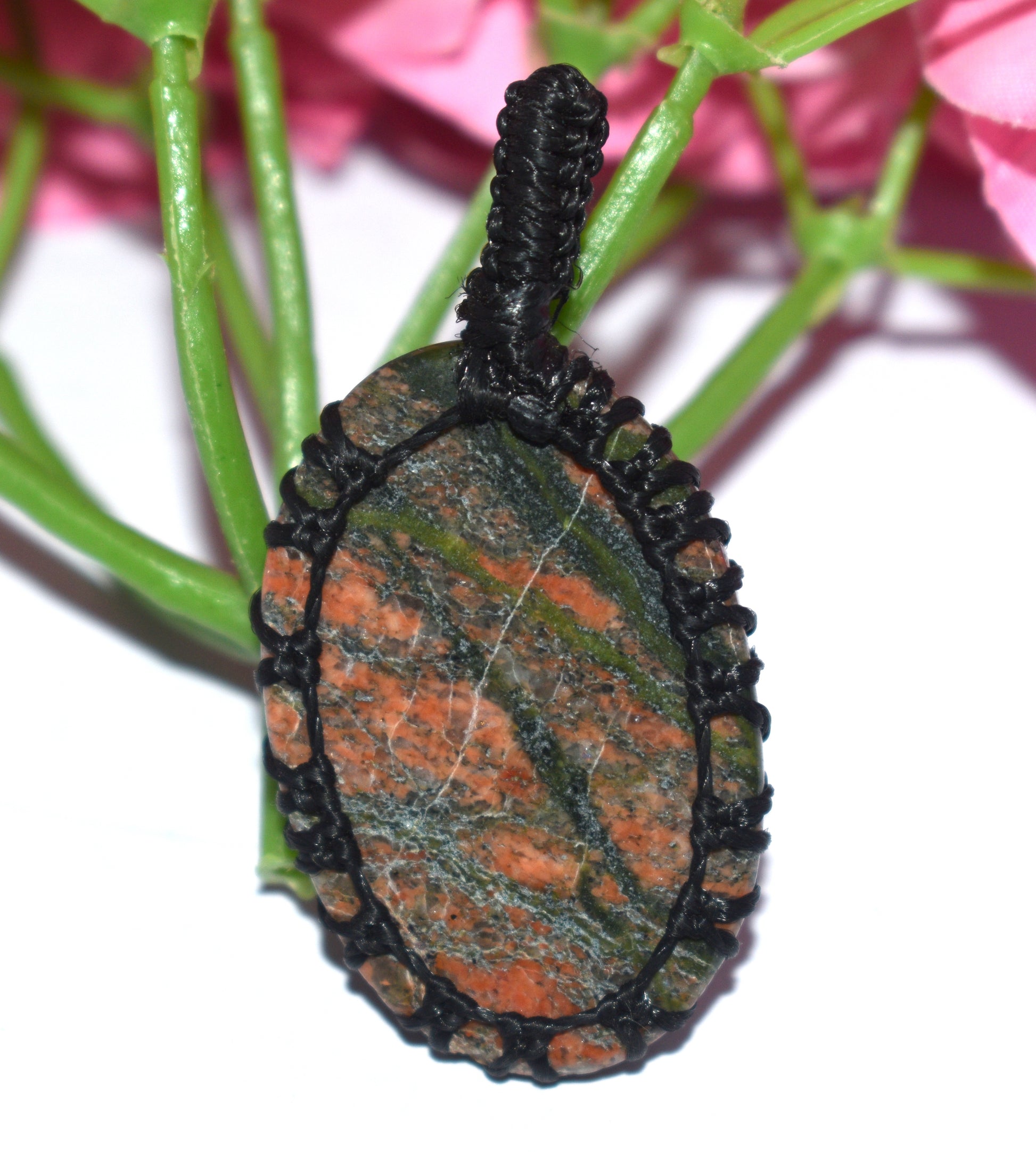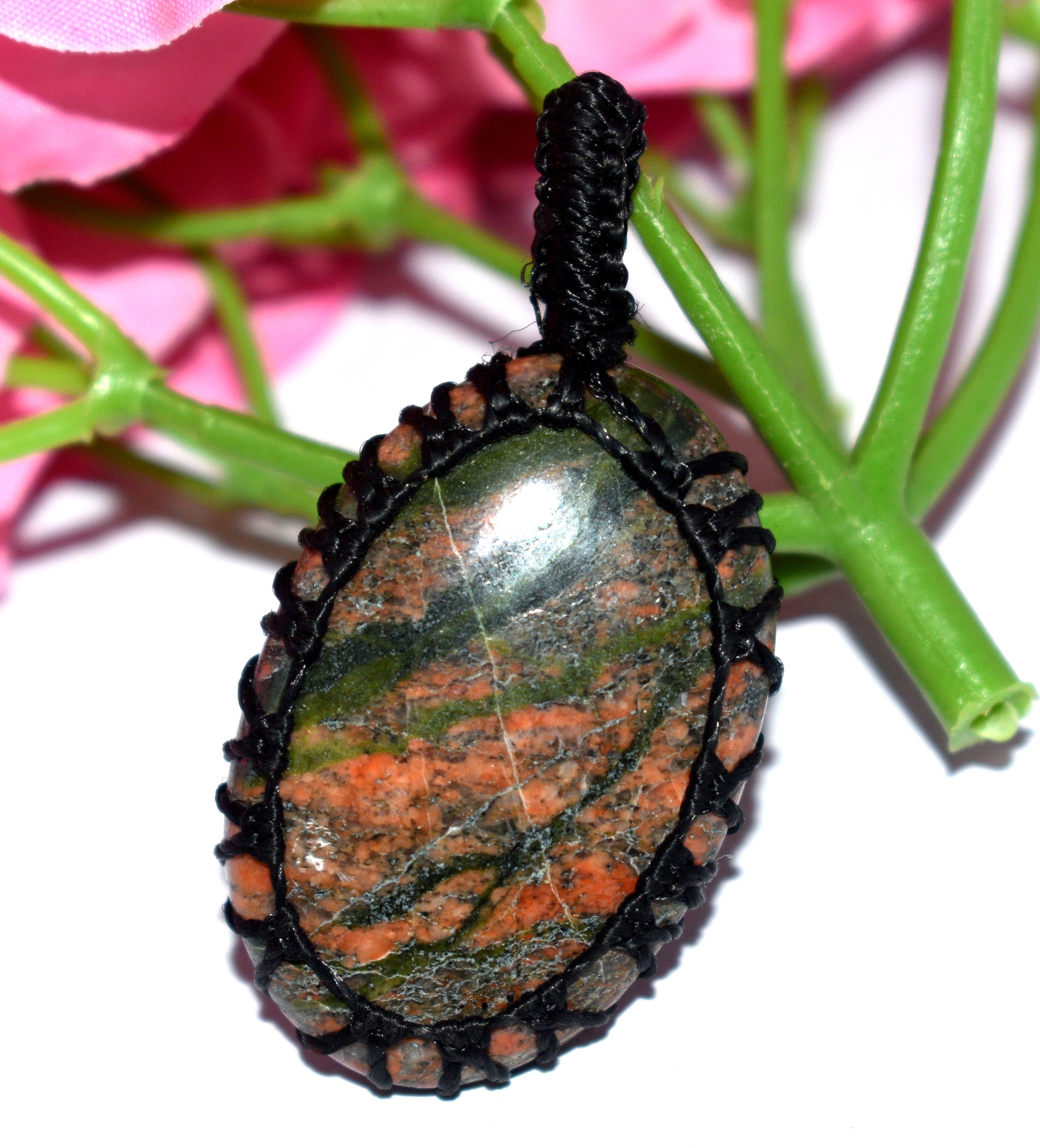 Beautiful Unakite Cabochon Macrame {Thread} Pendant - {Weight-13.70 Gram}