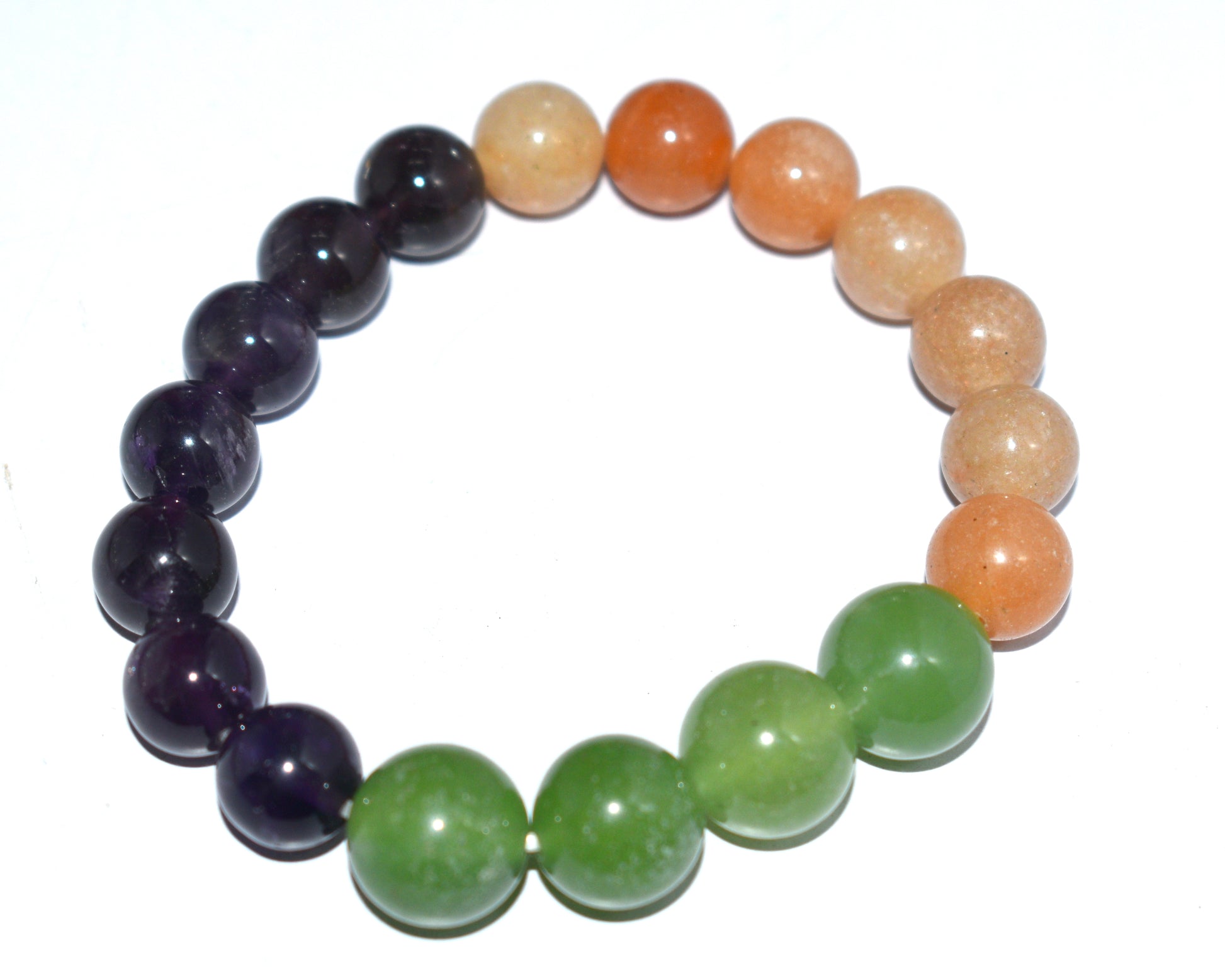Natural Green Aventurine, Red Aventurine, and Amethyst crystal beads