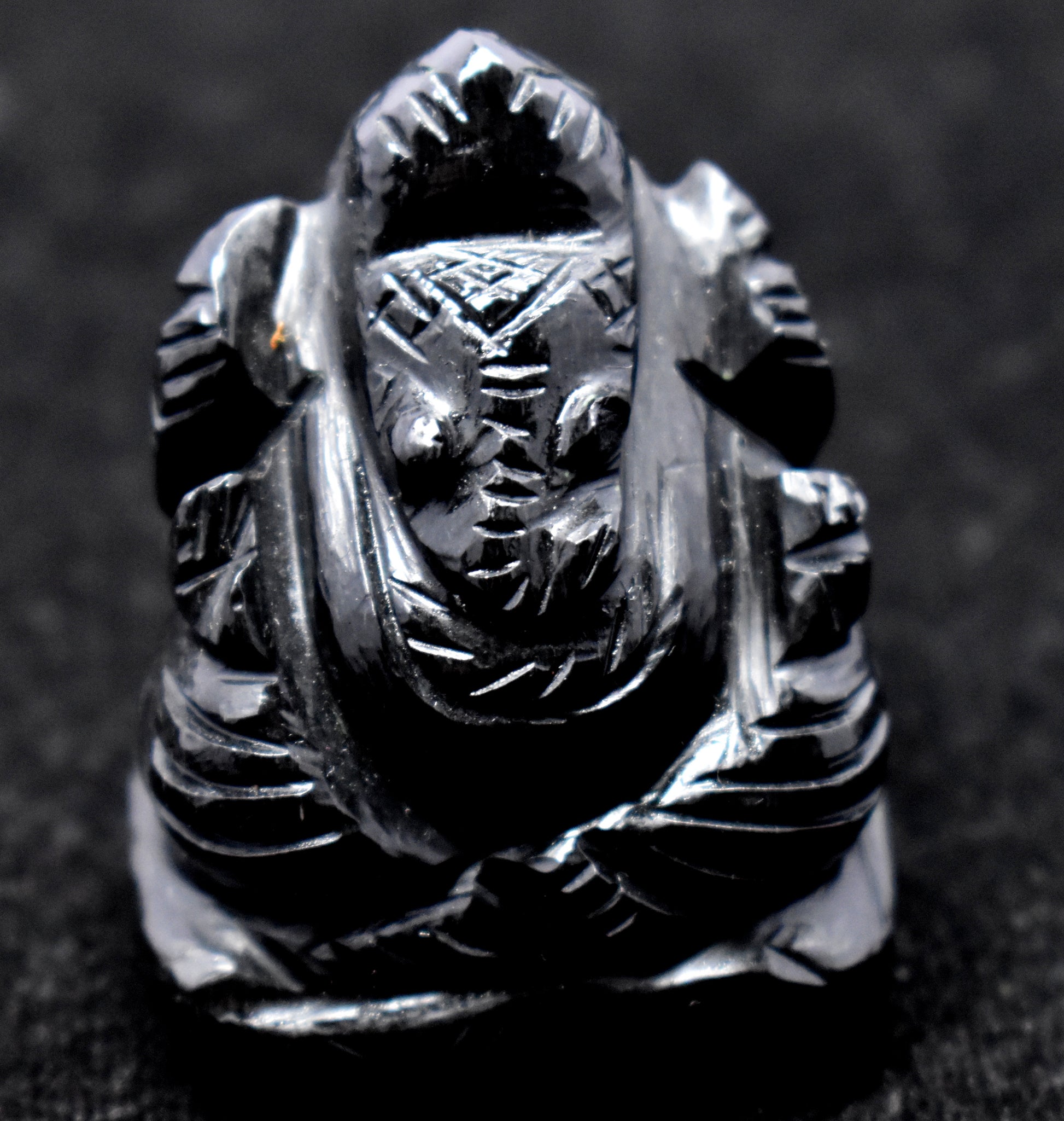 Hand carved Lord Ganesh in Black Agate- Hand carved Ganesh - Ganesh Carvings -