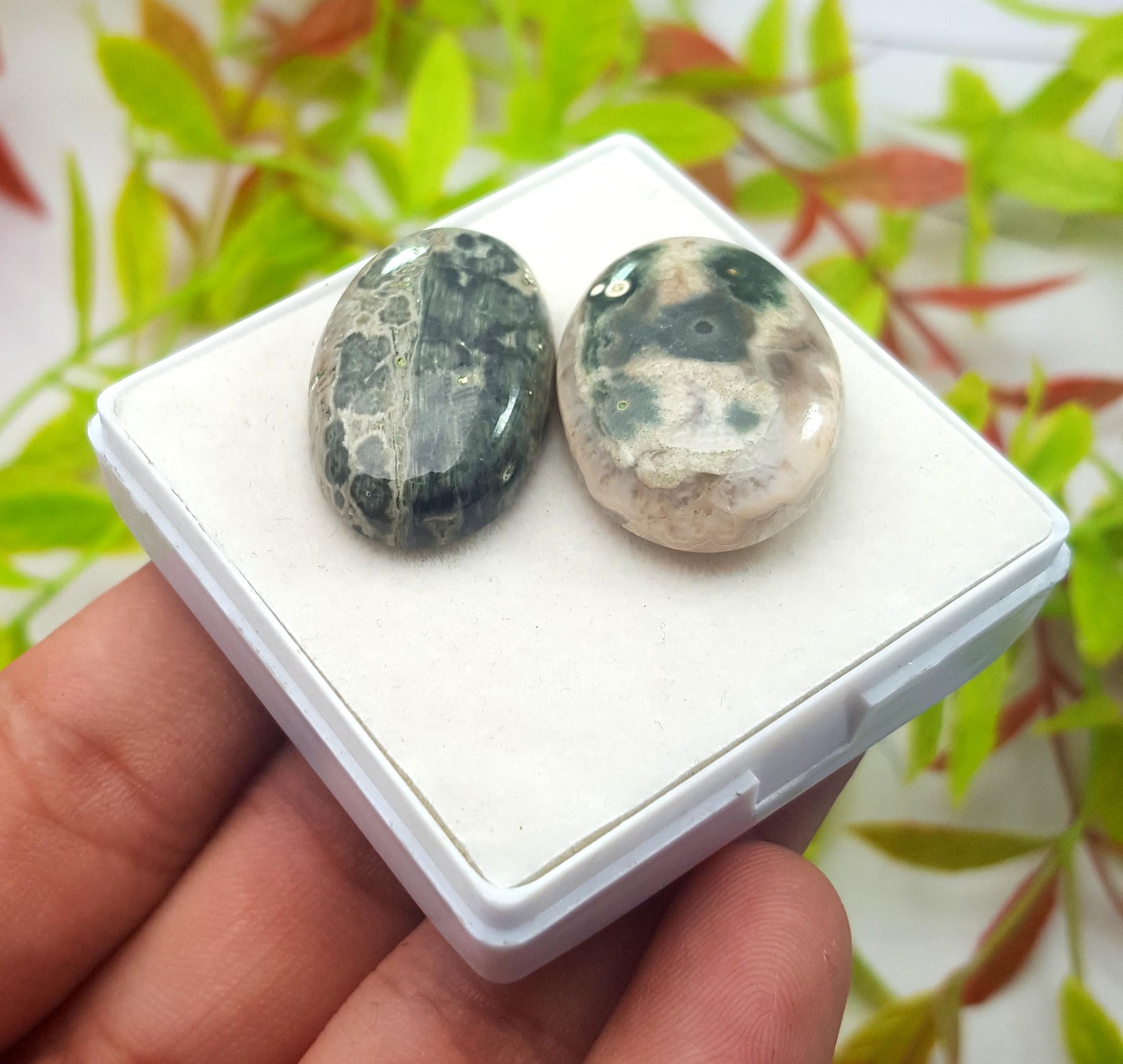 Natural Ocean Jasper, Oval Smooth Cabochon Gemstone Lot, 55.70 Carat, Size-28x16x6mm To 26x19x7mm, For Jewelry Making, PCS-2