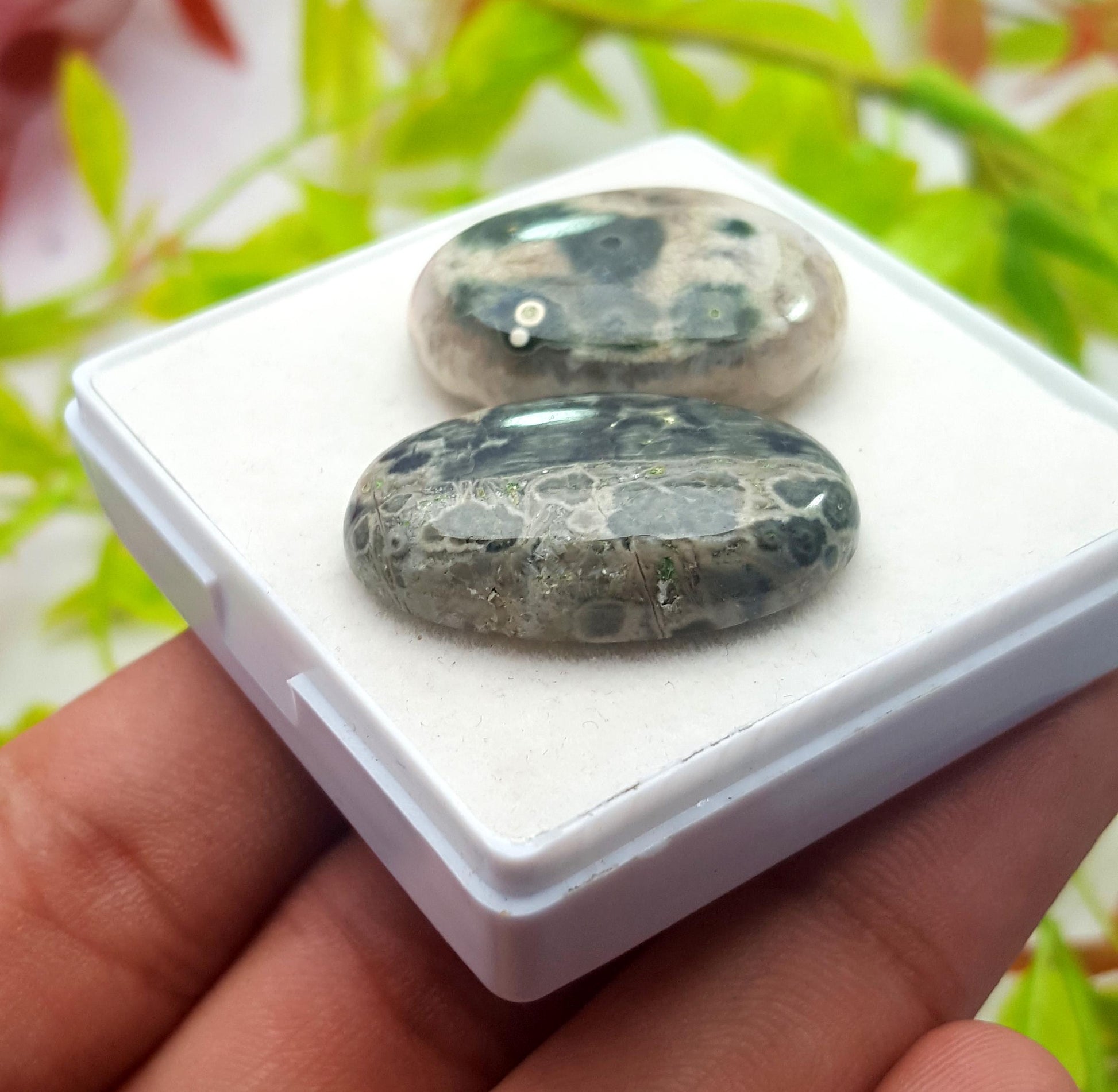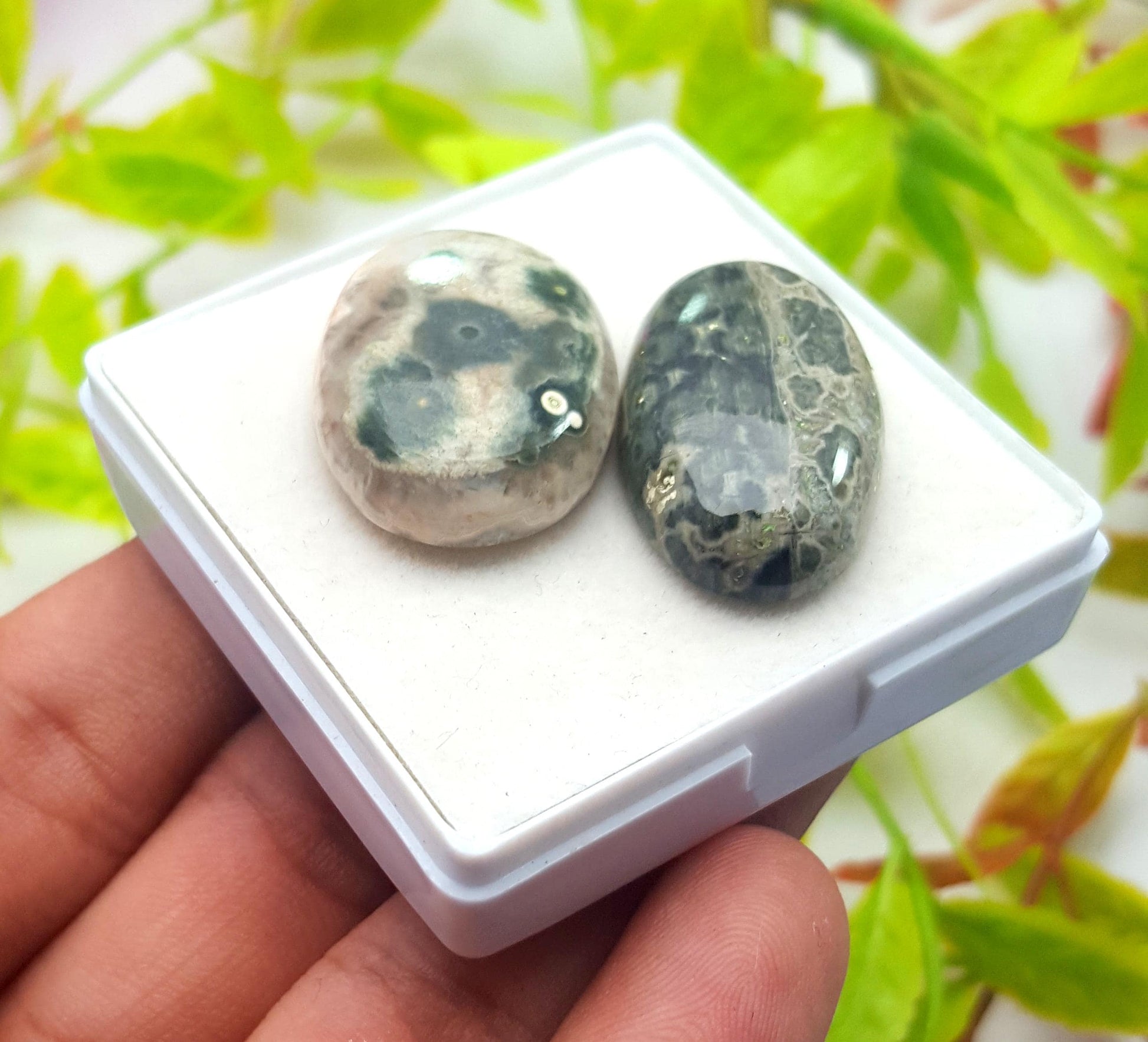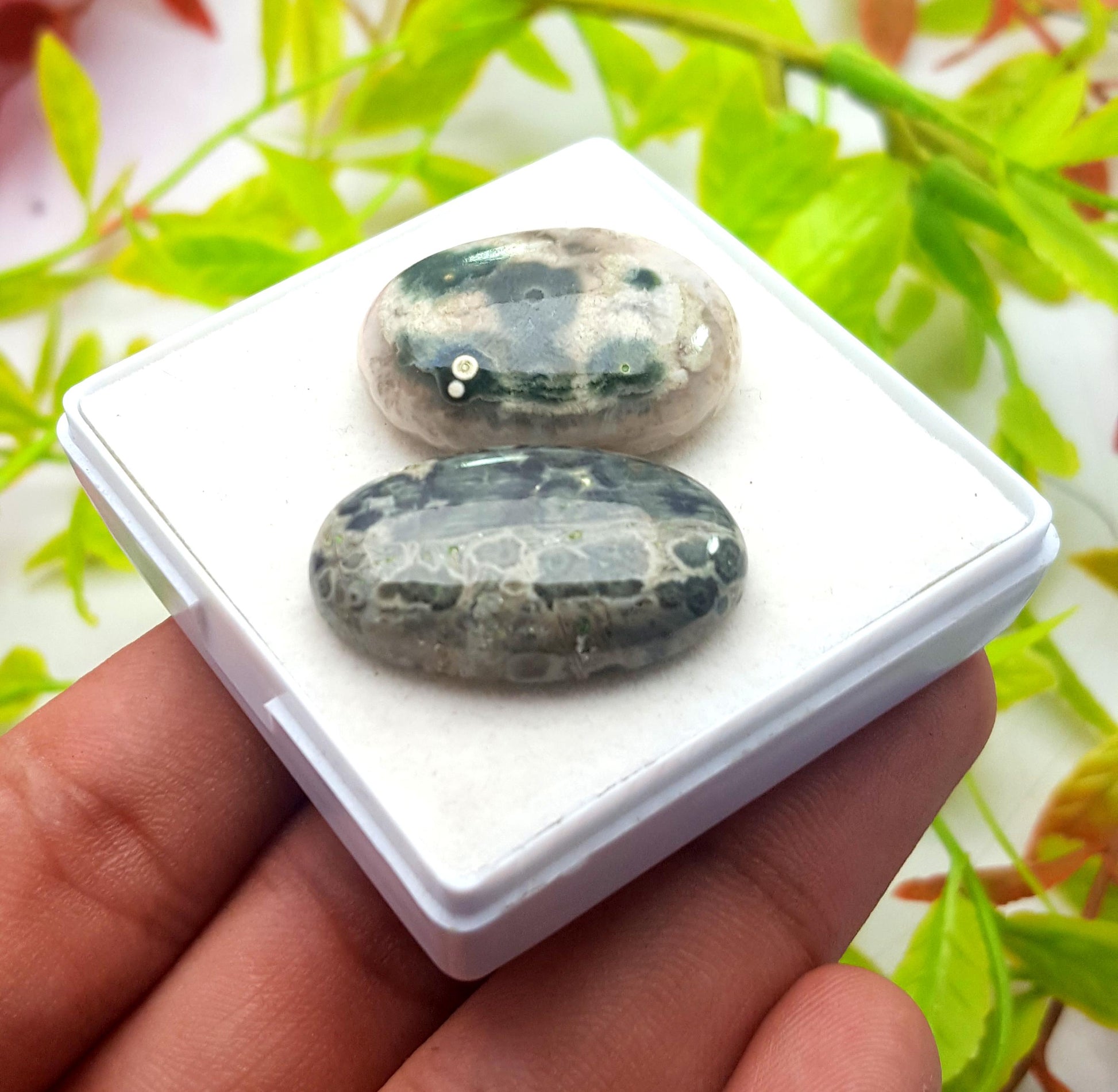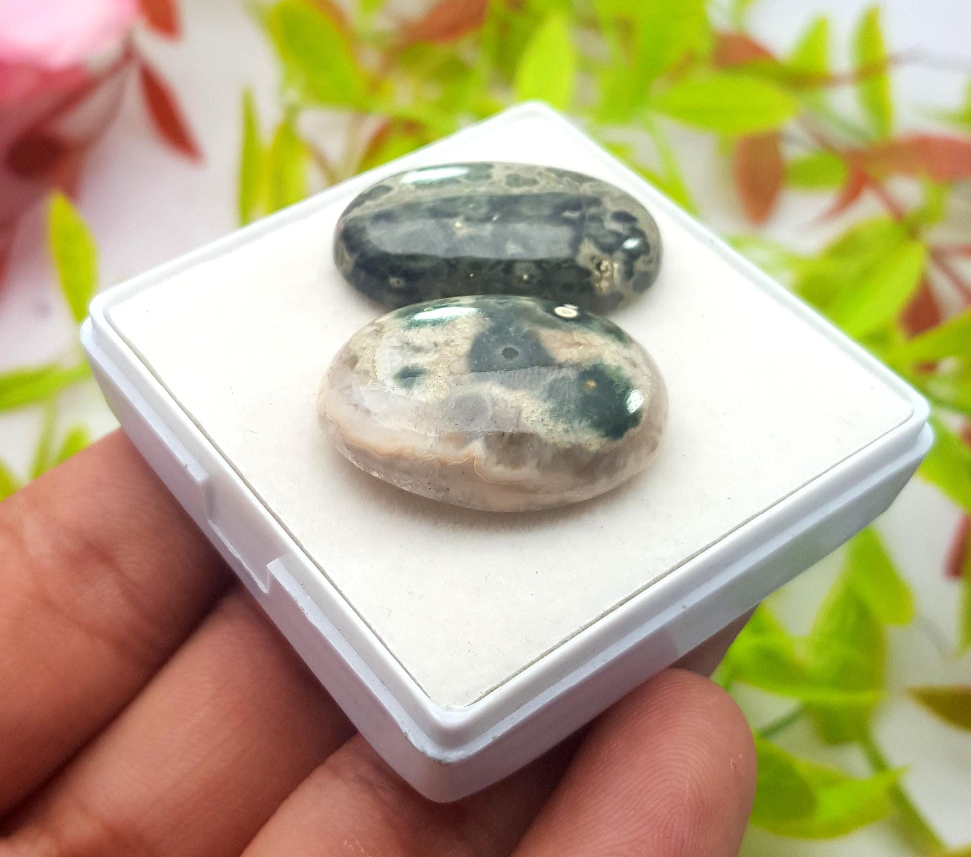 Jasper, Natural Ocean Jasper, Oval Smooth Cabochon Gemstone Lot, 55.70 Carat, Size-28x16x6mm To 26x19x7mm, For Jewelry Making, PCS-2