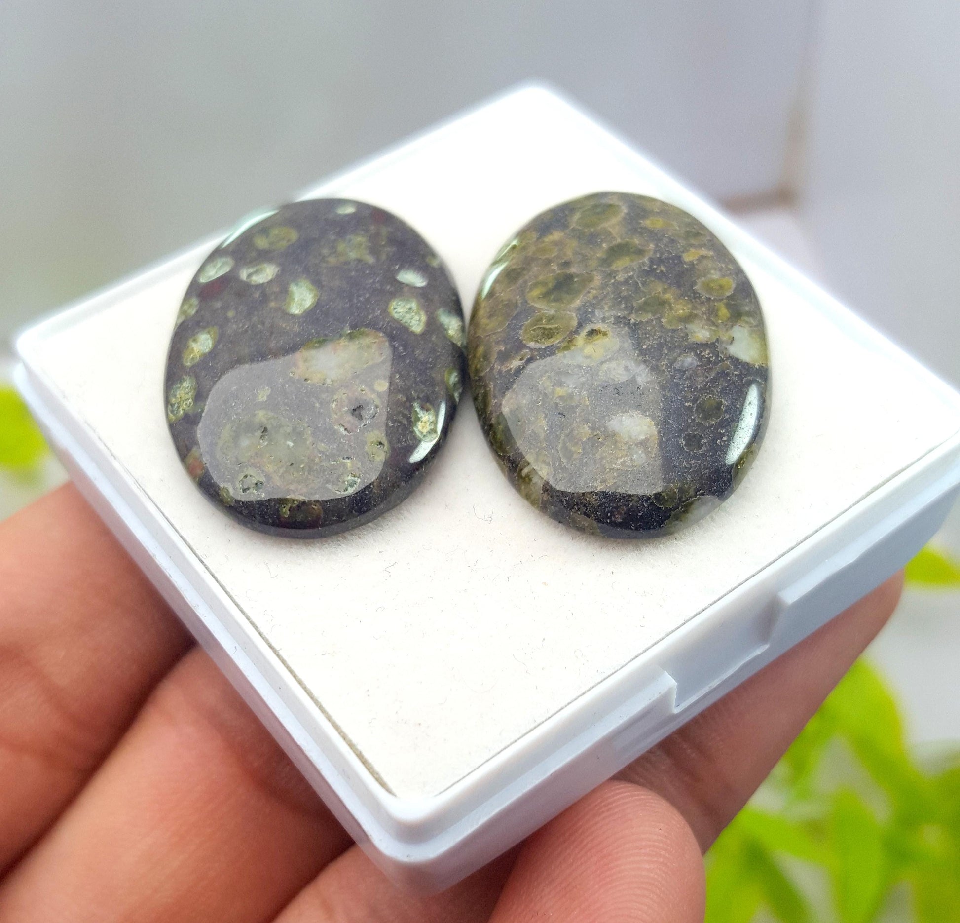 Jasper, Natural Ocean Jasper, Oval Smooth Cabochon Gemstone Lot, 59.20 Carat, Size-32x20x5mm To 31x20x5mm, For Jewelry Making, PCS-2