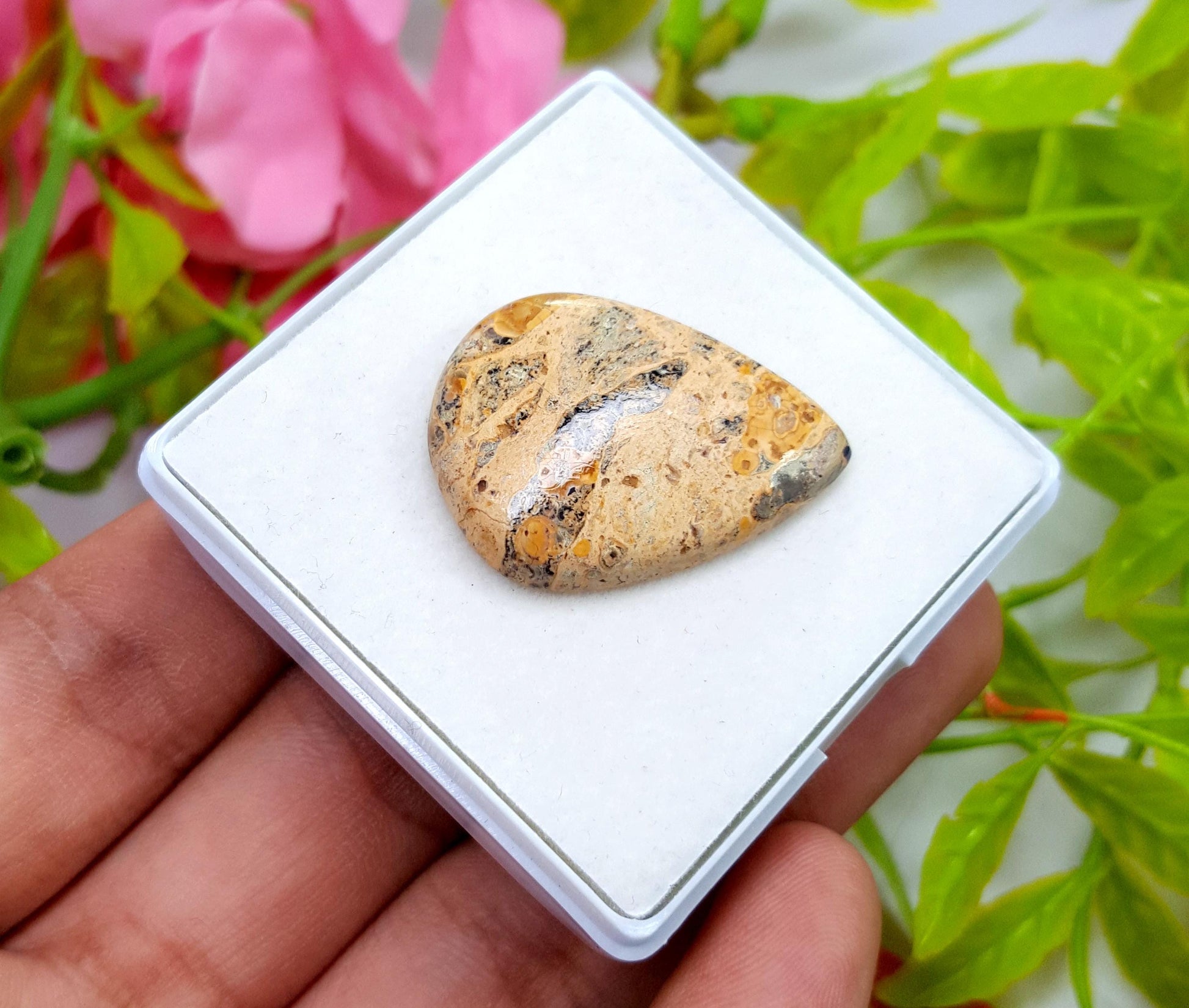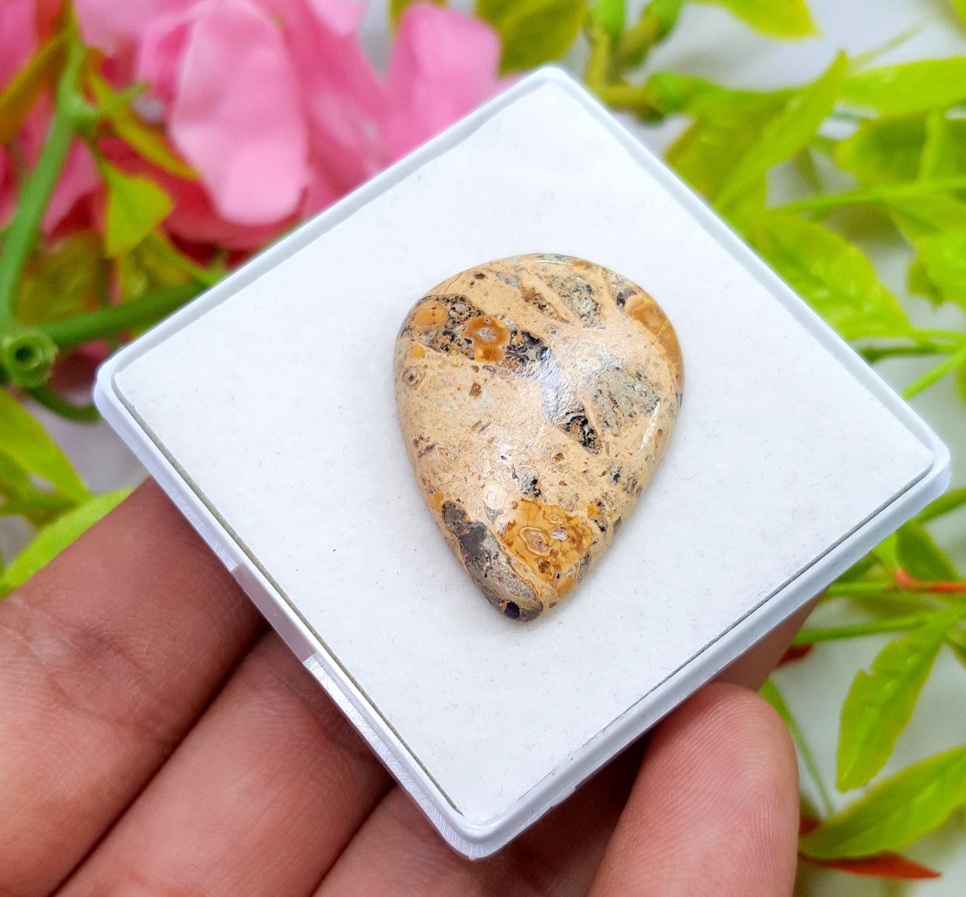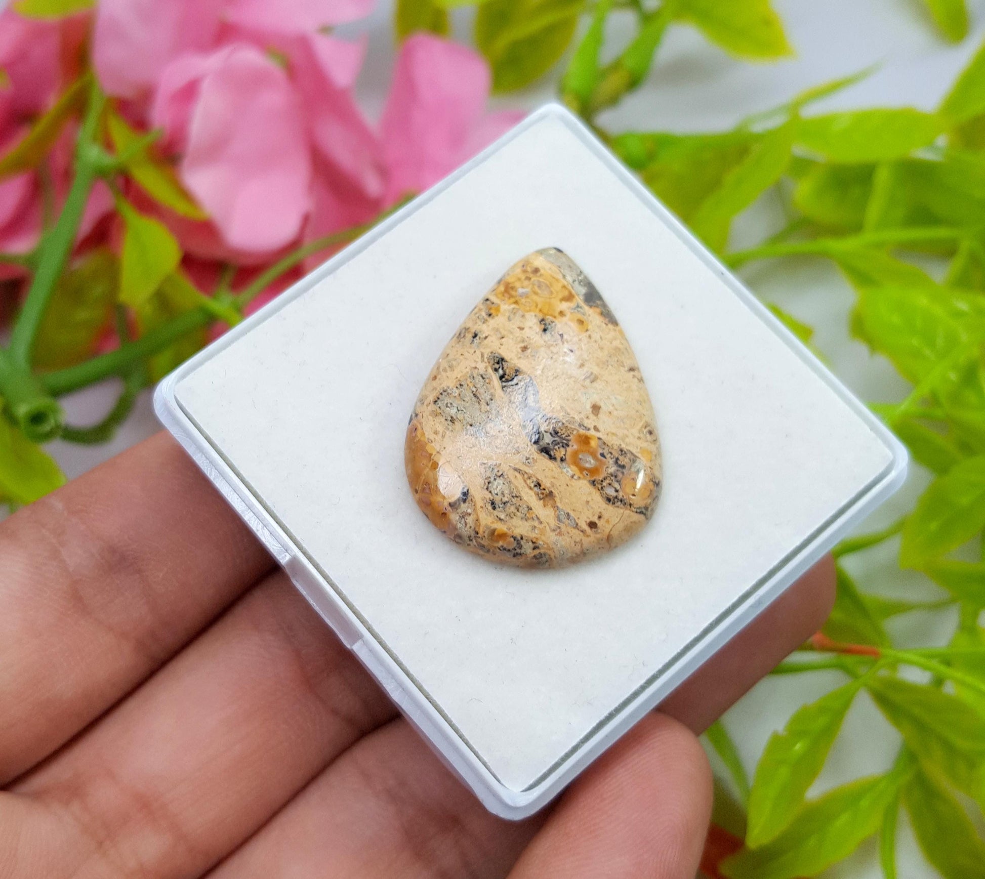 Natural Picture Jasper, Pear Smooth Cabochon Loose Gemstone, 35.10 Carat, Size-31x23x5mm, For Jewelry Making,