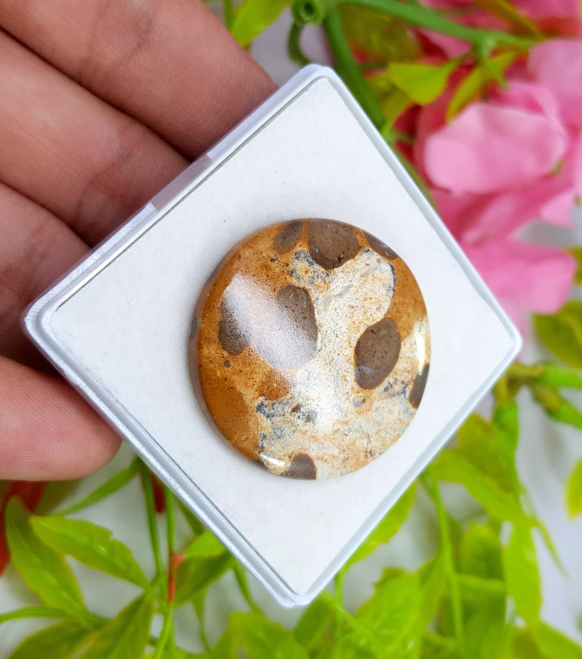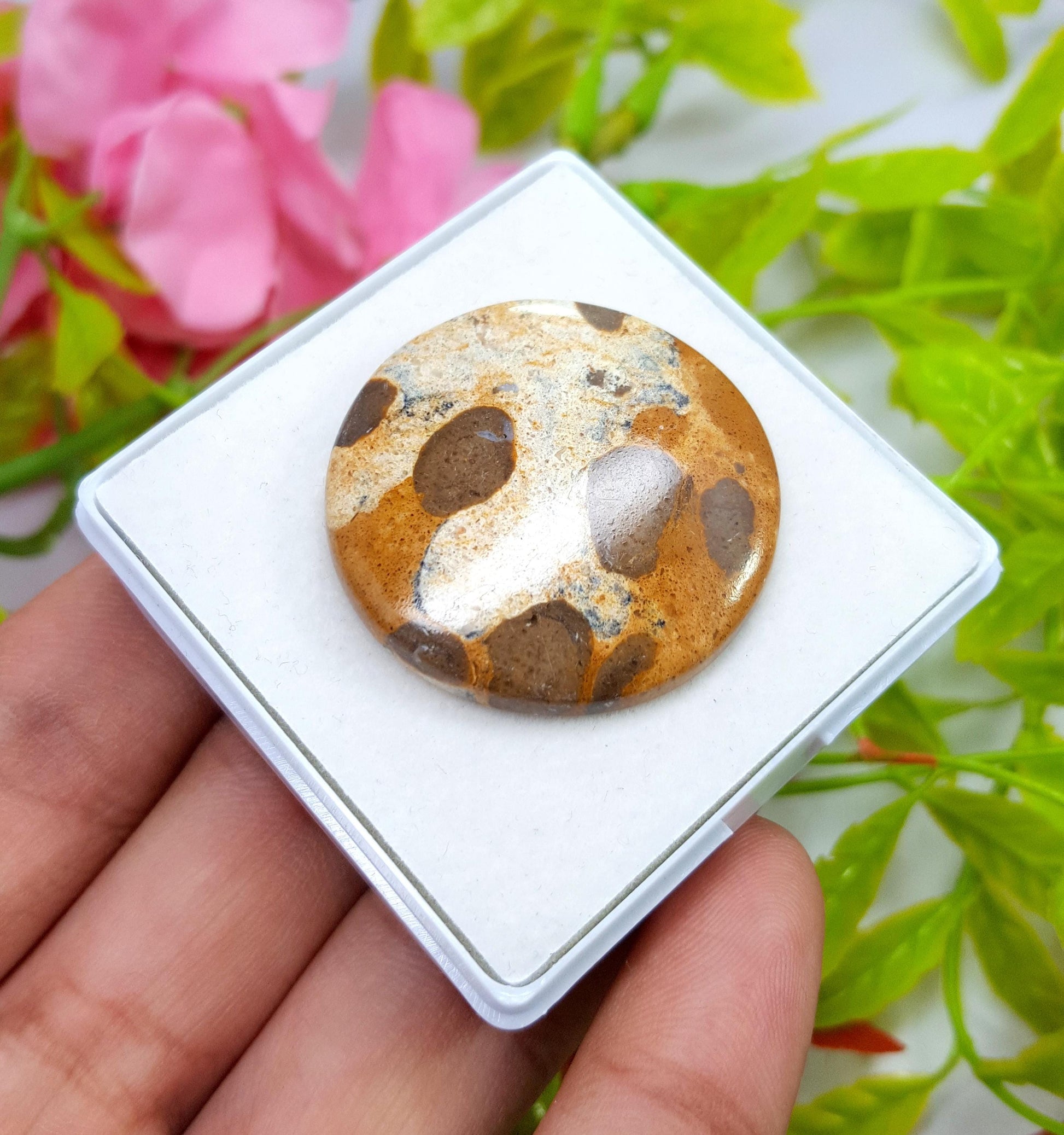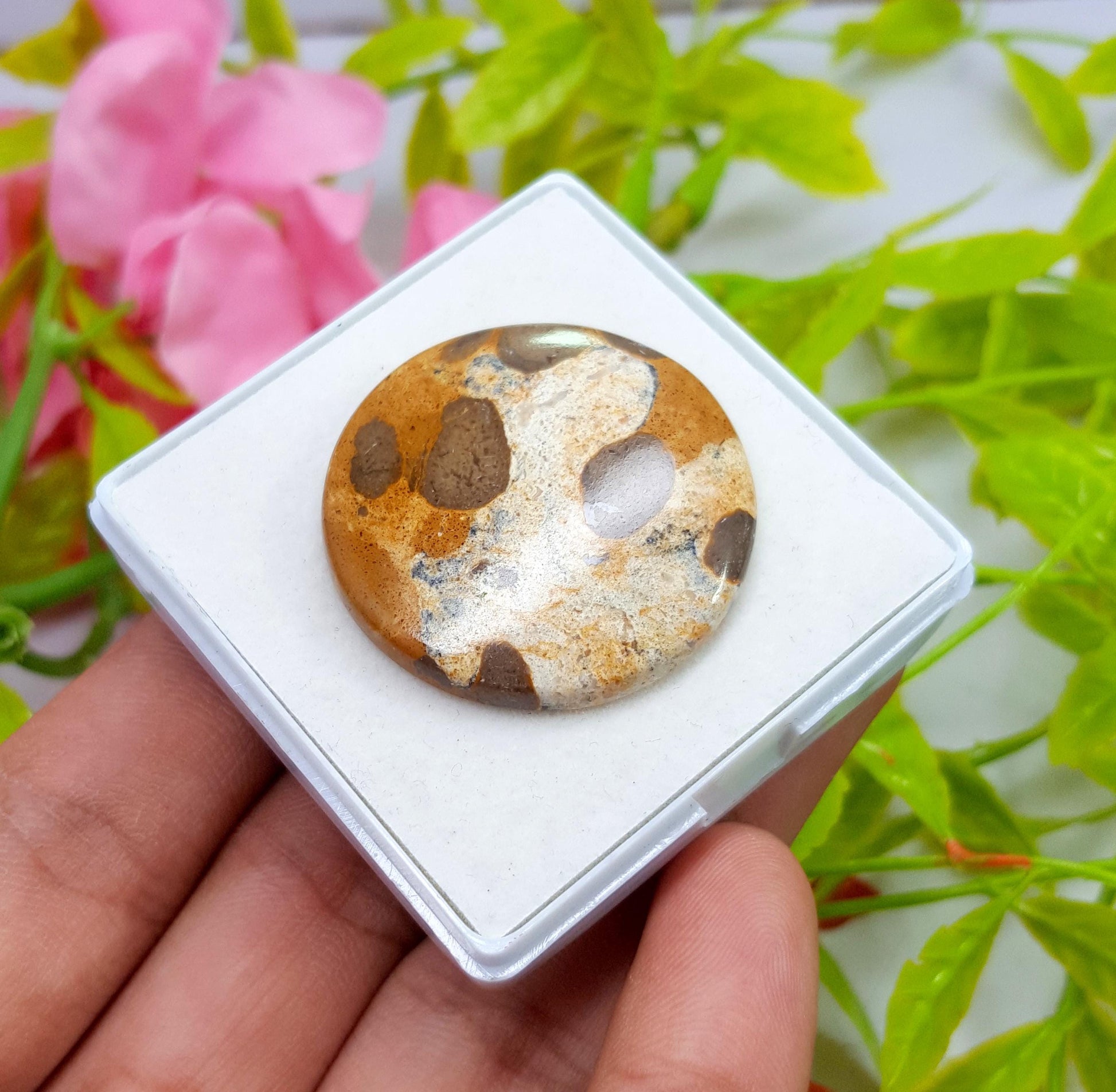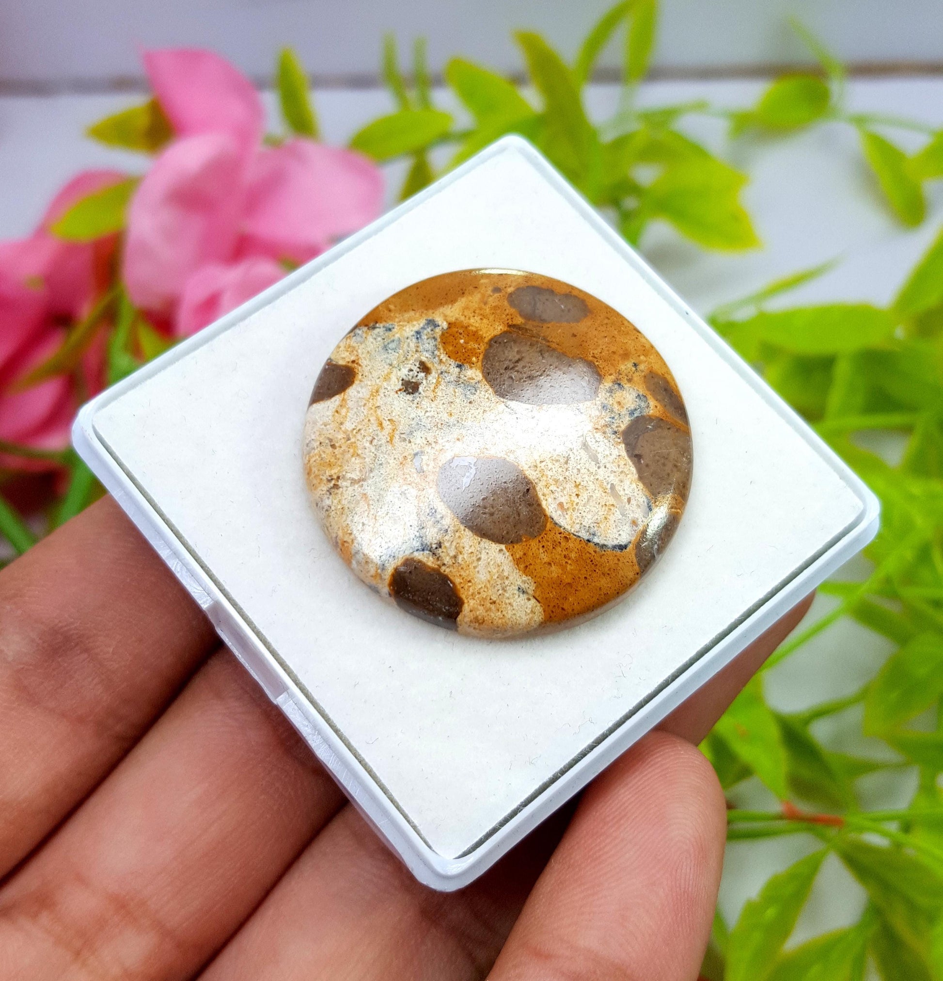 Natural Picture Jasper, Round Smooth Cabochon Loose Gemstone, 47.20 Carat, Size-32x32x5mm, For Jewelry Making,