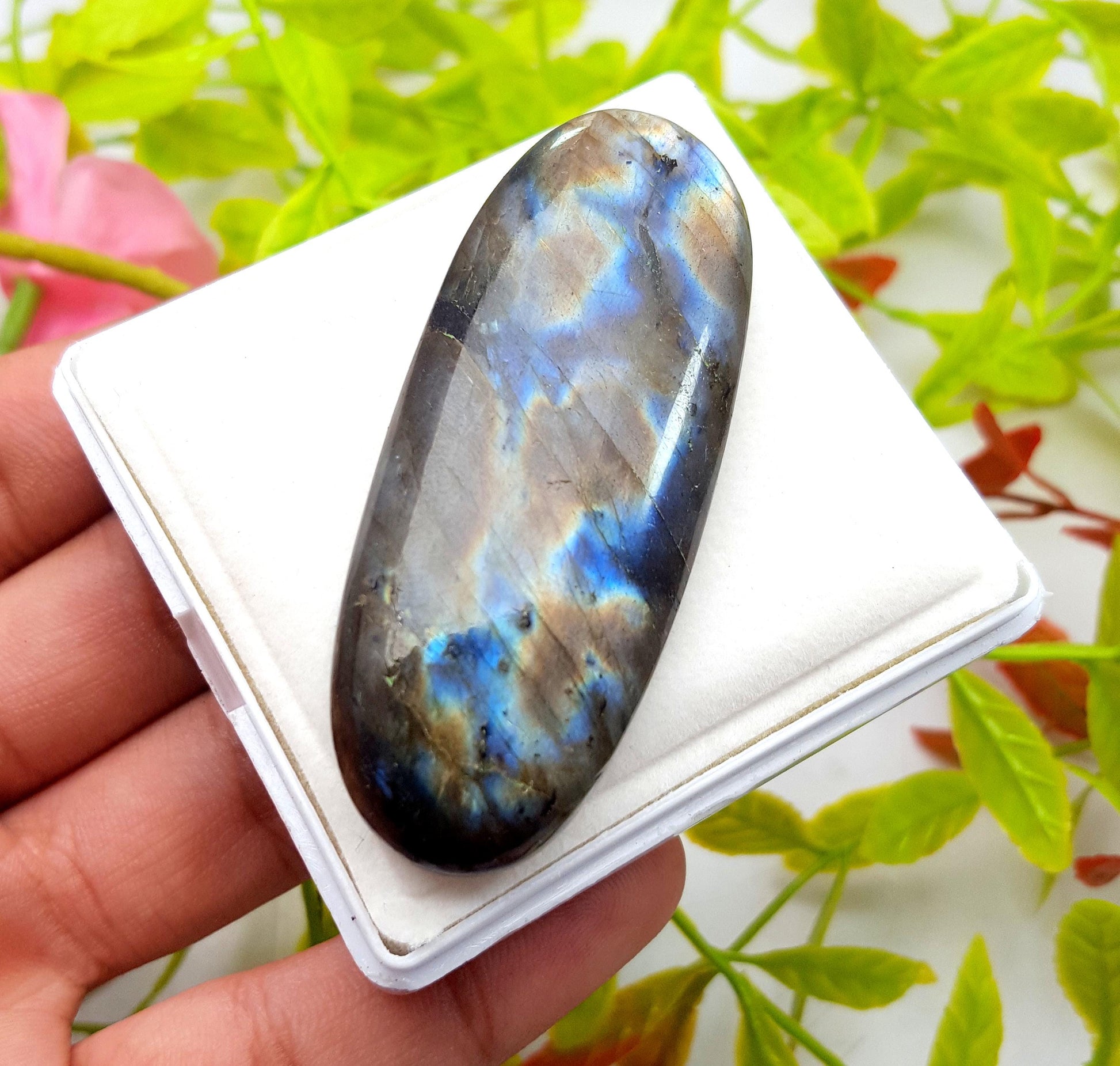 100% Natural Multi Flashy Labradorite, Oval Smooth Cabochon Loose Gemstone, 141.00 Carat, Size-66x25x9mm, Gift For Her, PC-1