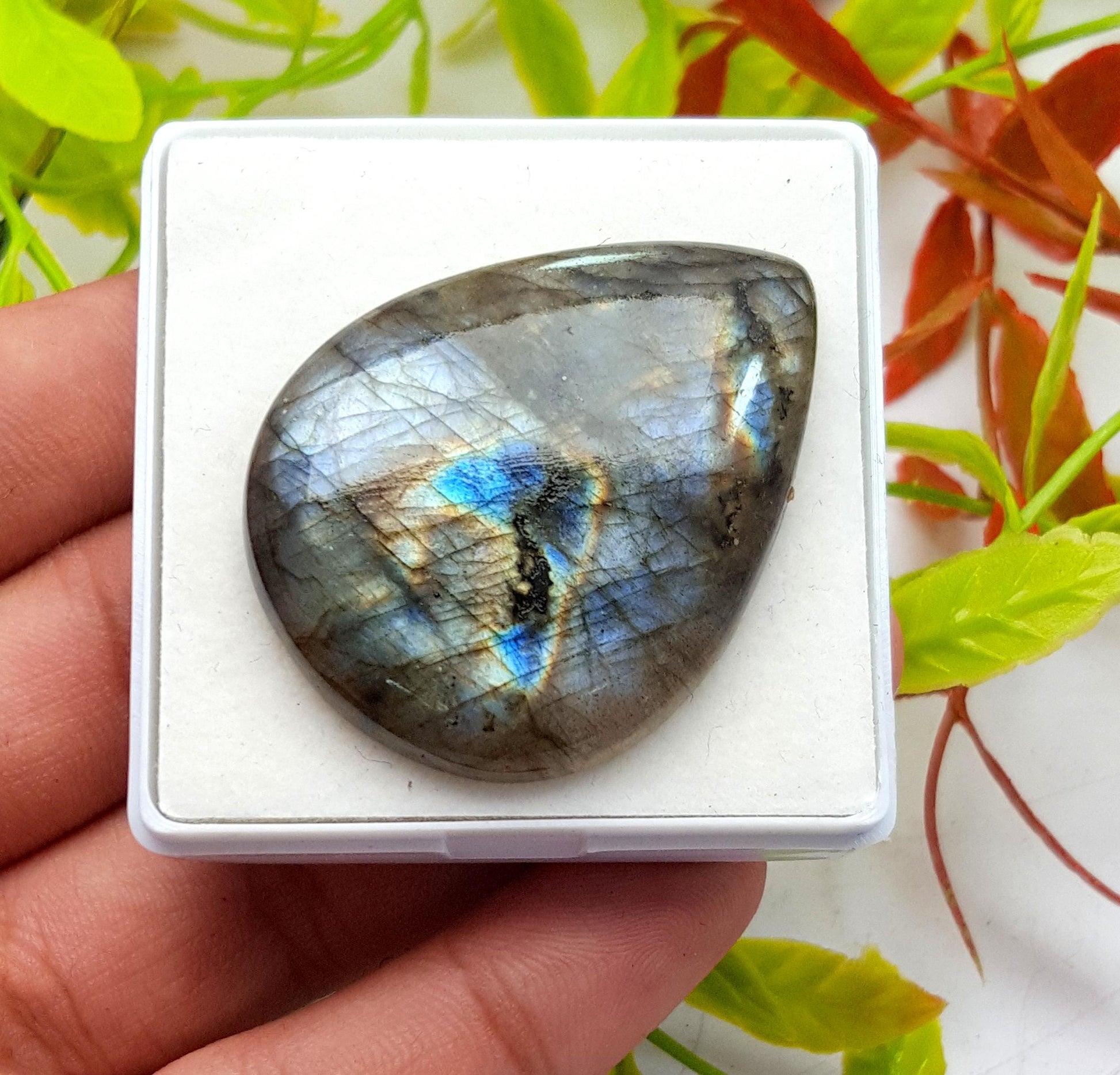 Labradorite, 100% Natural Multi Labradorite, Pear Smooth Cabochon Loose Gemstone, 83.10 Carat, Size-43x33x7mm, Gift For Her, PC-1