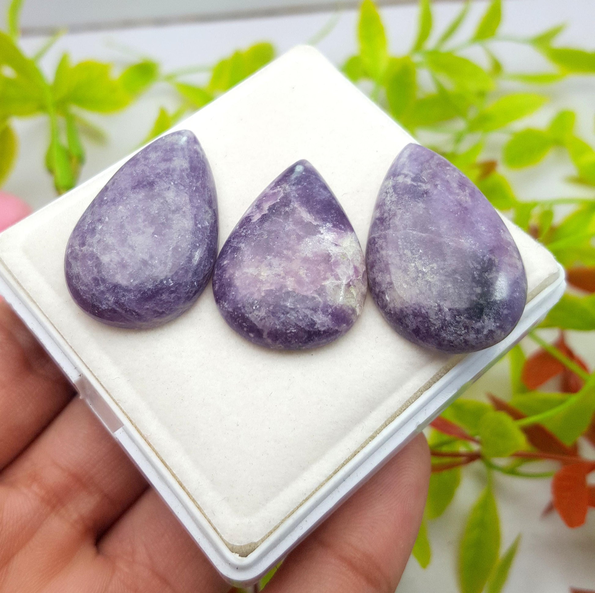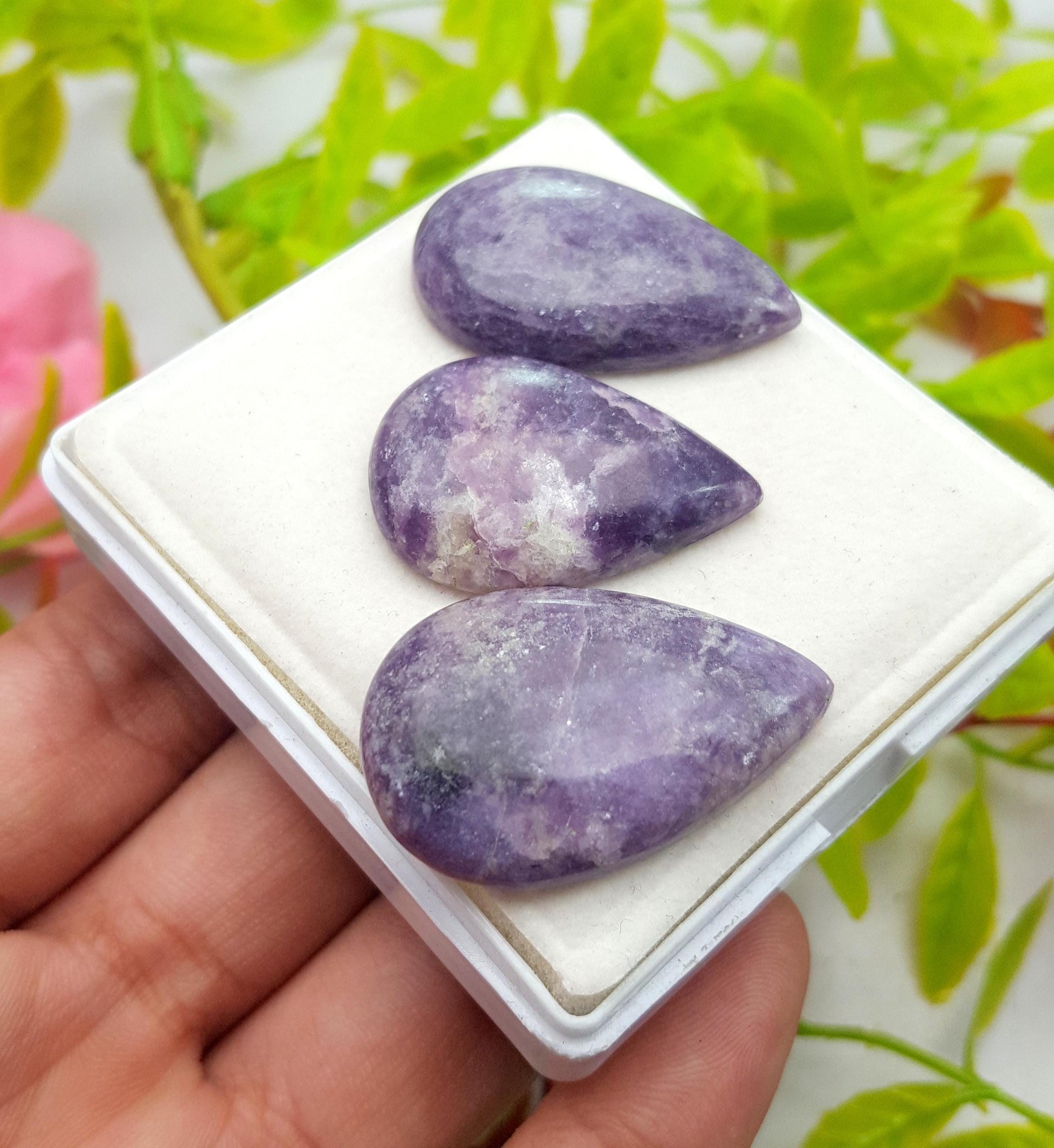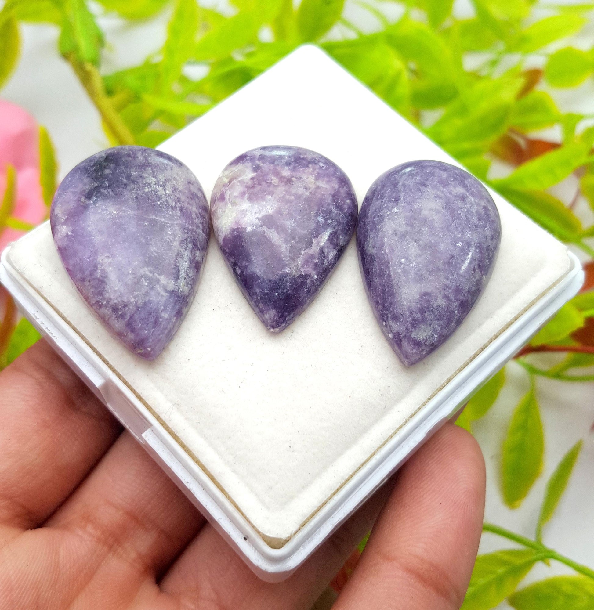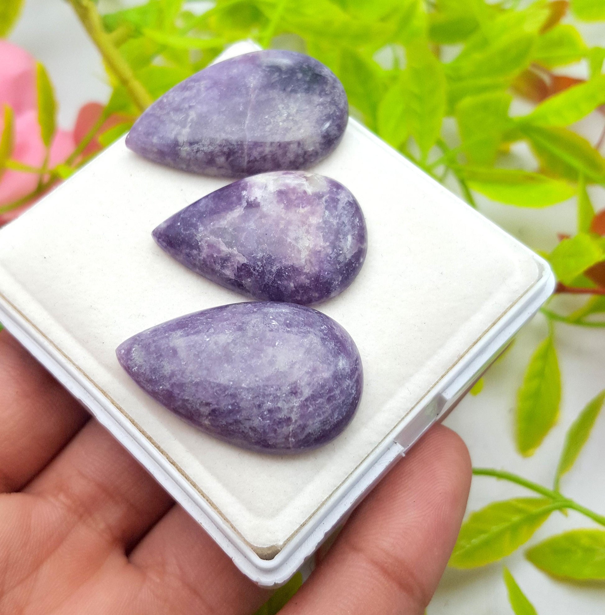 Stone Name : 100% Natural Lepidolite, Pear Cabochon Gemstone Lot