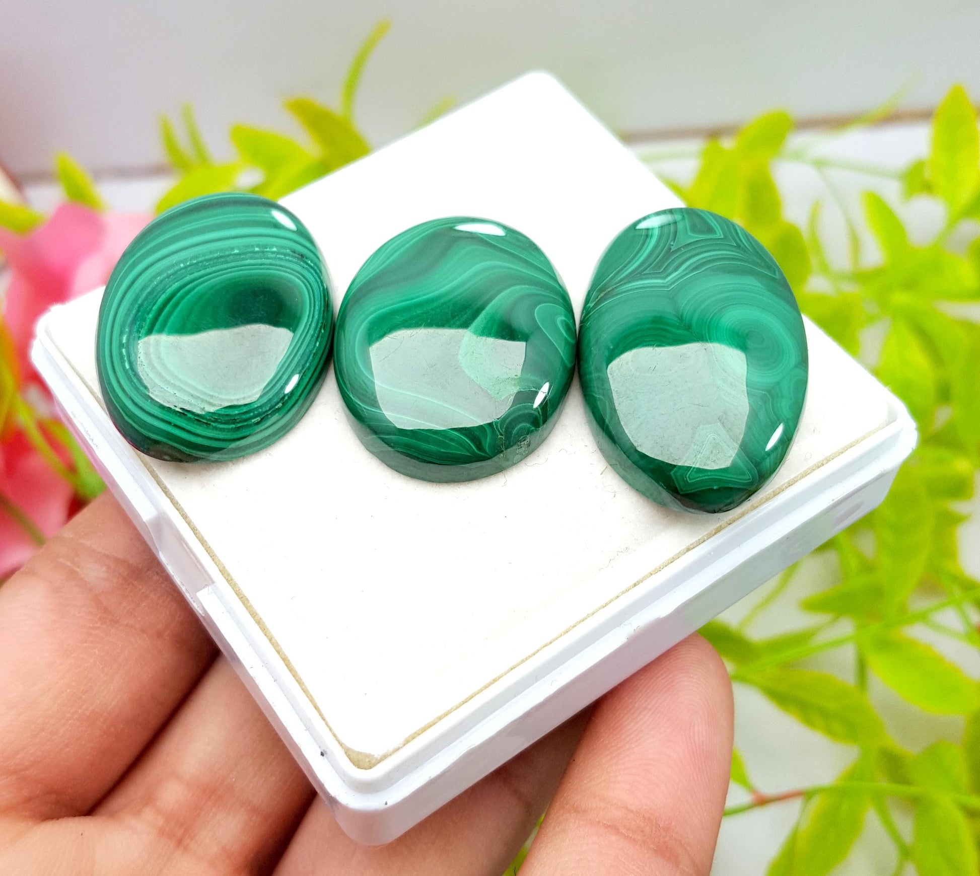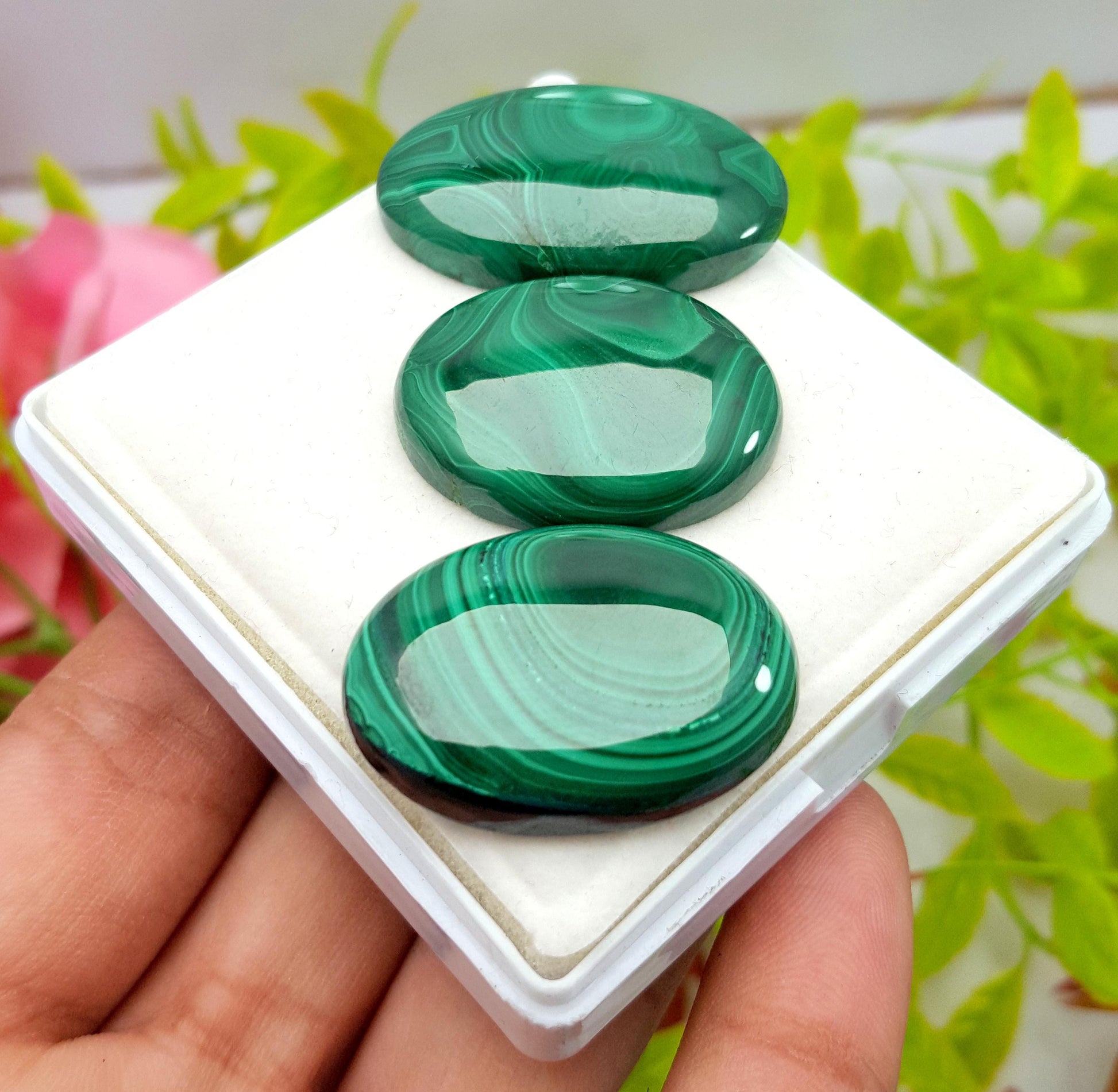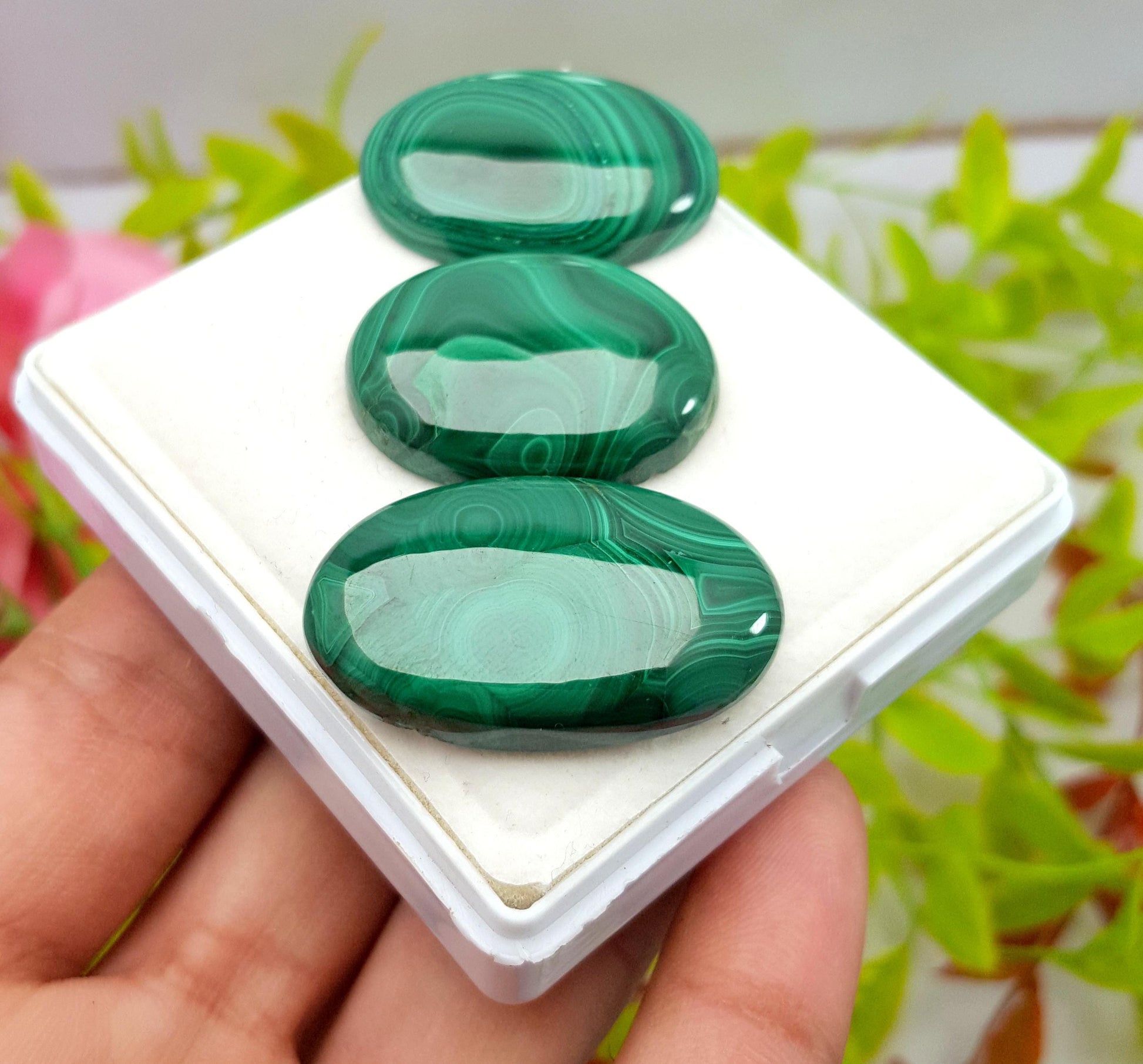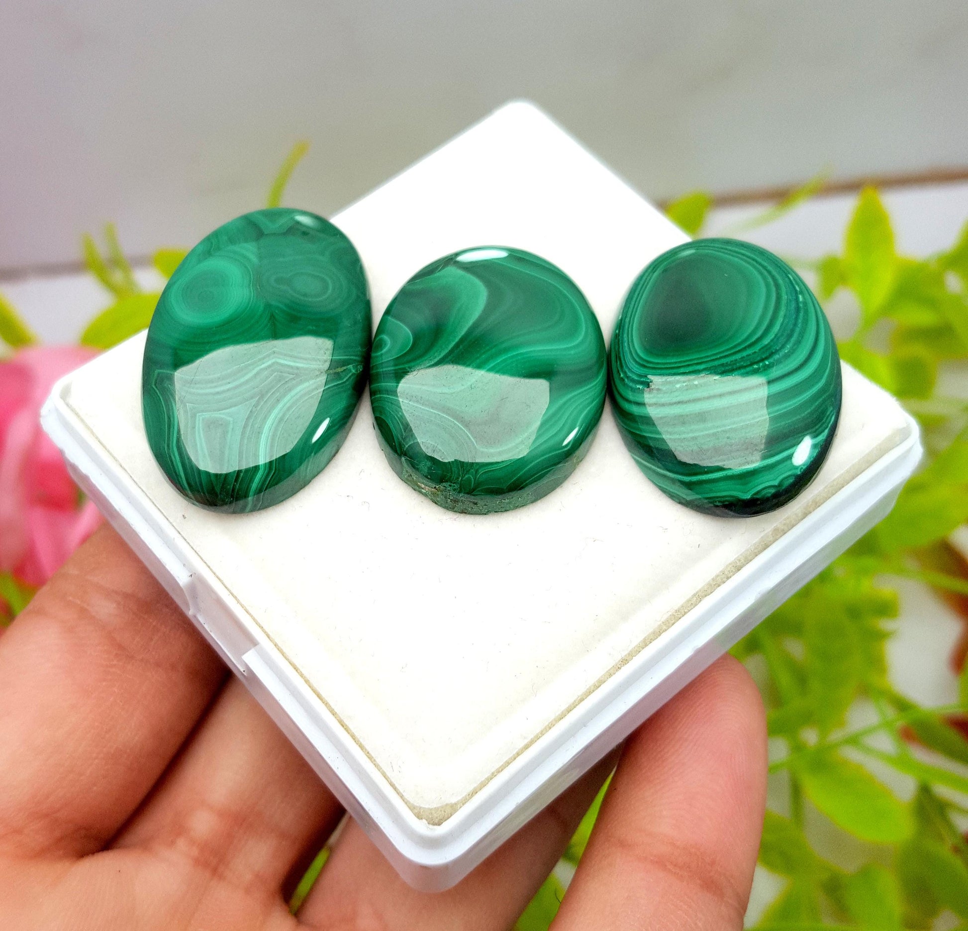 Malachite, 100% Natural Malachite, Oval Smooth Cabochon Gemstone Lot, 151.50 Carat, Size-33x20x6mm To 29x22x6mm, For Jewelry Making, PC-3