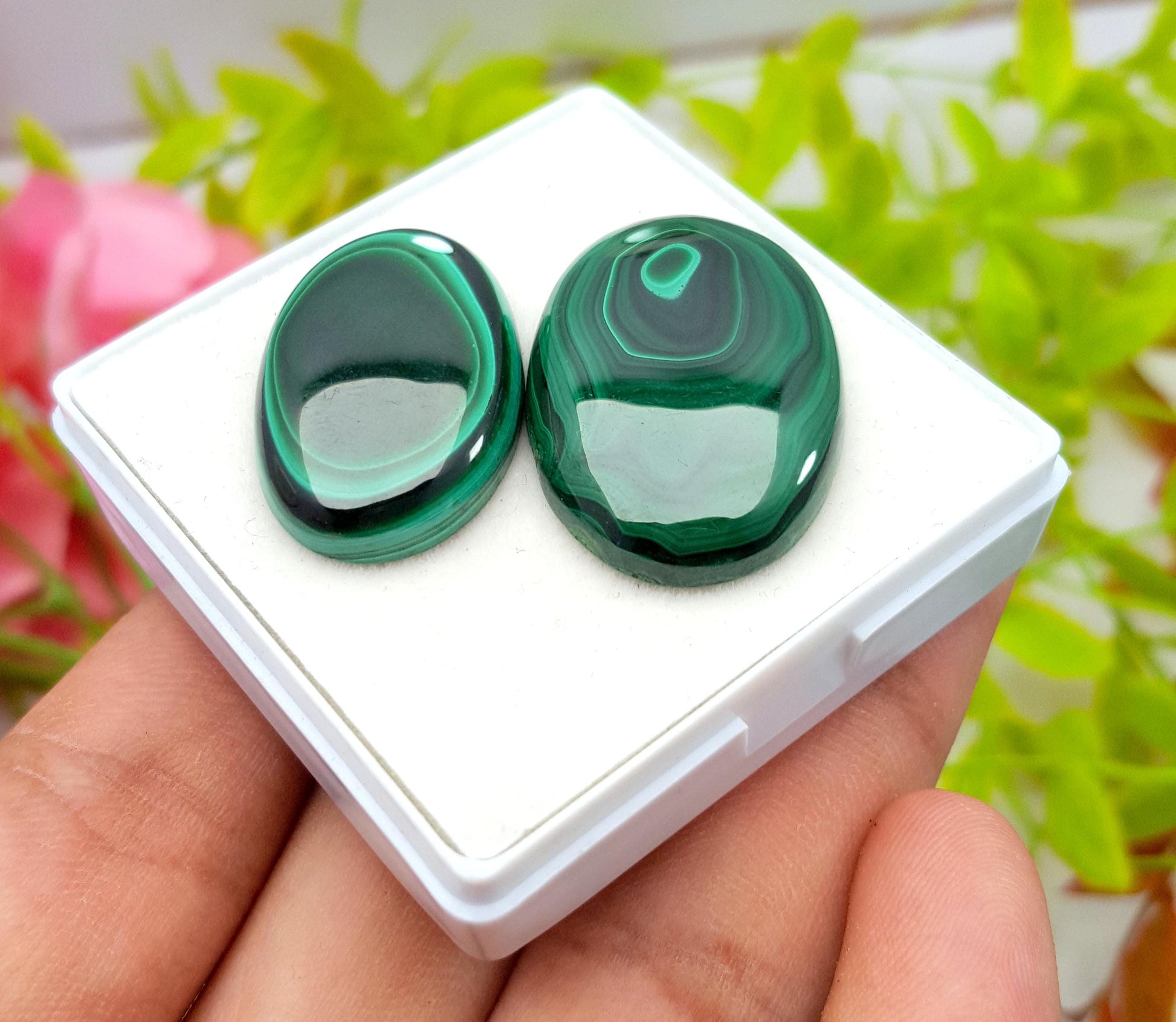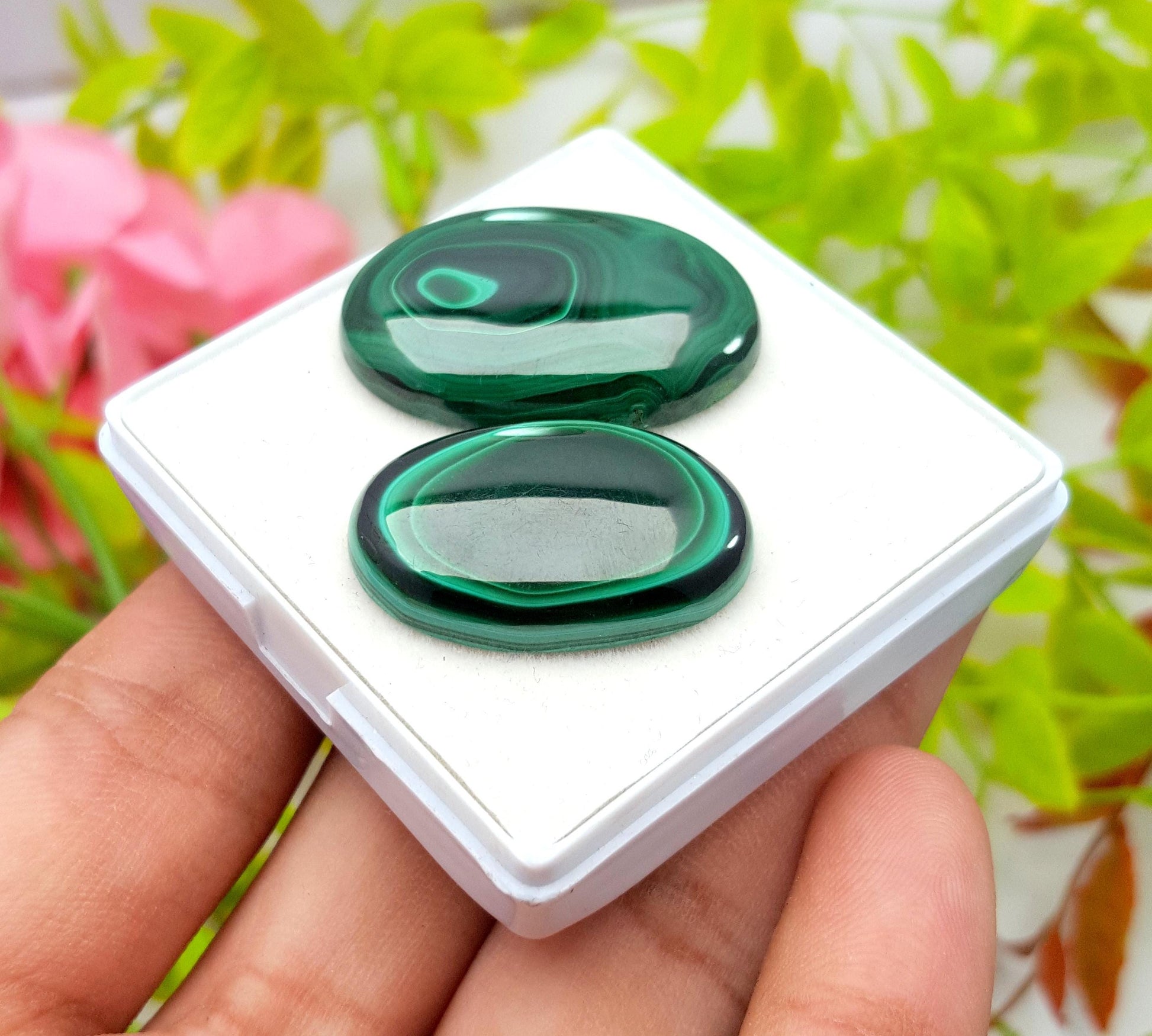 Malachite, 100% Natural Malachite, Oval Smooth Cabochon Gemstone Lot, 79.10 Carat, Size-27x17x5mm To 31x20x5mm, For Jewelry Making, PC-2