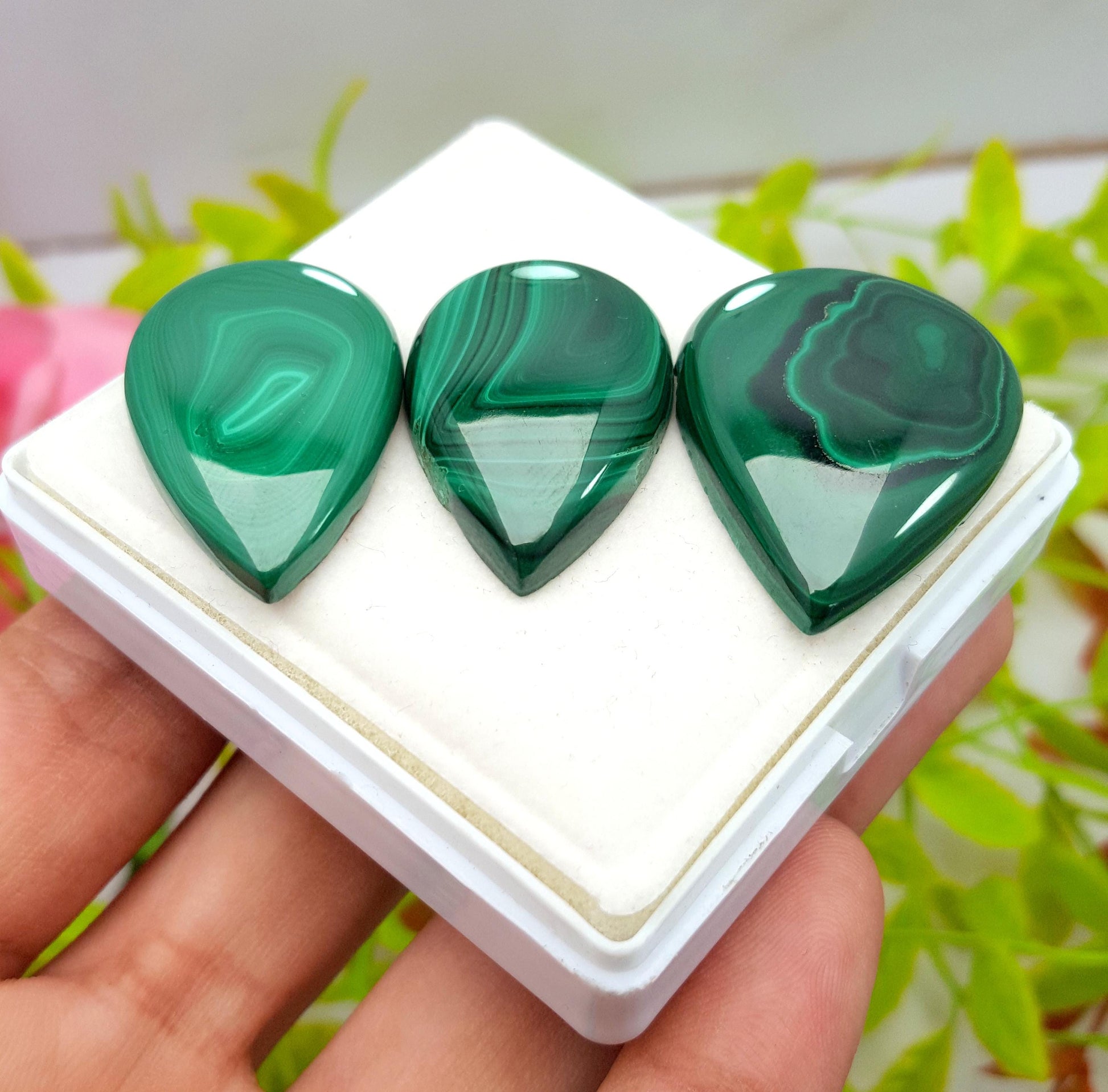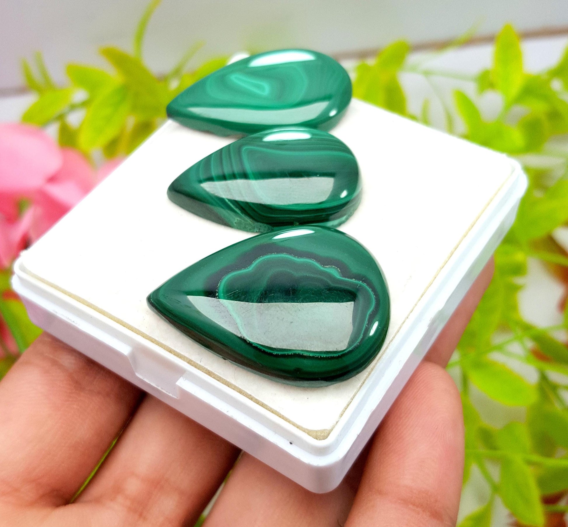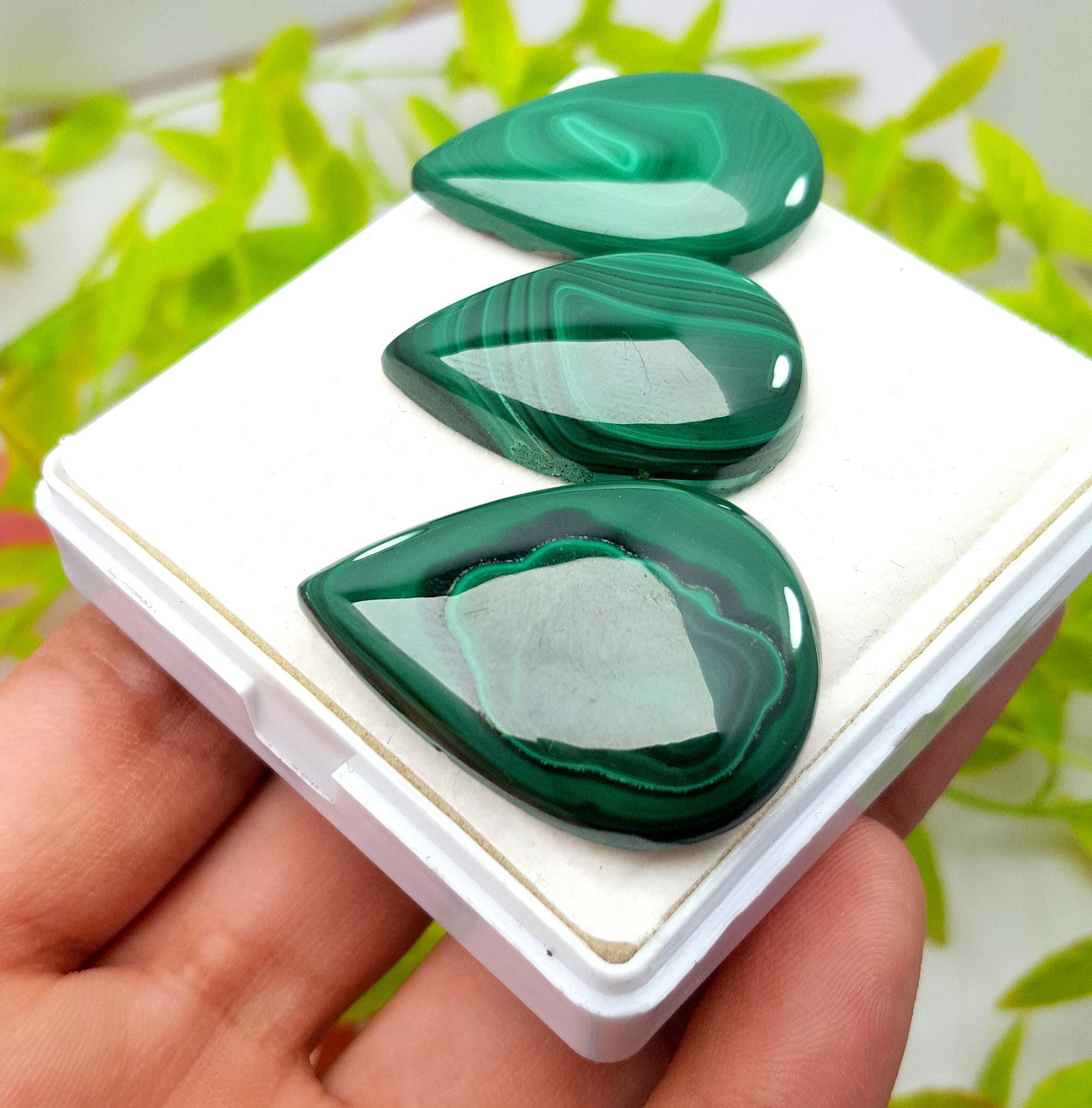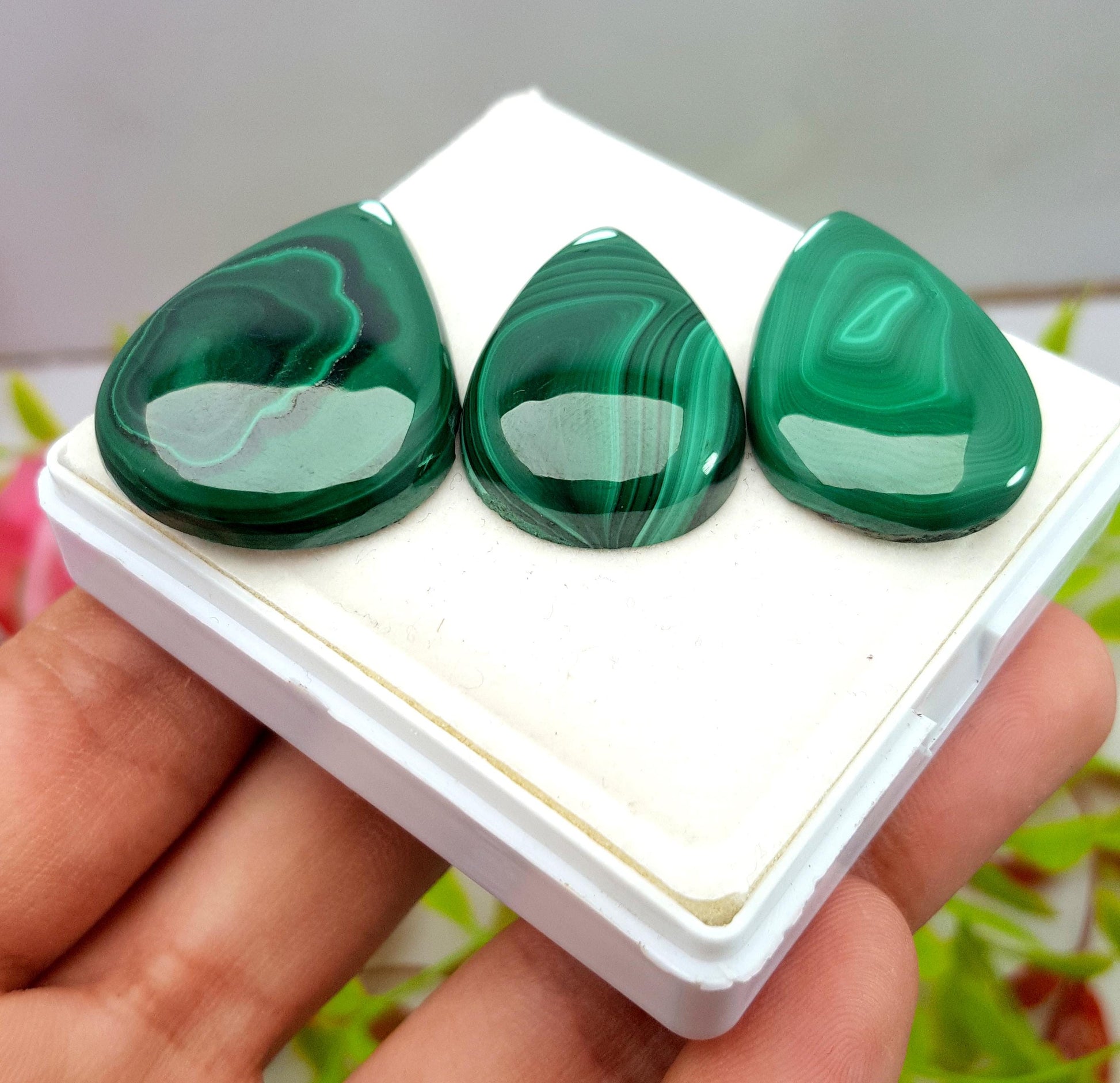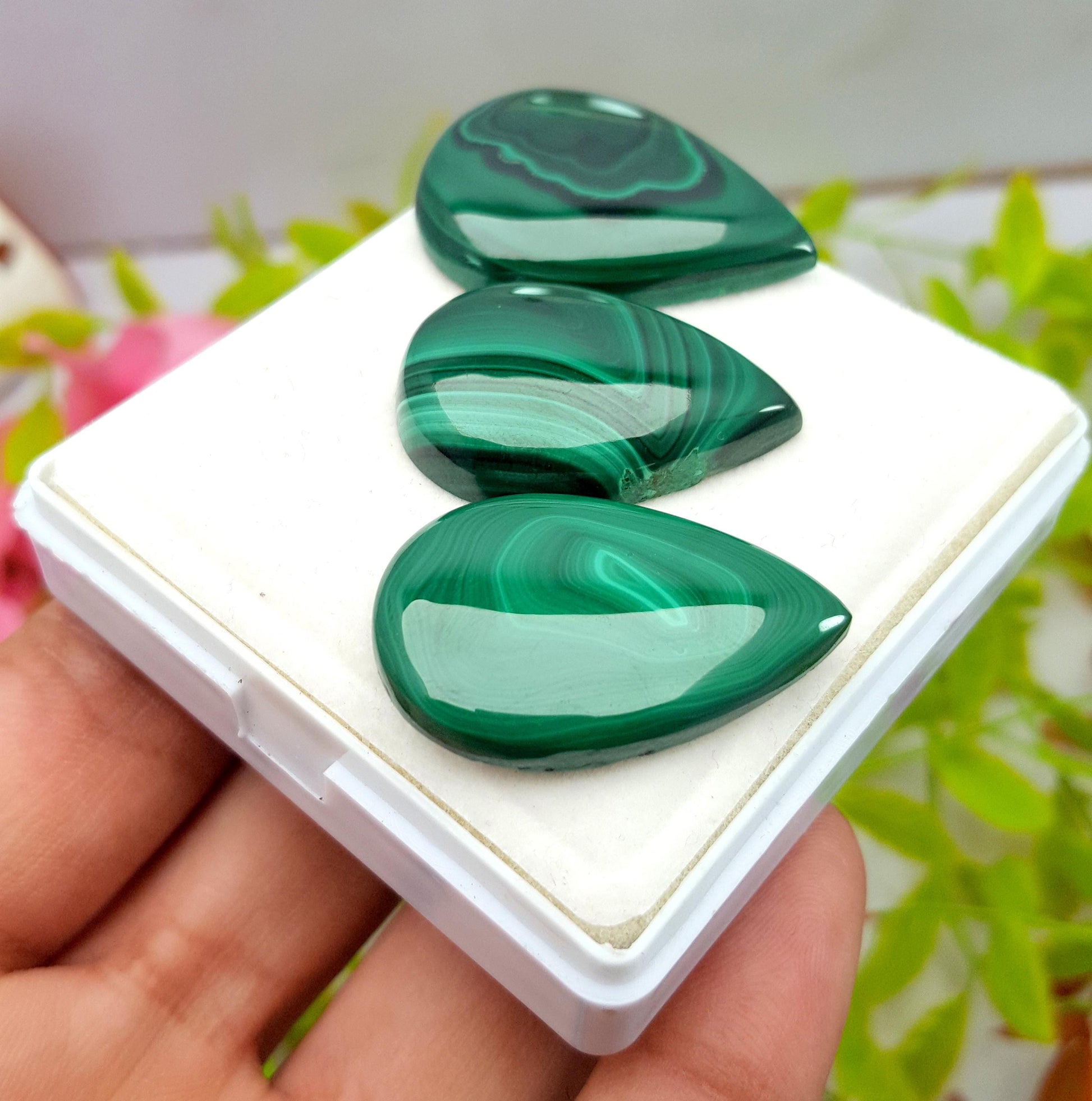 Malachite, 100% Natural Malachite, Pear Smooth Cabochon Gemstone Lot, 145.85 Carat, Size-34x26x6mm To 30x20x6mm, For Jewelry Making, PC-3