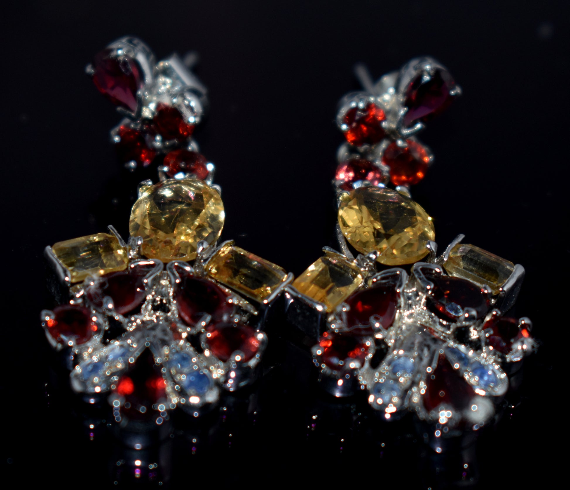 Mix Stone Earrings, 925 Sterling Silver, Boho Jewelry, {12.26 Gram}