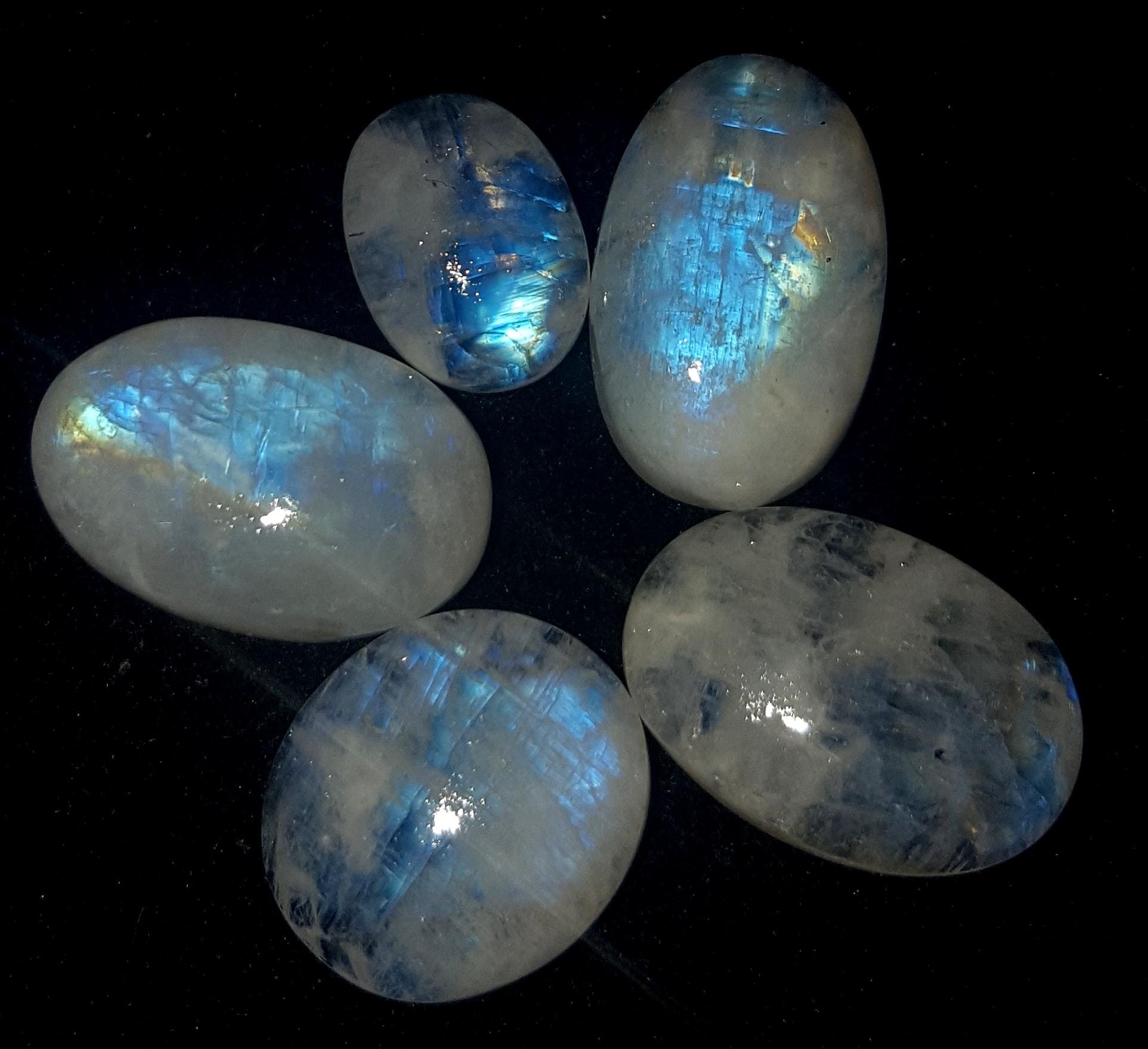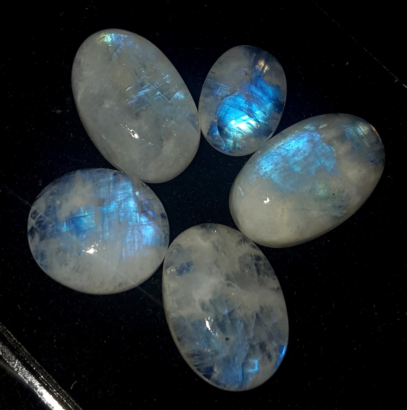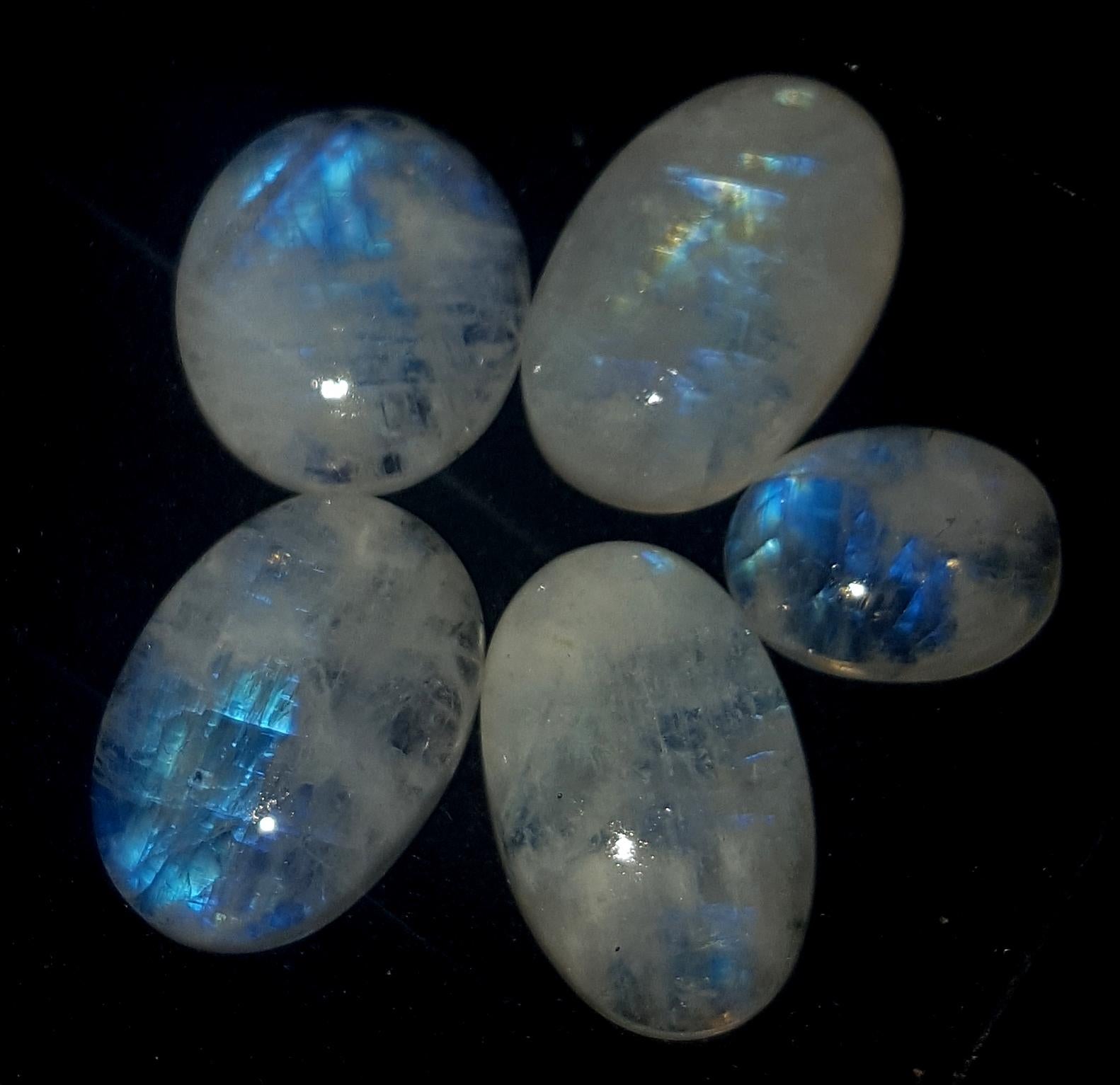Moonstone, Natural Rainbow Moonstone, Oval Blue Flashy Gemstone Lot, 36.00 Carat, Size-14x13x4.4mm To 17x11x6mm Gift For Her, Pc-5