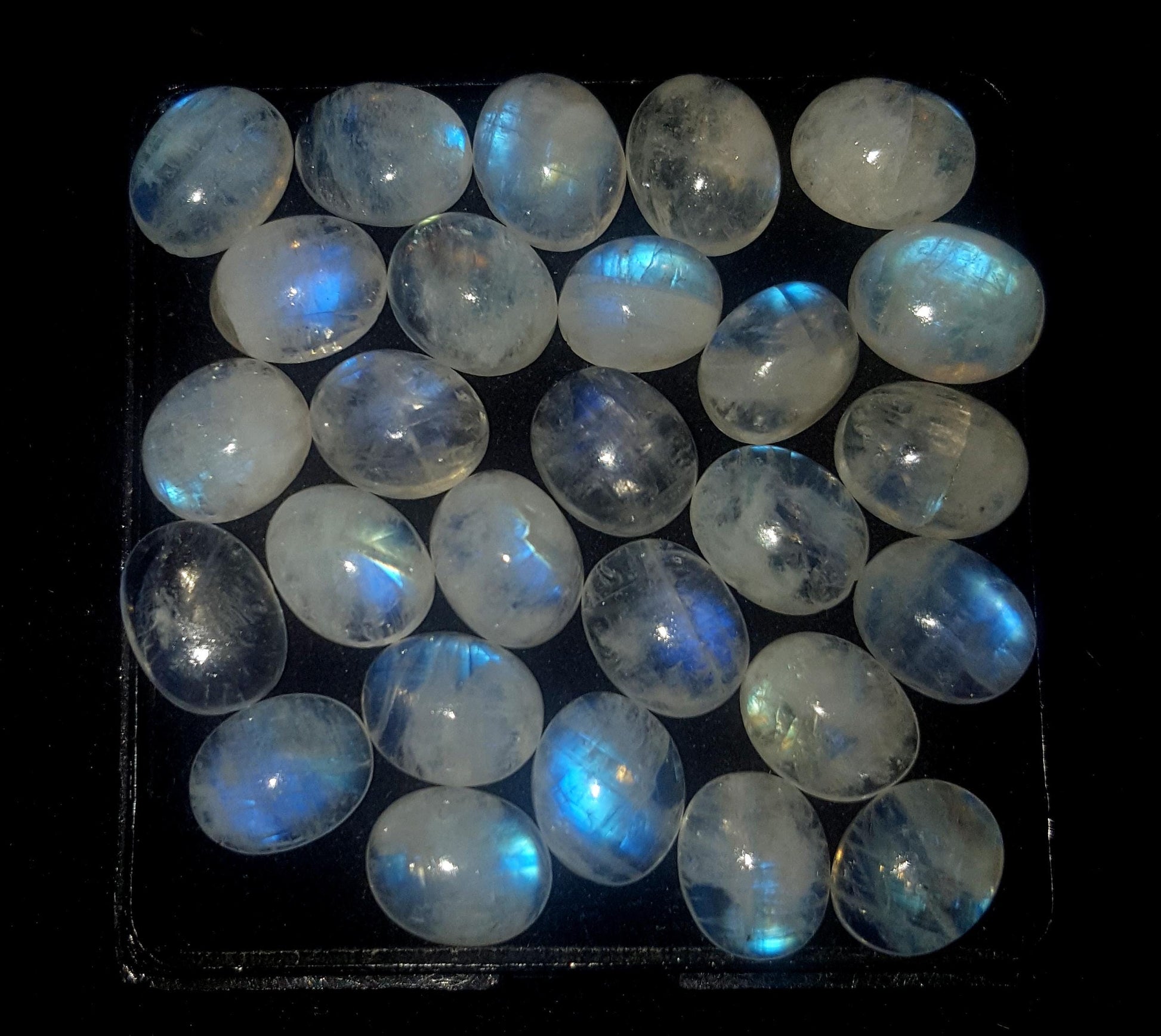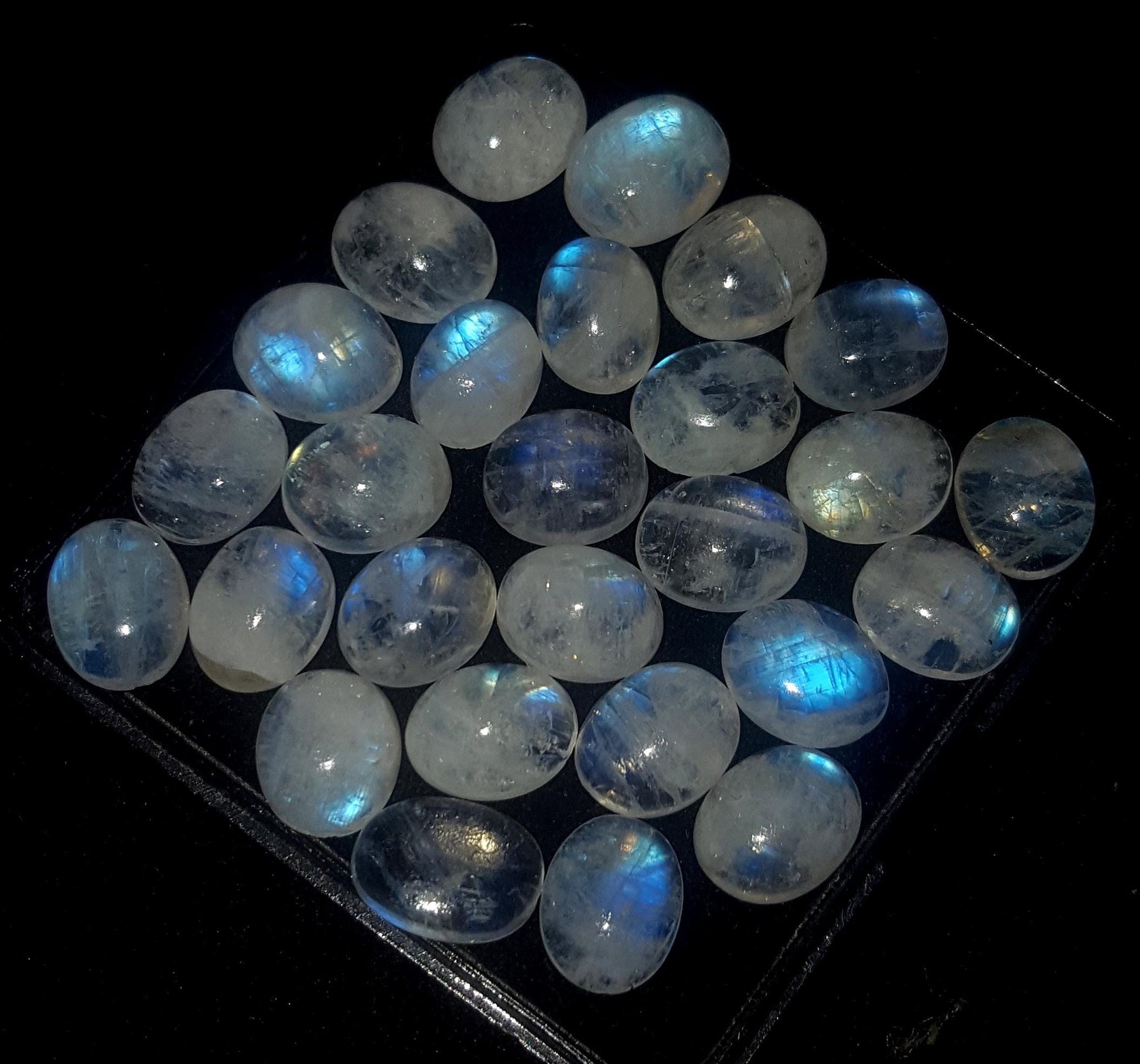 Stone Name : 100% Natural Rainbow Moonstone, Oval Blue Flashy Gemstone Lot,