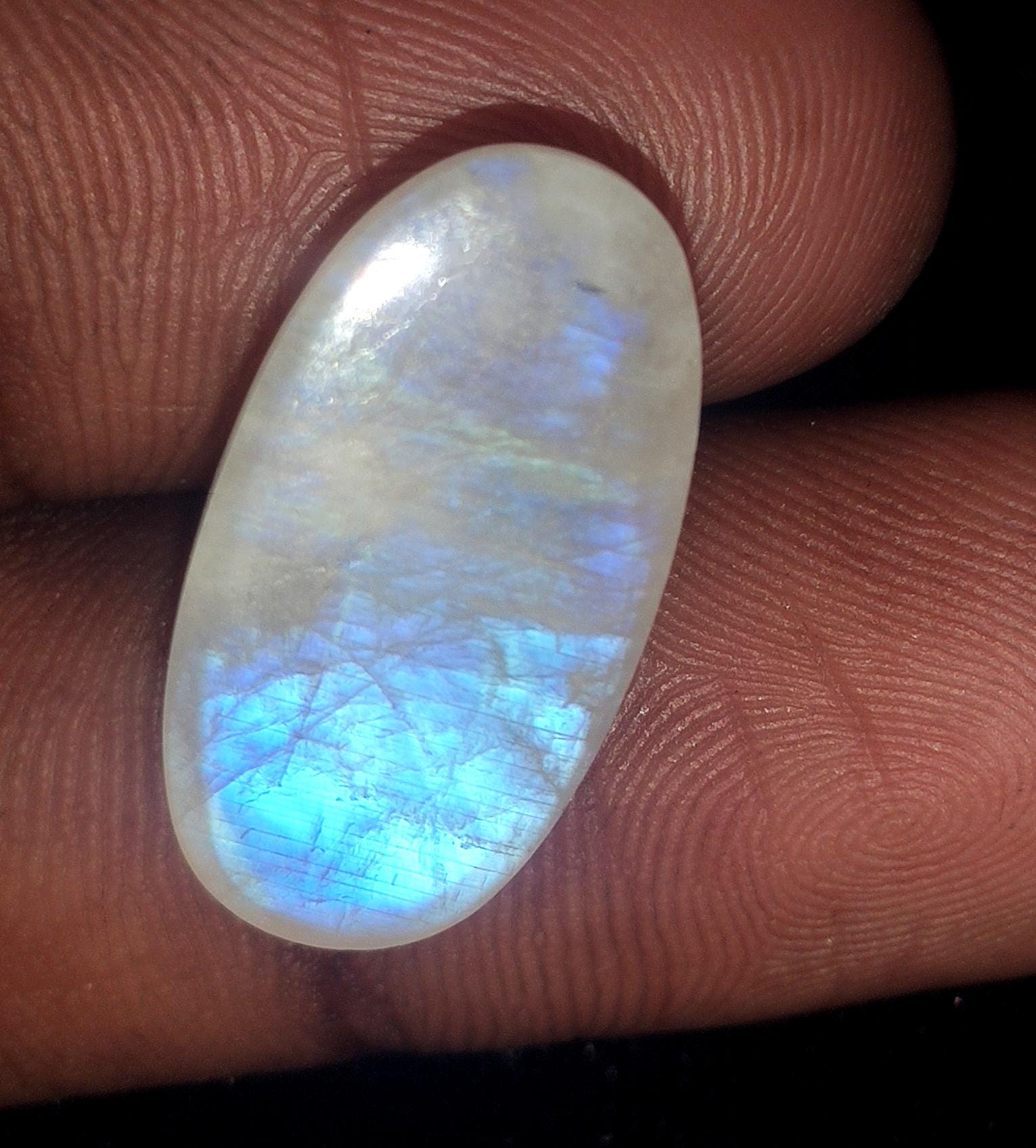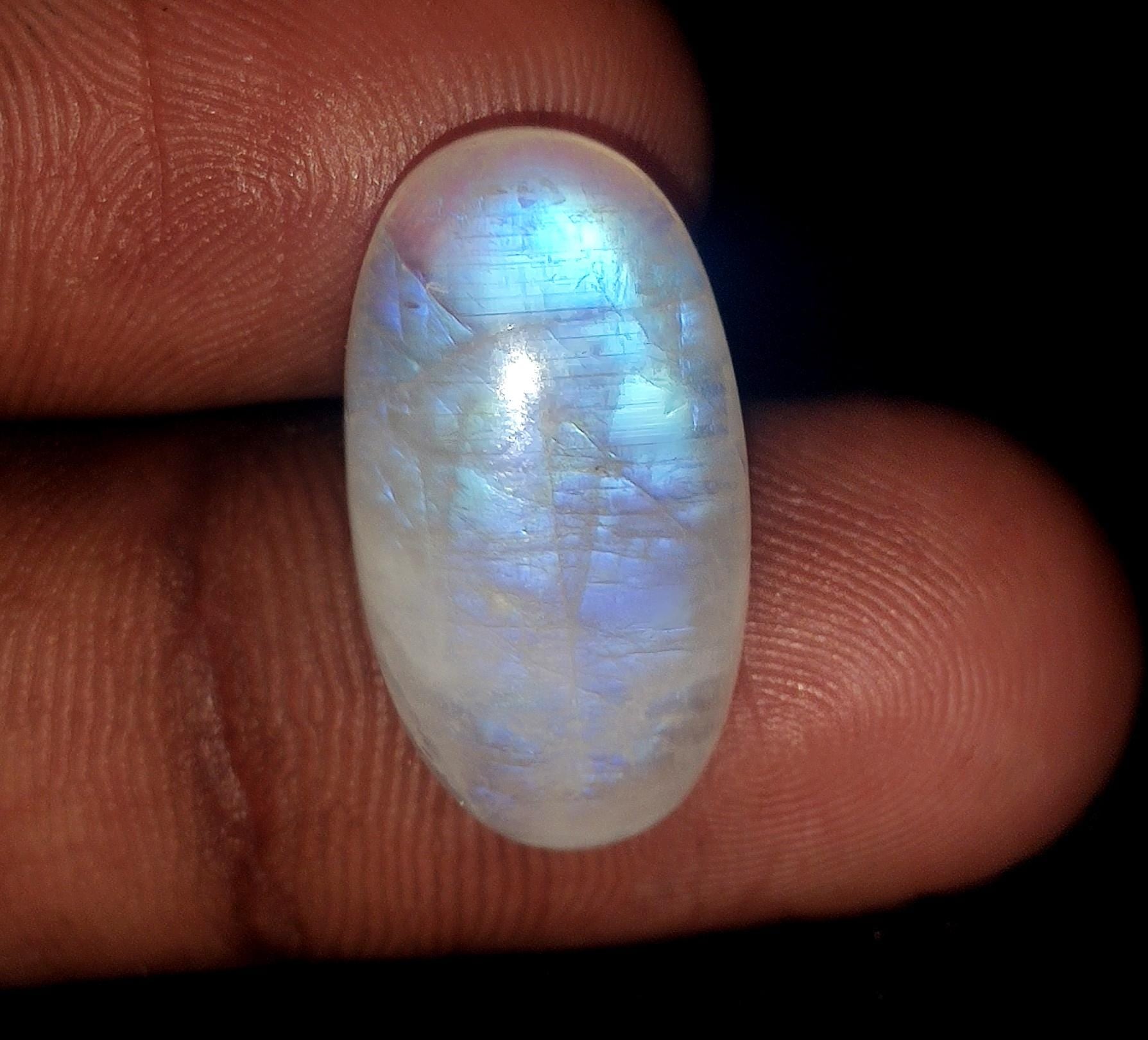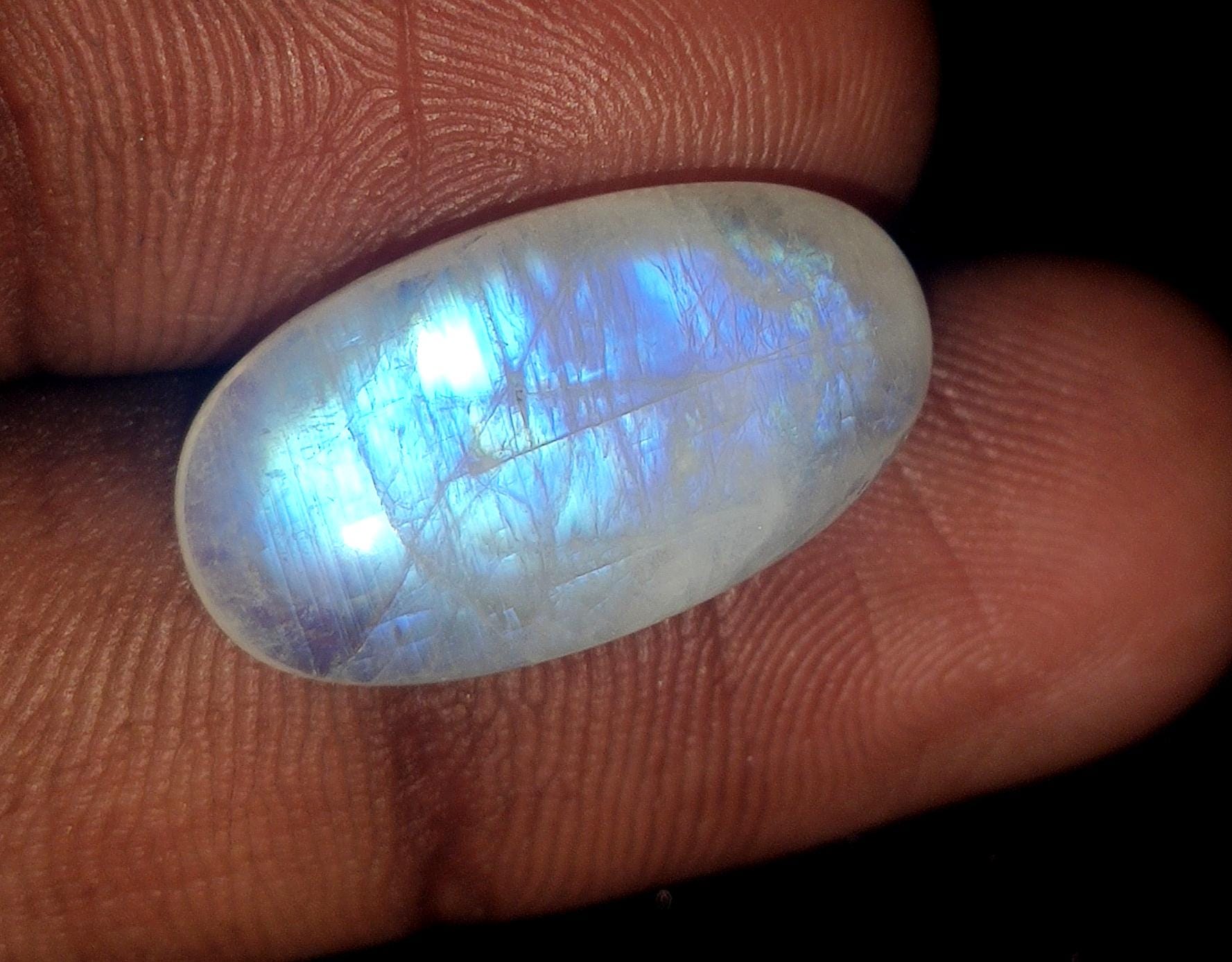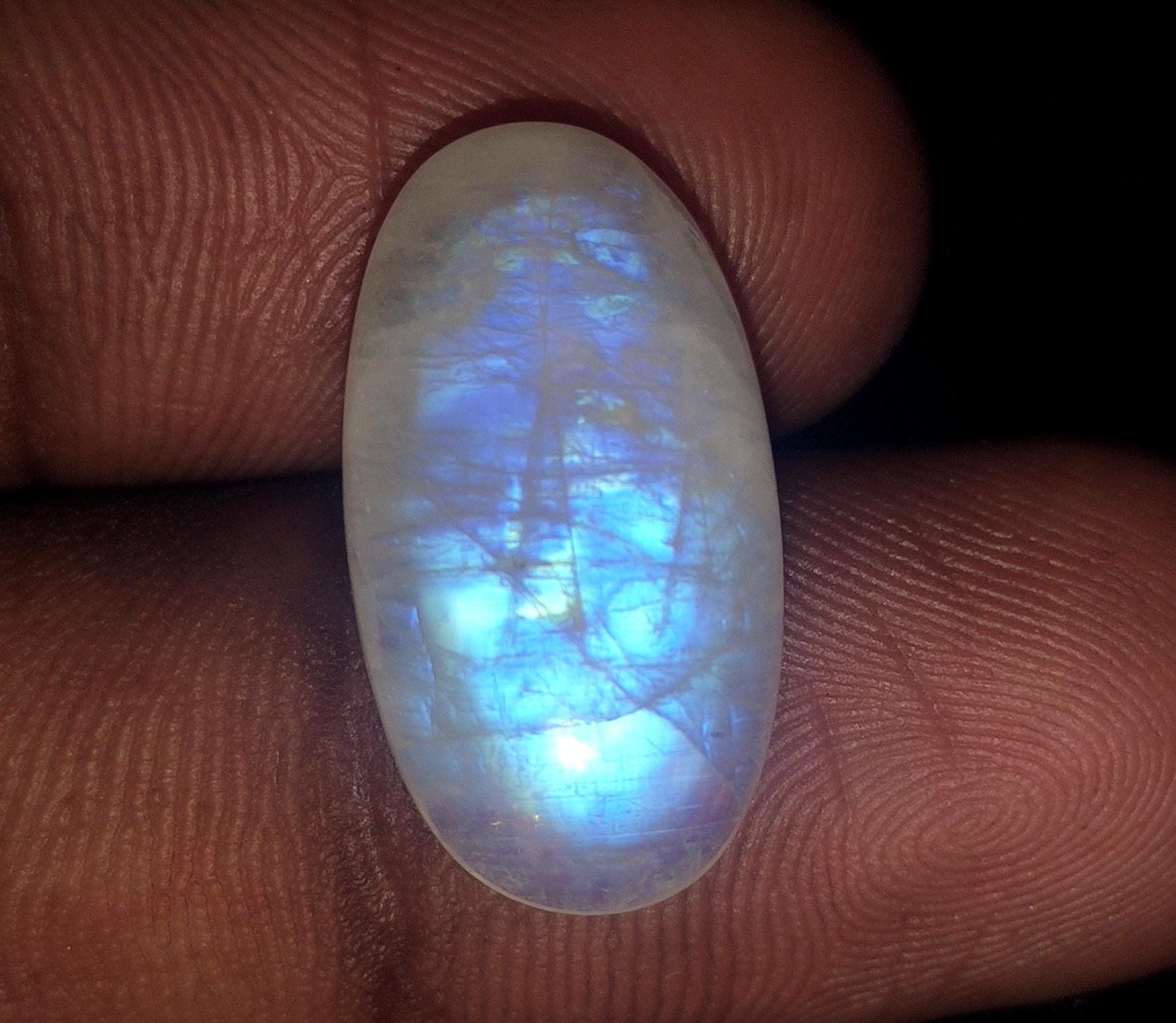 Very beautiful: 100% Natural Rainbow Moonstone, Oval Blue Flashy Loose Gemstone,