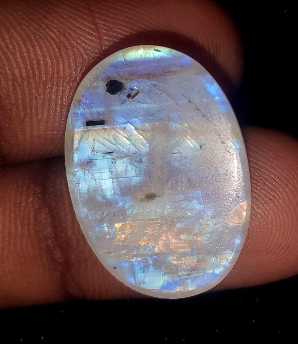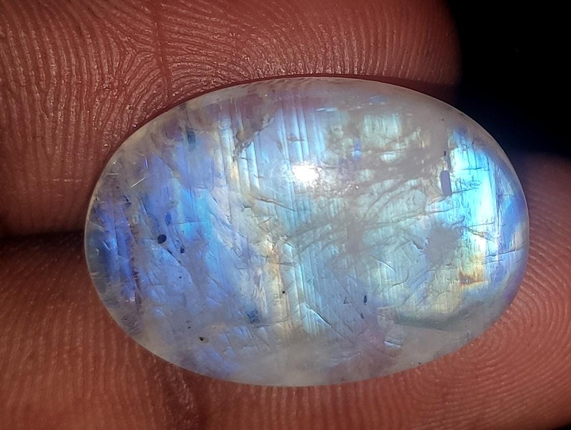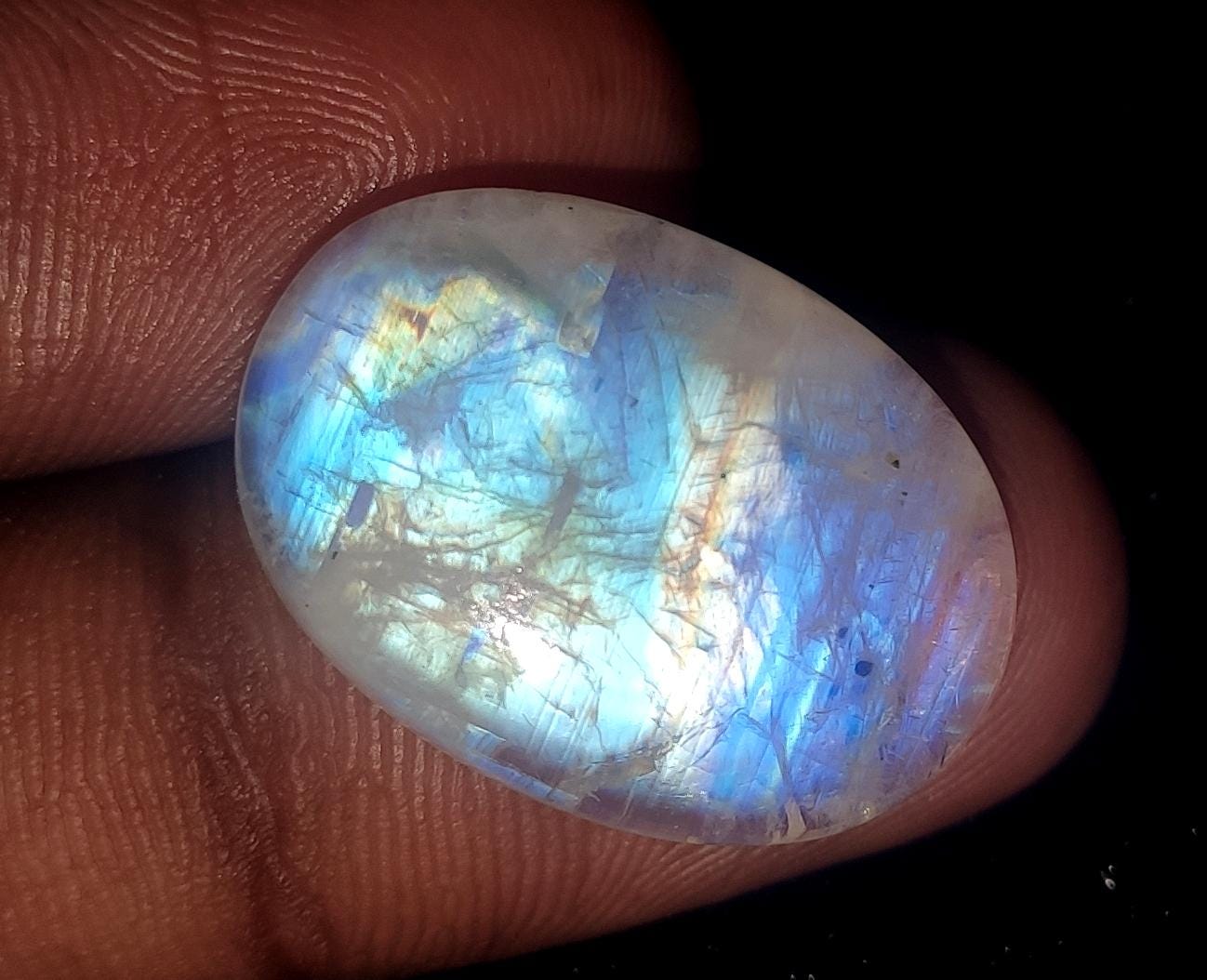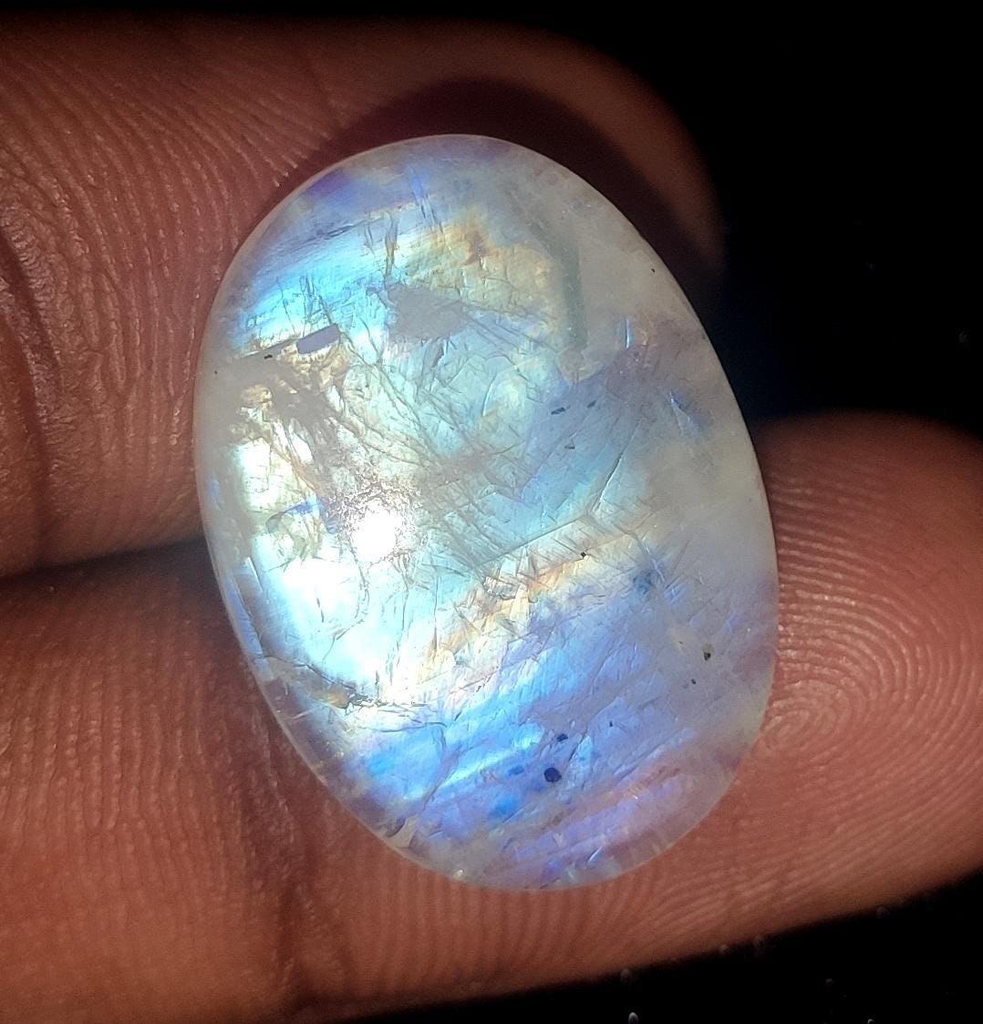 Very beautiful: 100% Natural Rainbow Moonstone, Oval Blue Flashy Loose Gemstone,