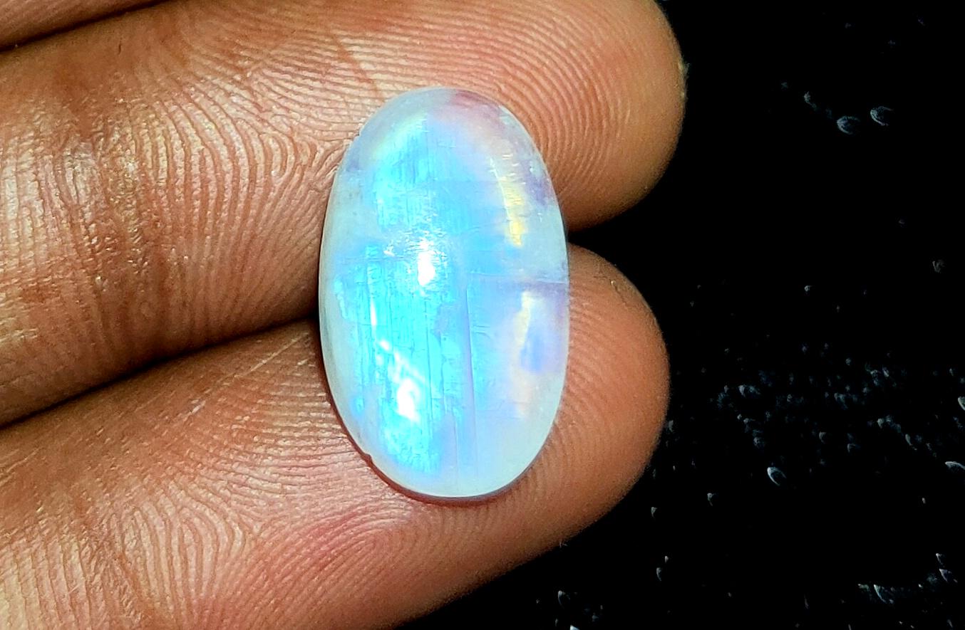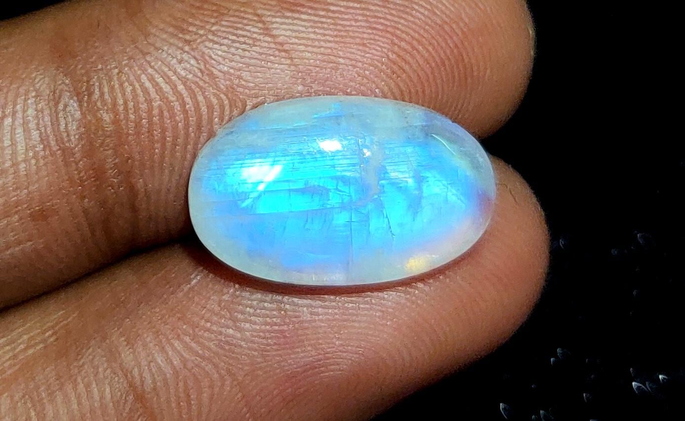 Very beautiful: 100% Natural Rainbow Moonstone, Oval Blue Flashy Loose Gemstone,