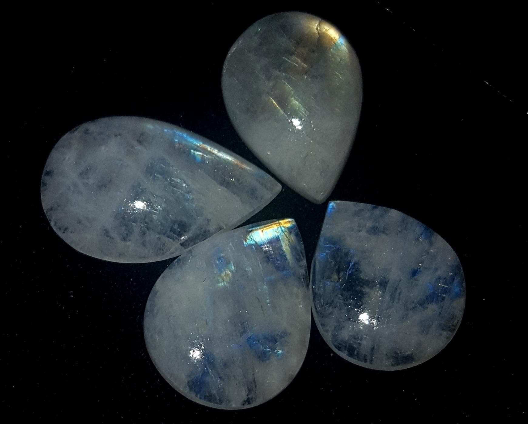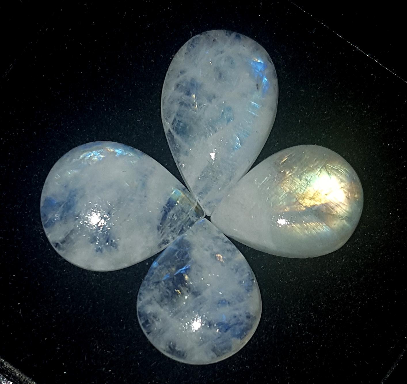 Moonstone, Natural Rainbow Moonstone, Pear Blue Flashy Gemstone Lot, 32.60 Carat, Size-10x14.5x5.5mm To 12x19x4.5mm, Gift For Her, Pc-4