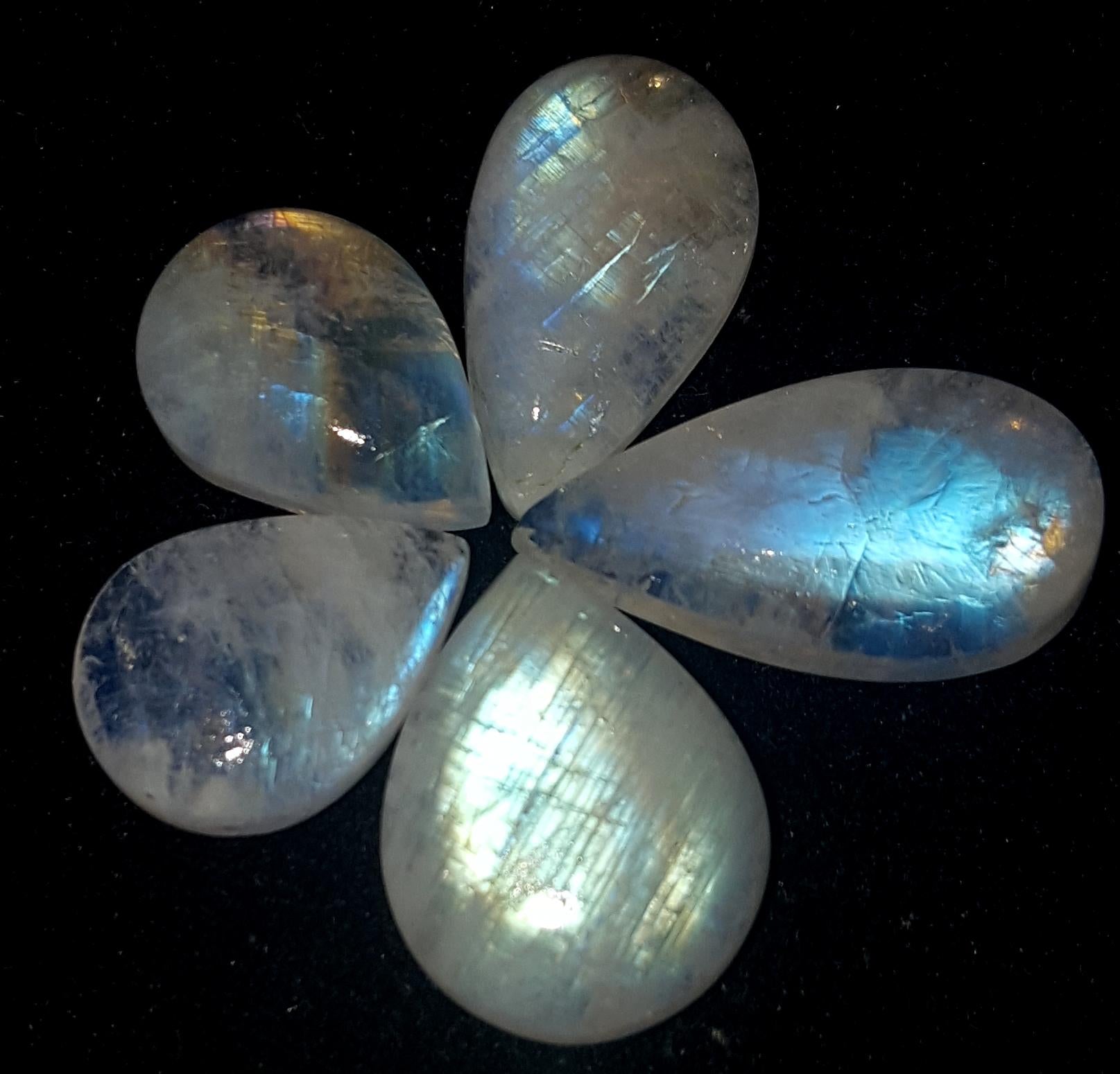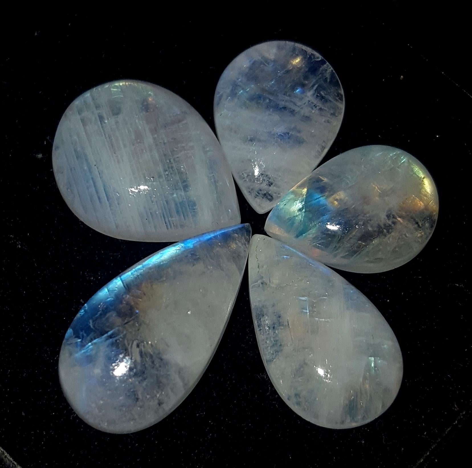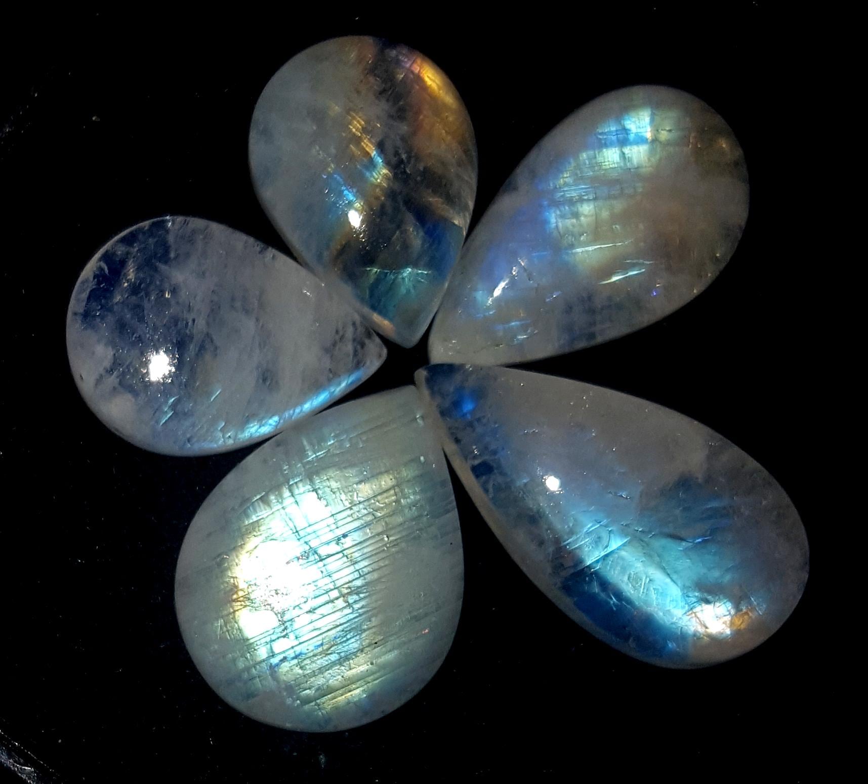 Moonstone, Natural Rainbow Moonstone, Pear Blue Flashy Gemstone Lot, 34.90 Carat, Size-10.5x14x5mm To 11x20.5x6mm , Gift For Her, Pc-5