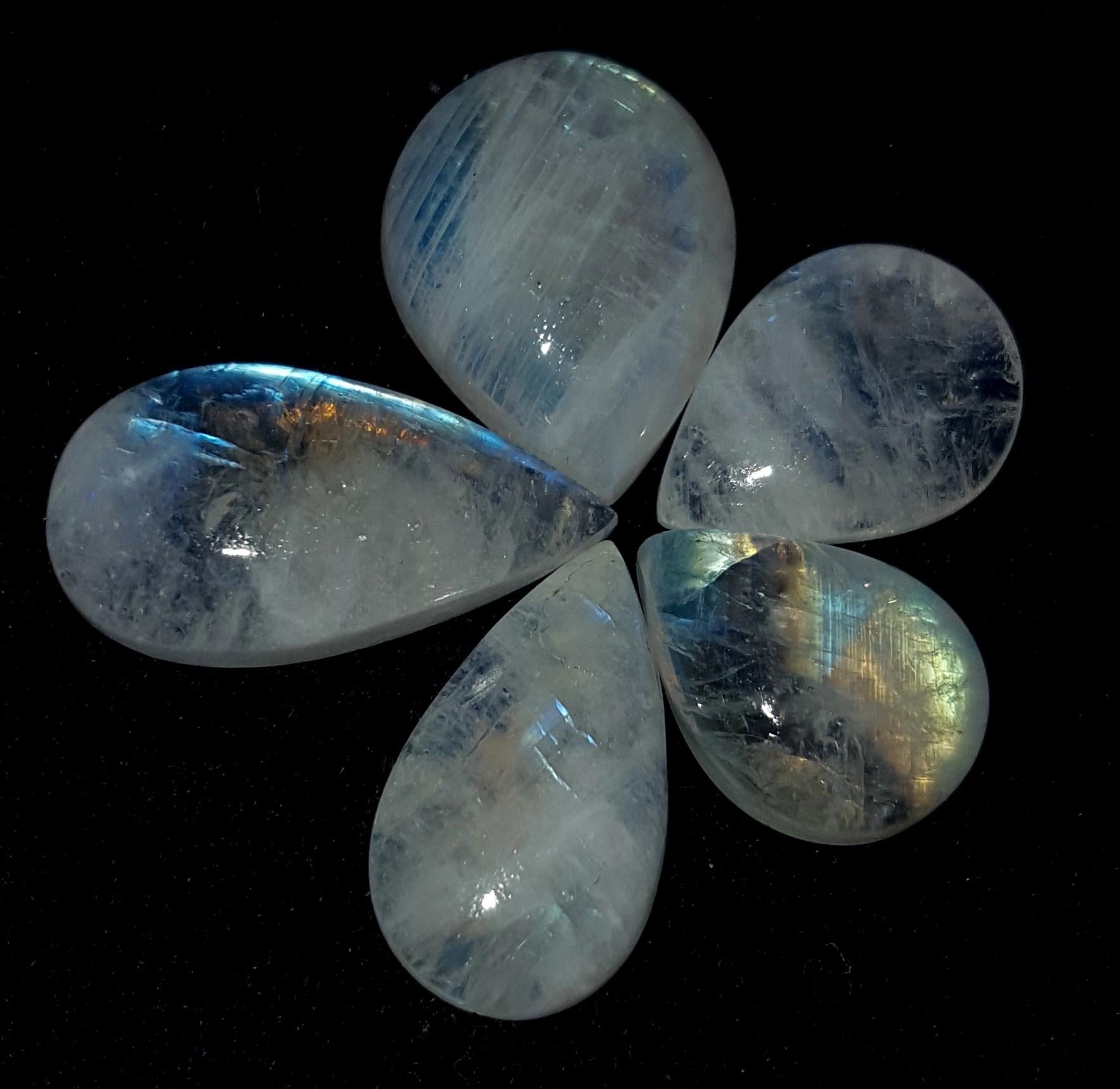 Stone Name : 100% Natural Rainbow Moonstone, Pear Blue Flashy Gemstone Lot