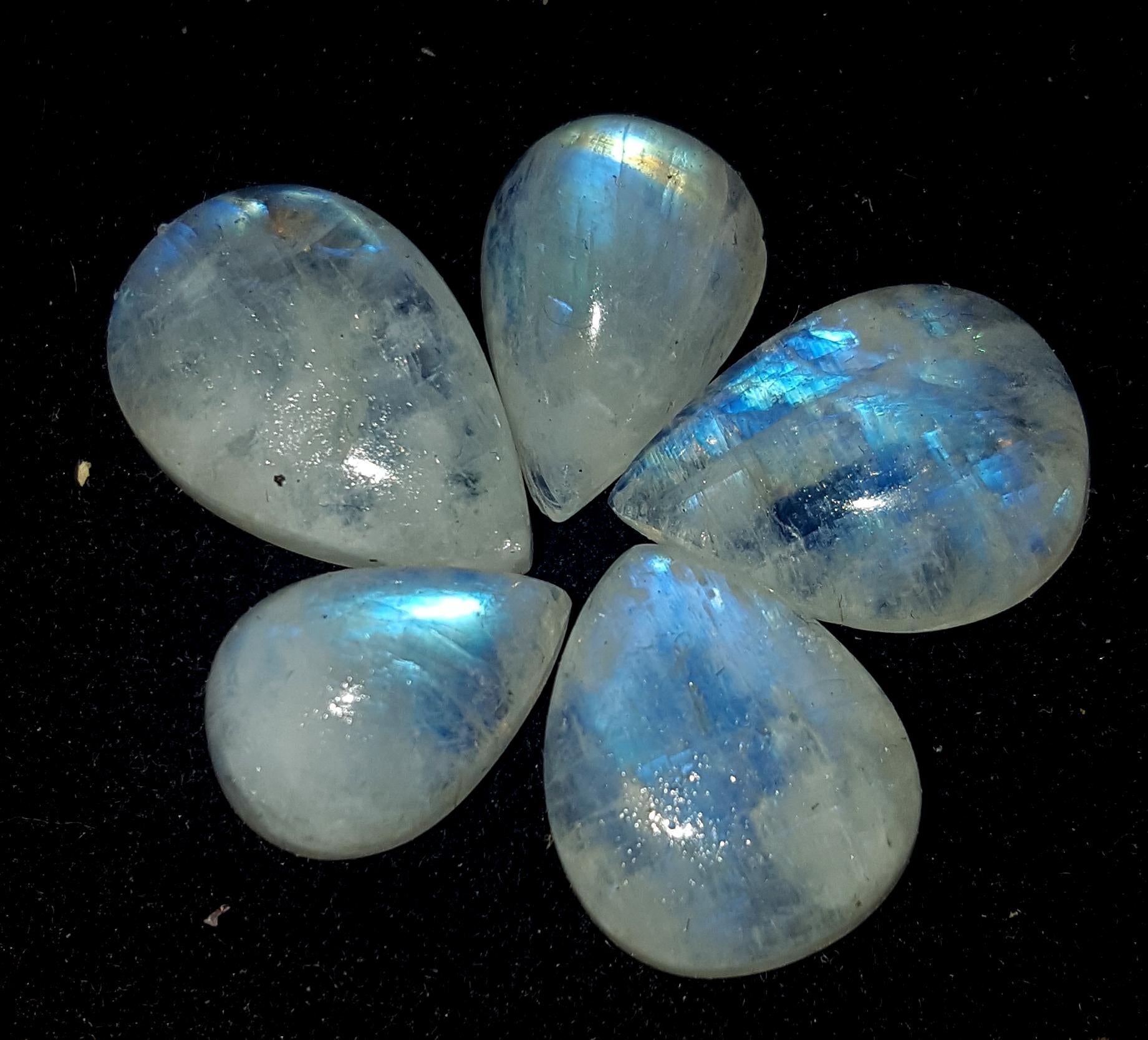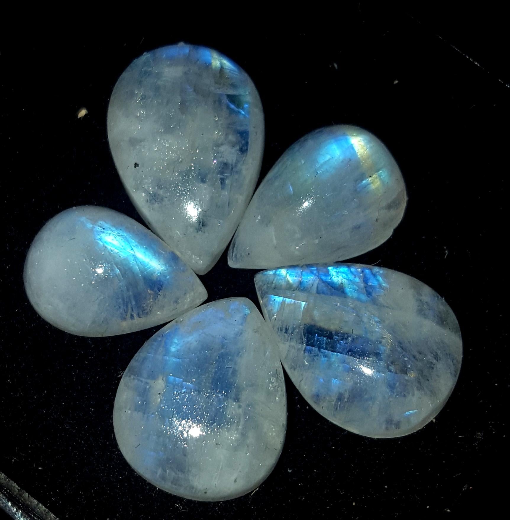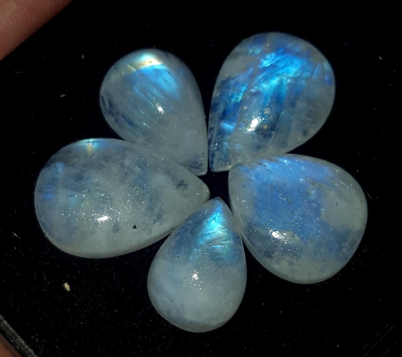 Moonstone, Natural Rainbow Moonstone, Pear Blue Flashy Gemstone Lot, 38.00 Carat, Size-14x10x7mm To 17.5x12x6mm, Gift For Her, Pc-5