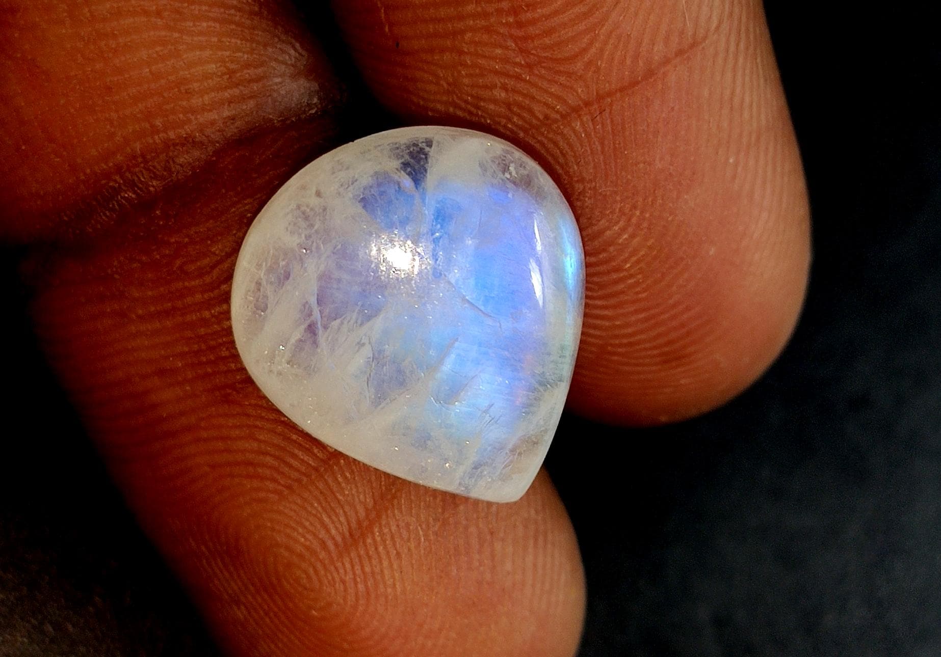 Moonstone, Natural Rainbow Moonstone, Pear Blue Flashy Loose Gemstone, 8.15 Carat, Size-14x16x5mm, Gift For Her,