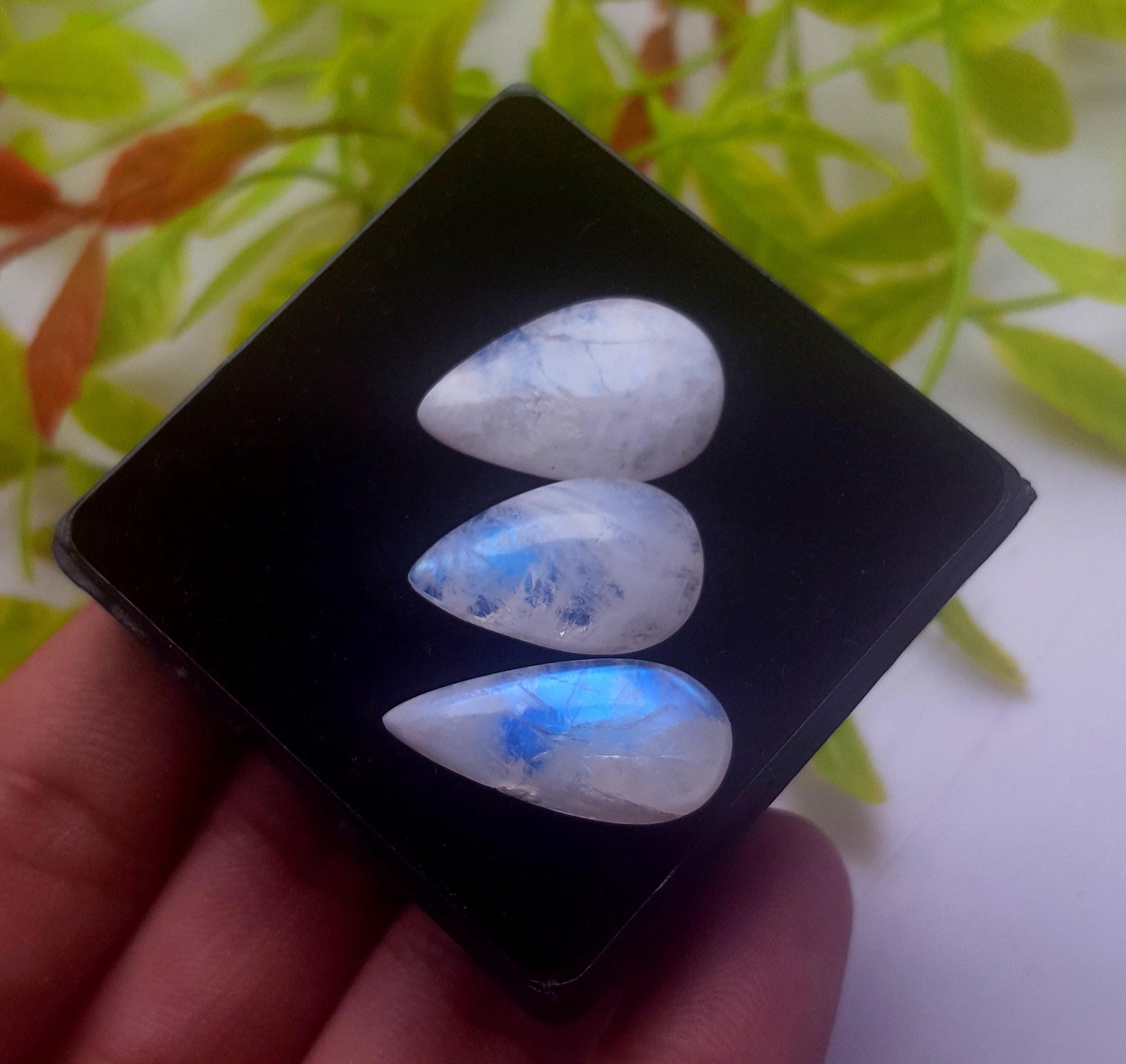 Stone Name : 100% Natural Rainbow Moonstone, Pear Smooth Cabochon Gemstone Lot