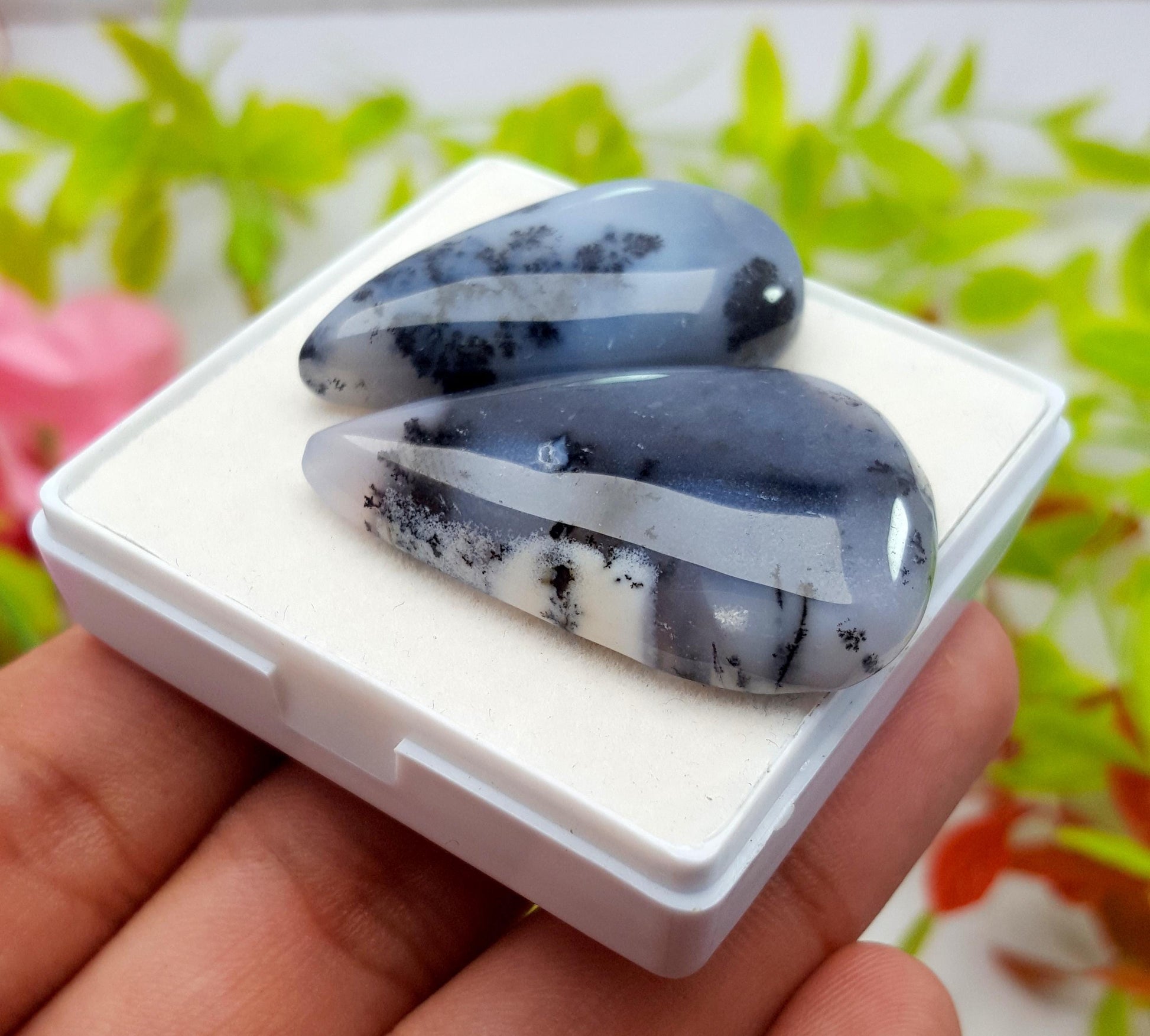 Very beautiful: 100% Natural Dendrite Opal Pear Cabochon Gemstone Lot