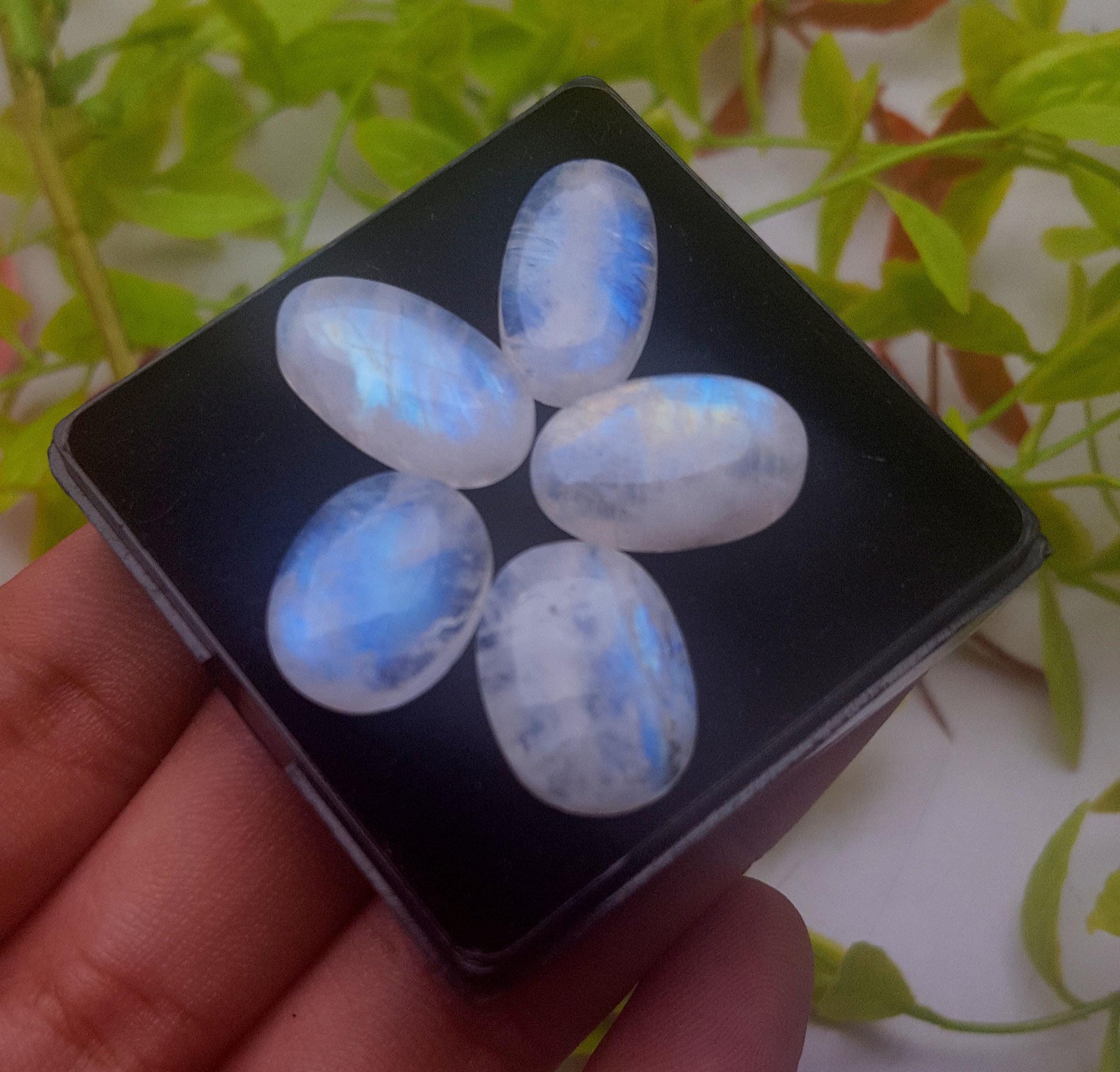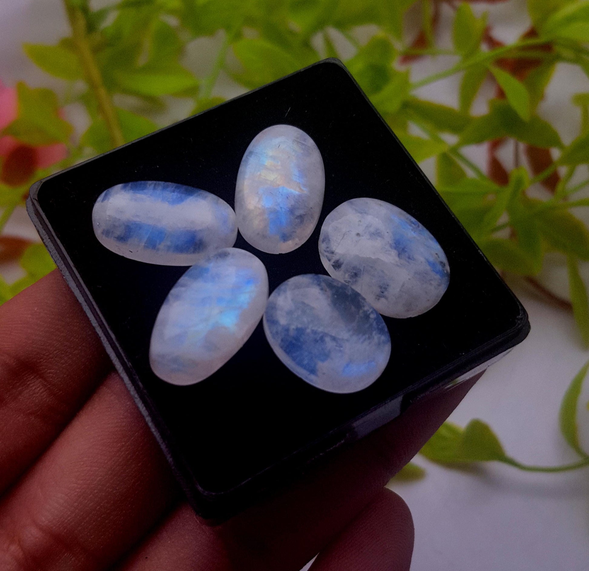 Natural Rainbow Moonstone, Oval Smooth Cabochon Gemstone Lot, 50.50 Carat, Size-18x12x5mm To 17x13x5mm, Gift For Her, PC-5