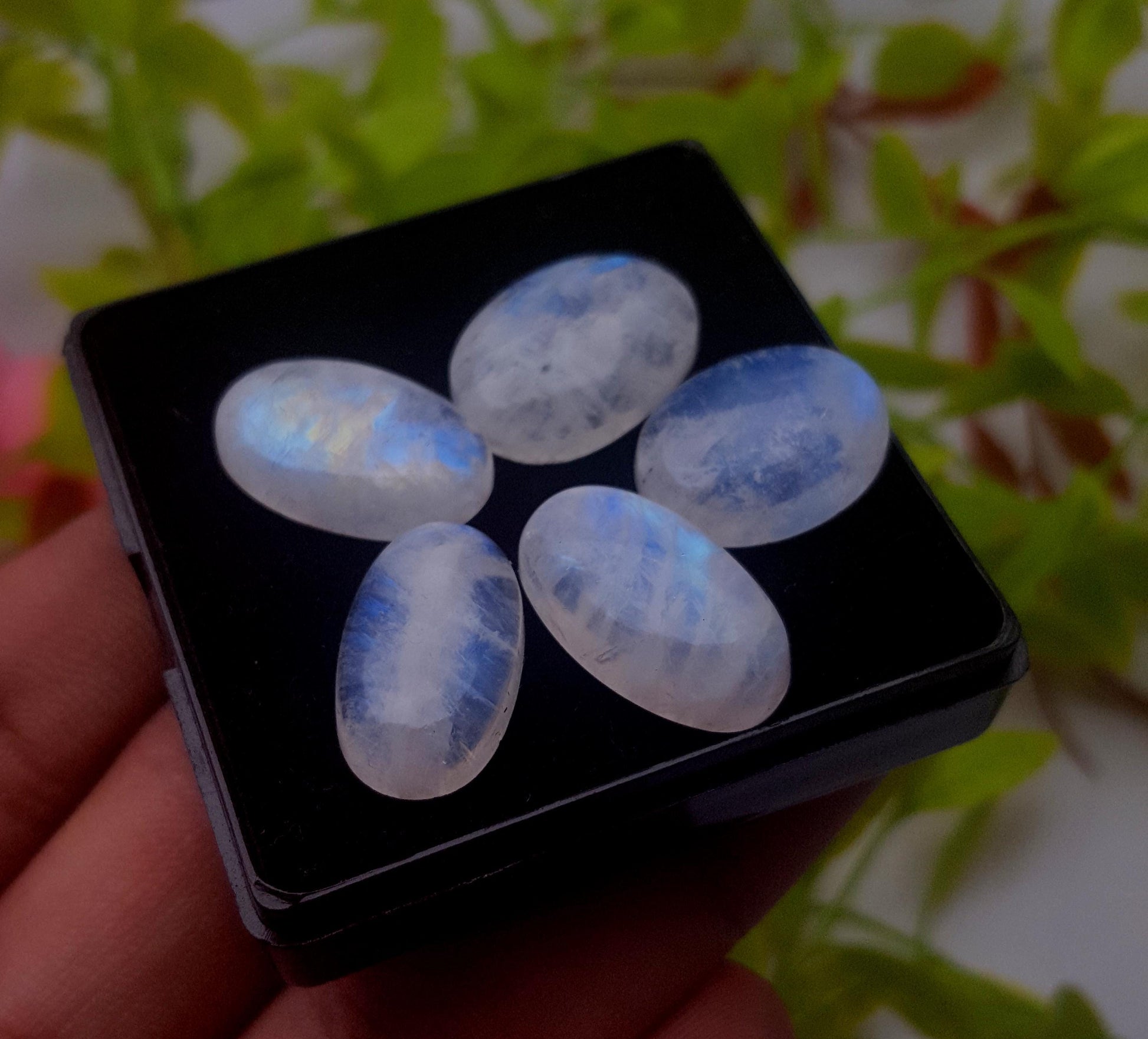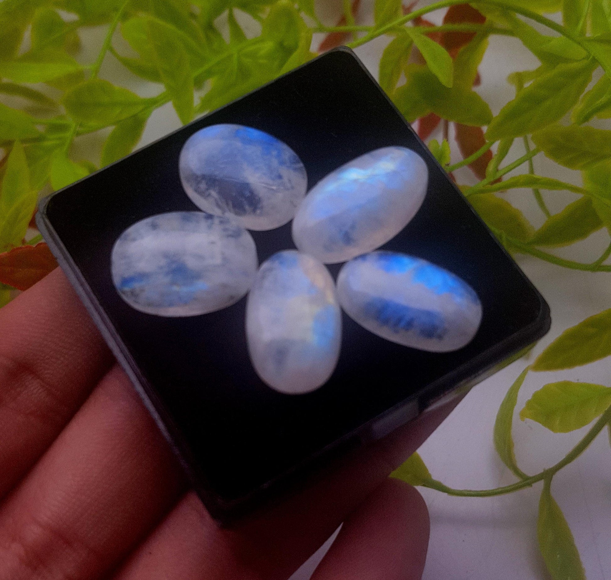Very beautiful: 100% Natural Rainbow Moonstone, Oval Smooth Cabochon Gemstone Lot