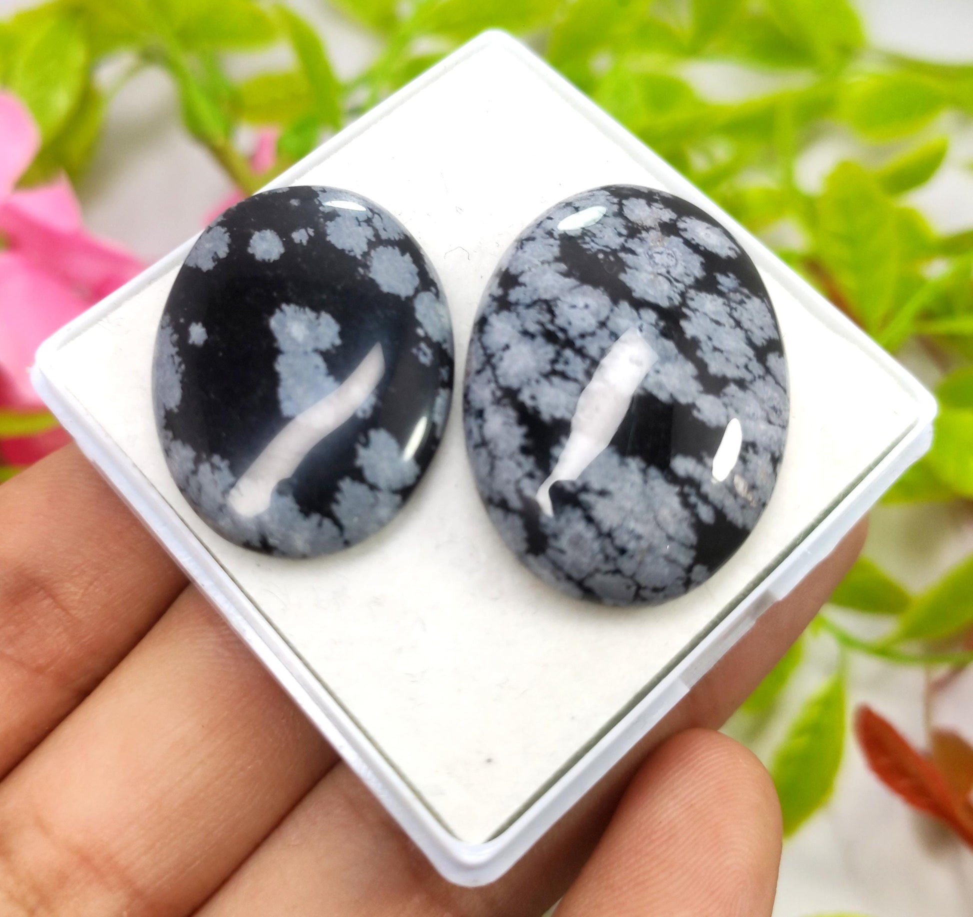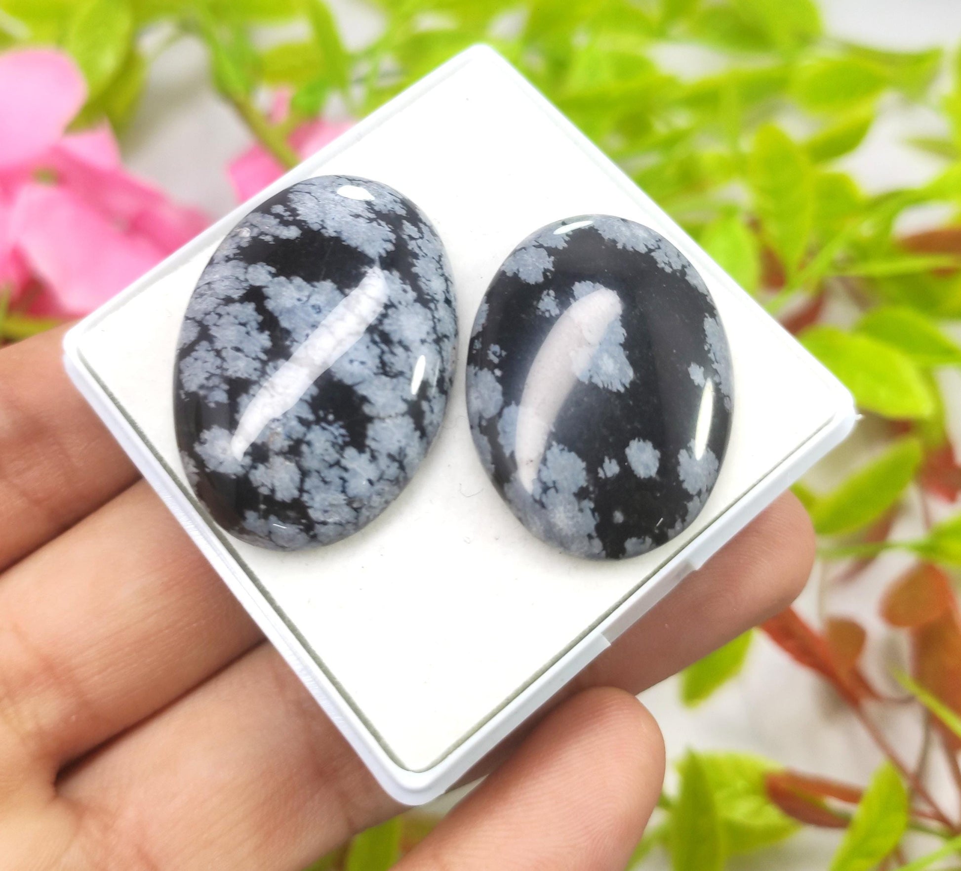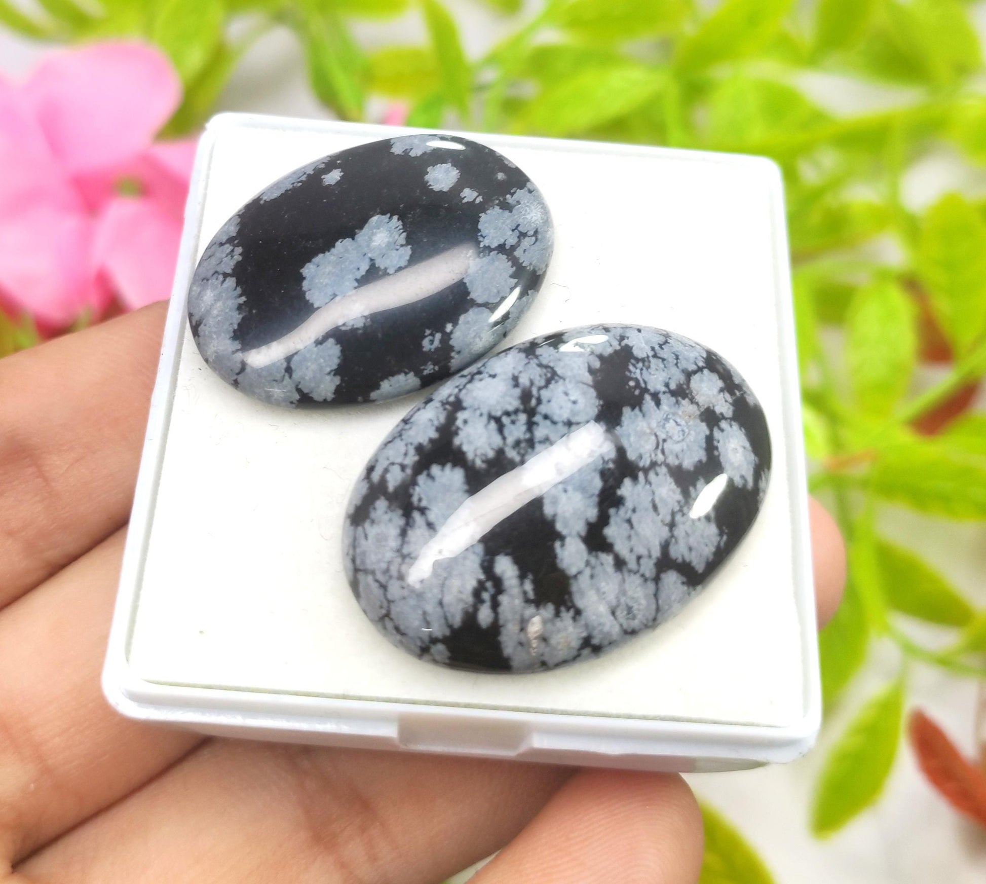 Very beautiful: 100% Natural Snow Flake Obsidian, Oval Smooth Cabochon Gemstone Lot