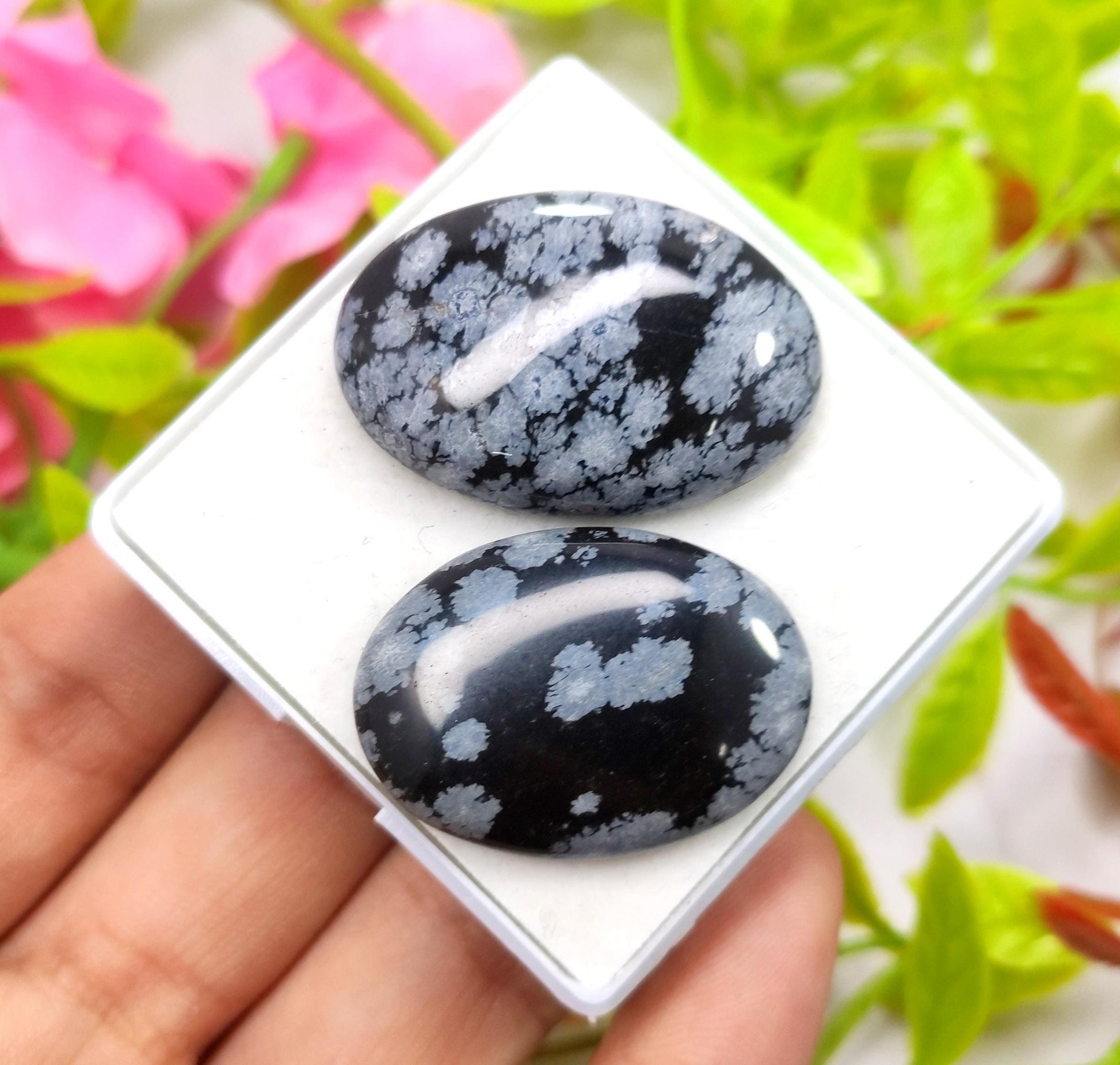 Obsidian, 100% Natural Snow Flake Obsidian, Oval Smooth Cabochon Gemstone Lot, 60.10 Carat, Size-34x23x6mm To 31x22x5mm, Gift For Her, PC-2