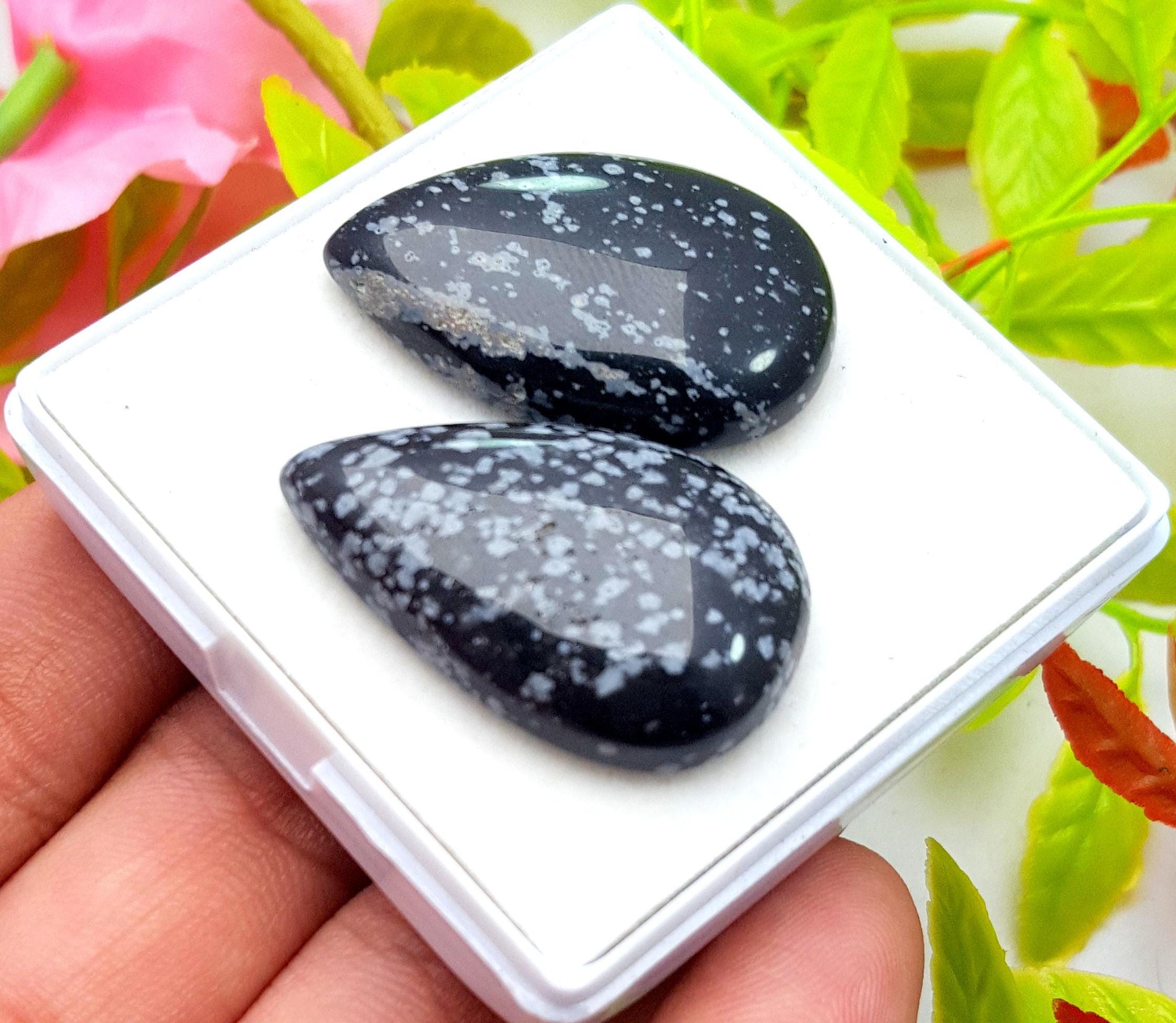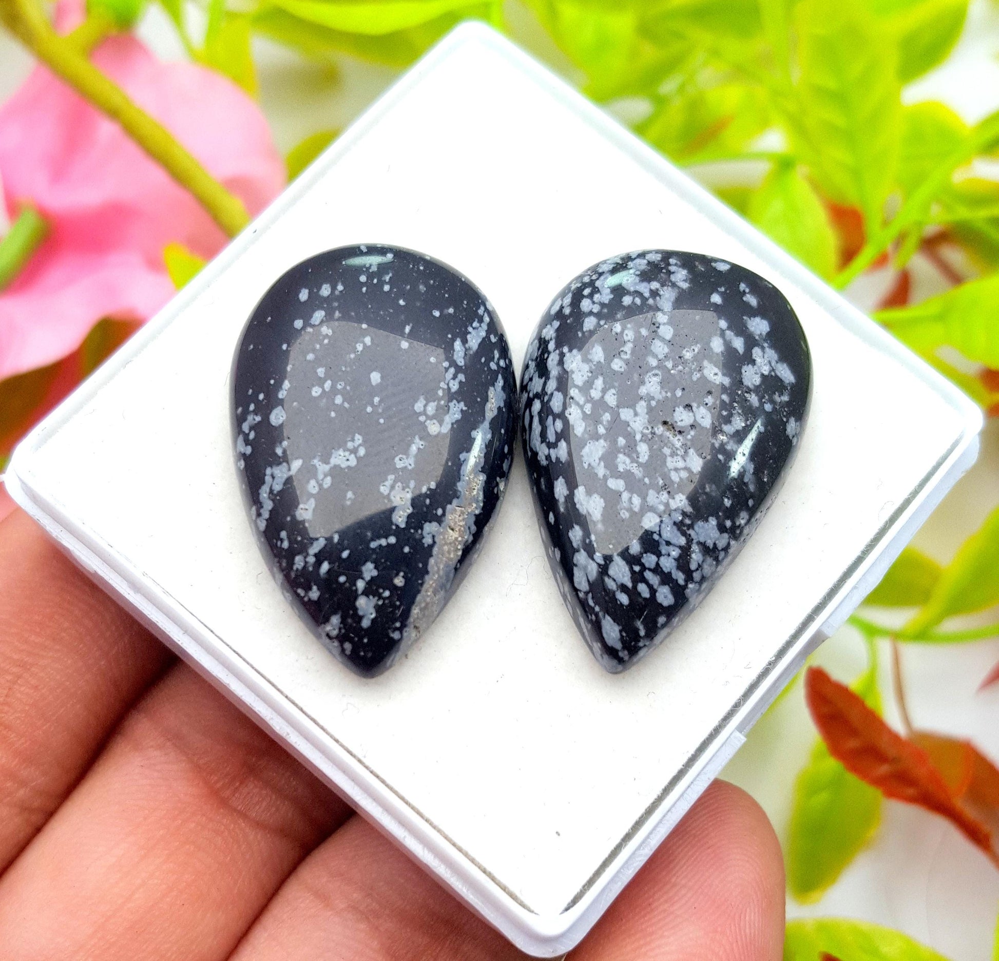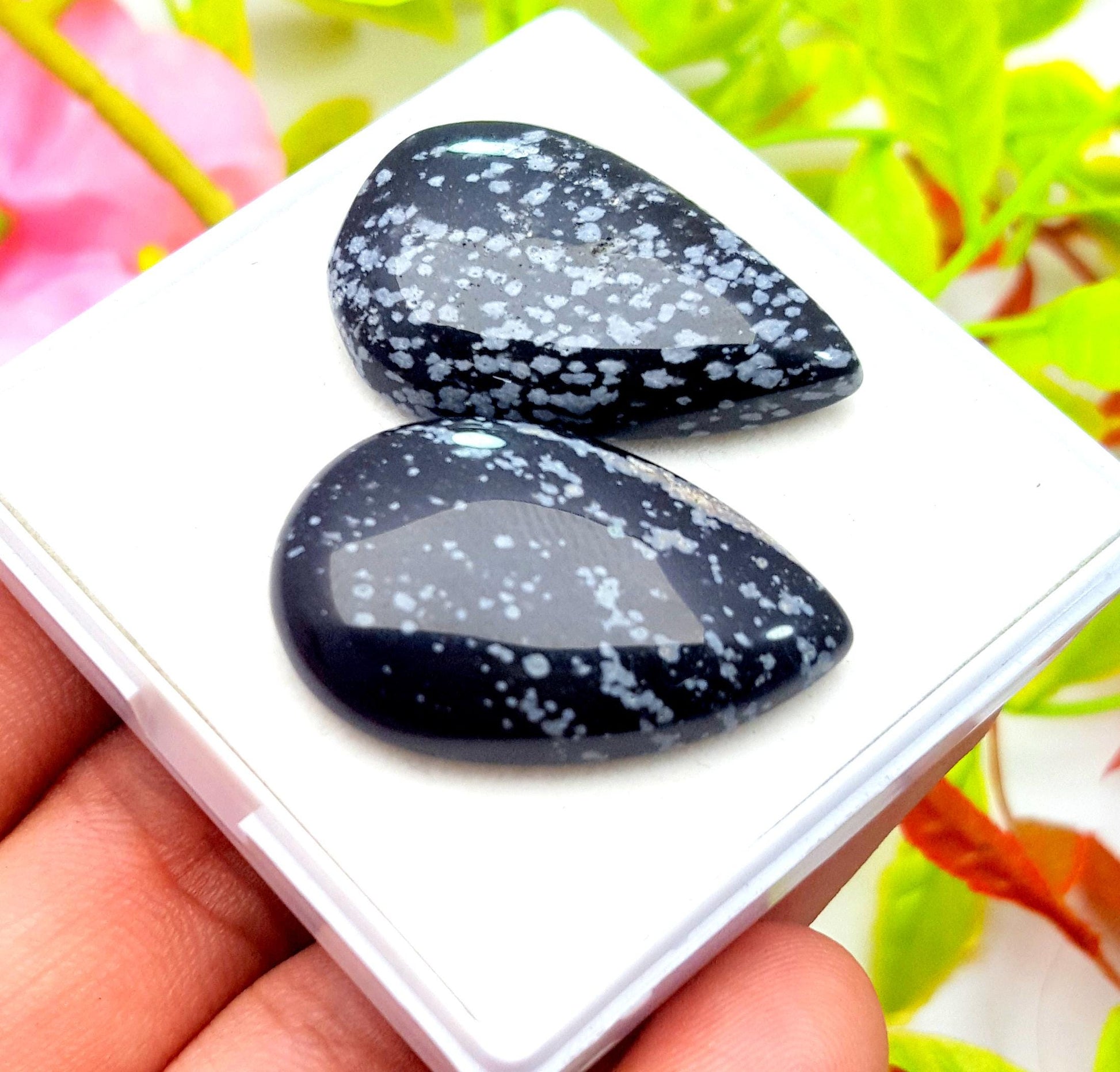 Obsidian, 100% Natural Snow Flake Obsidian, Pear Smooth Cabochon Gemstone Lot, 50.99 Carat, Size-31x20x6mm To 31x19x6mm, Gift For Her, PC-2