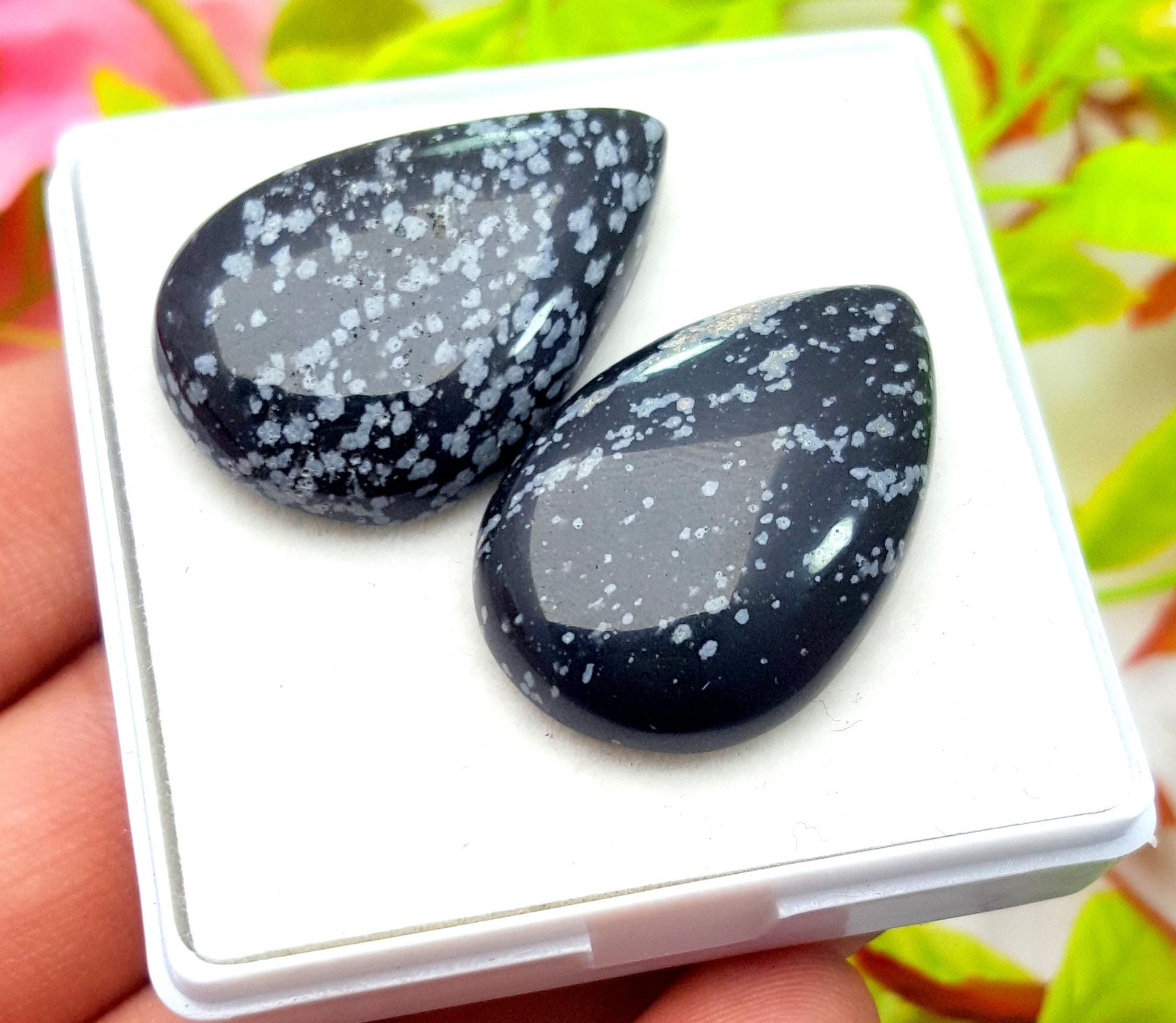 Very beautiful: 100% Natural Snow Flake Obsidian, Pear Smooth Cabochon Gemstone Lot