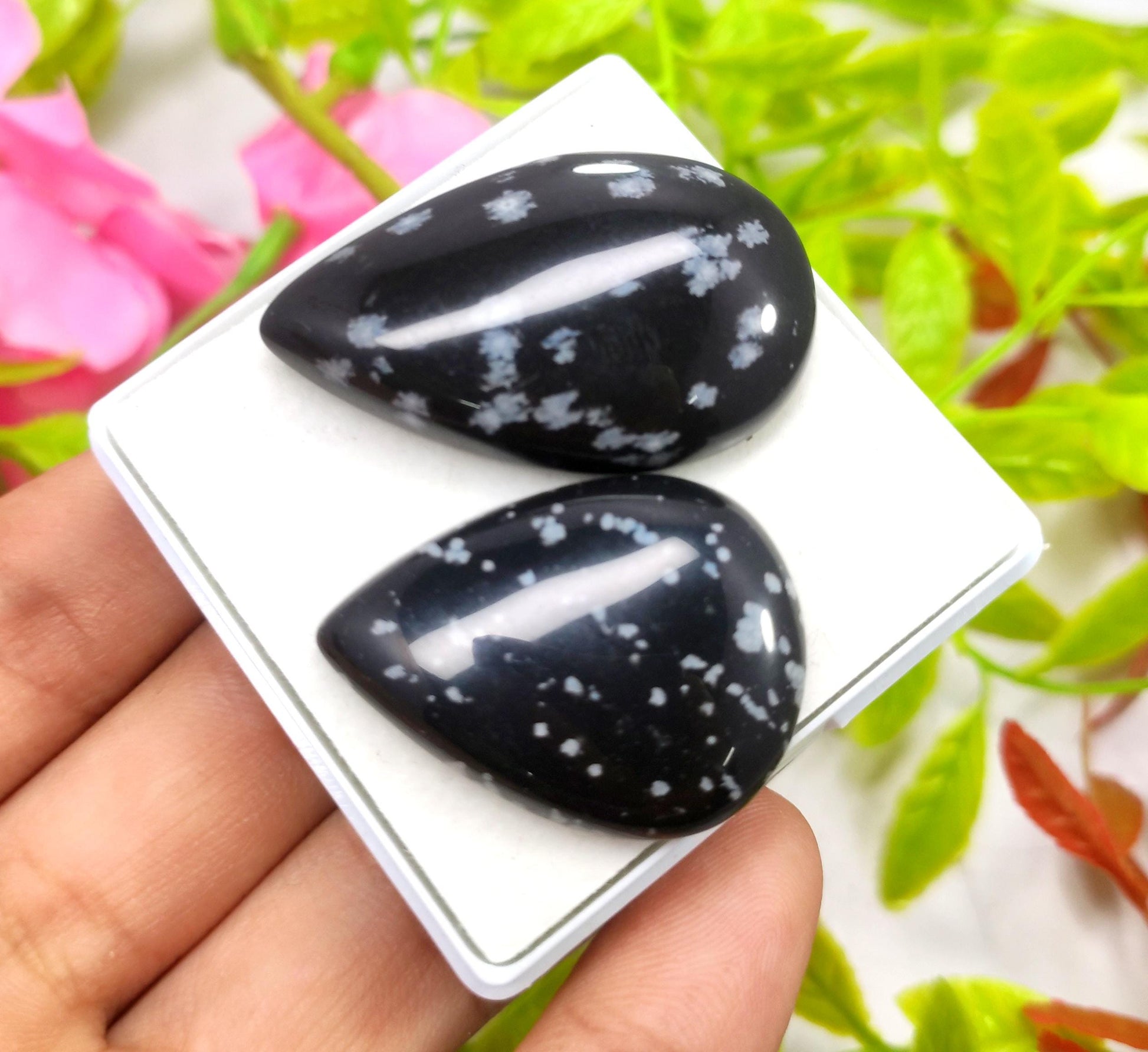 Stone Name : 100% Natural Snow Flake Obsidian, Pear Smooth Cabochon Gemstone Lot