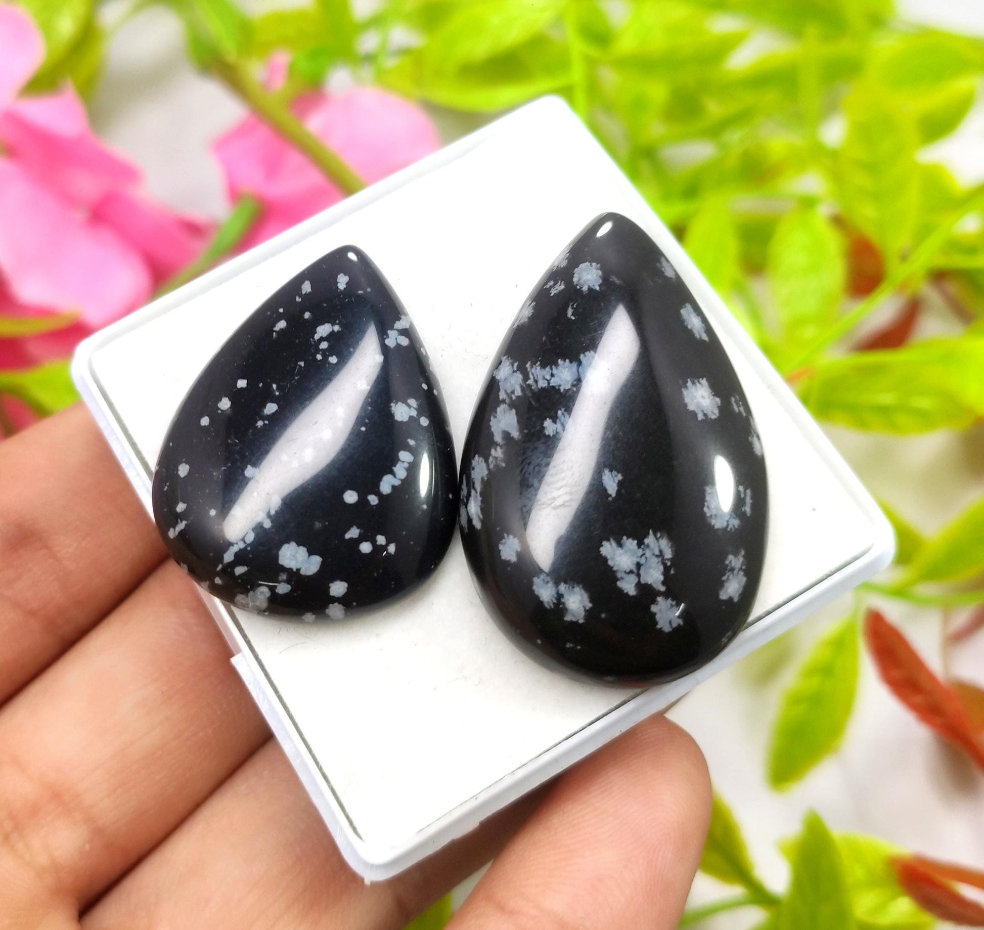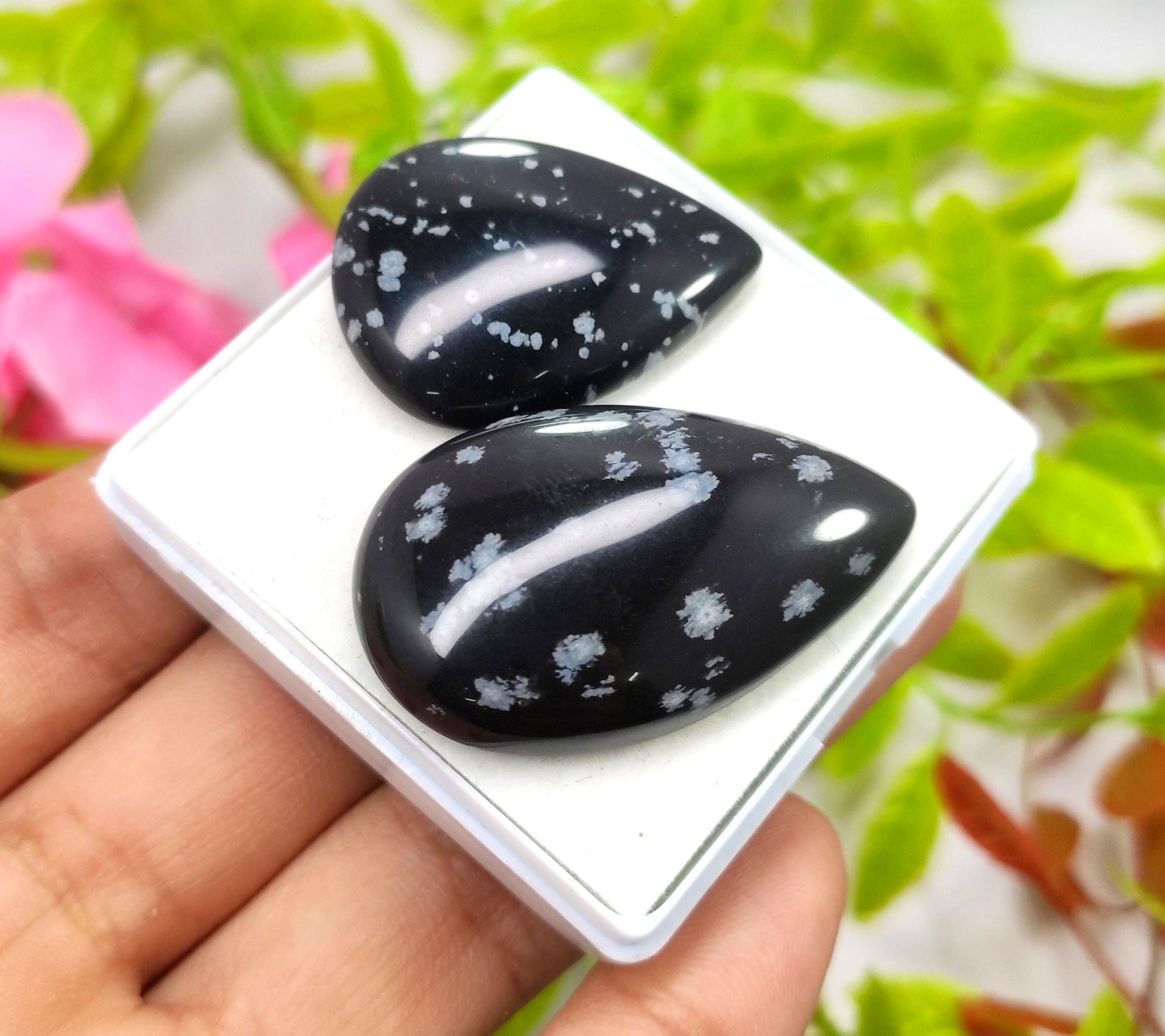 Obsidian, 100% Natural Snow Flake Obsidian, Pear Smooth Cabochon Gemstone Lot, 78.40 Carat, Size-39x24x7mm To 32x24x5mm, Gift For Her, PC-2