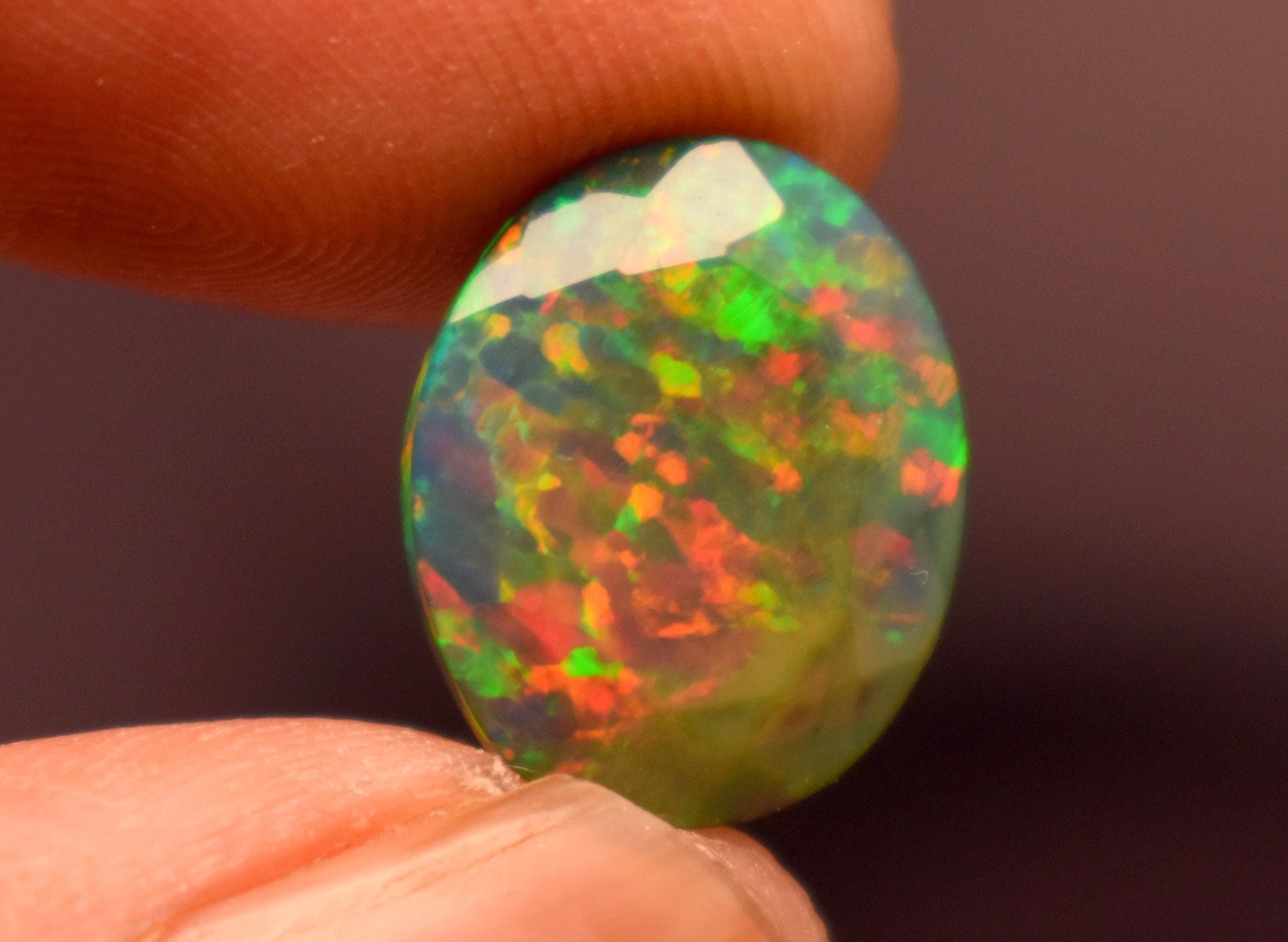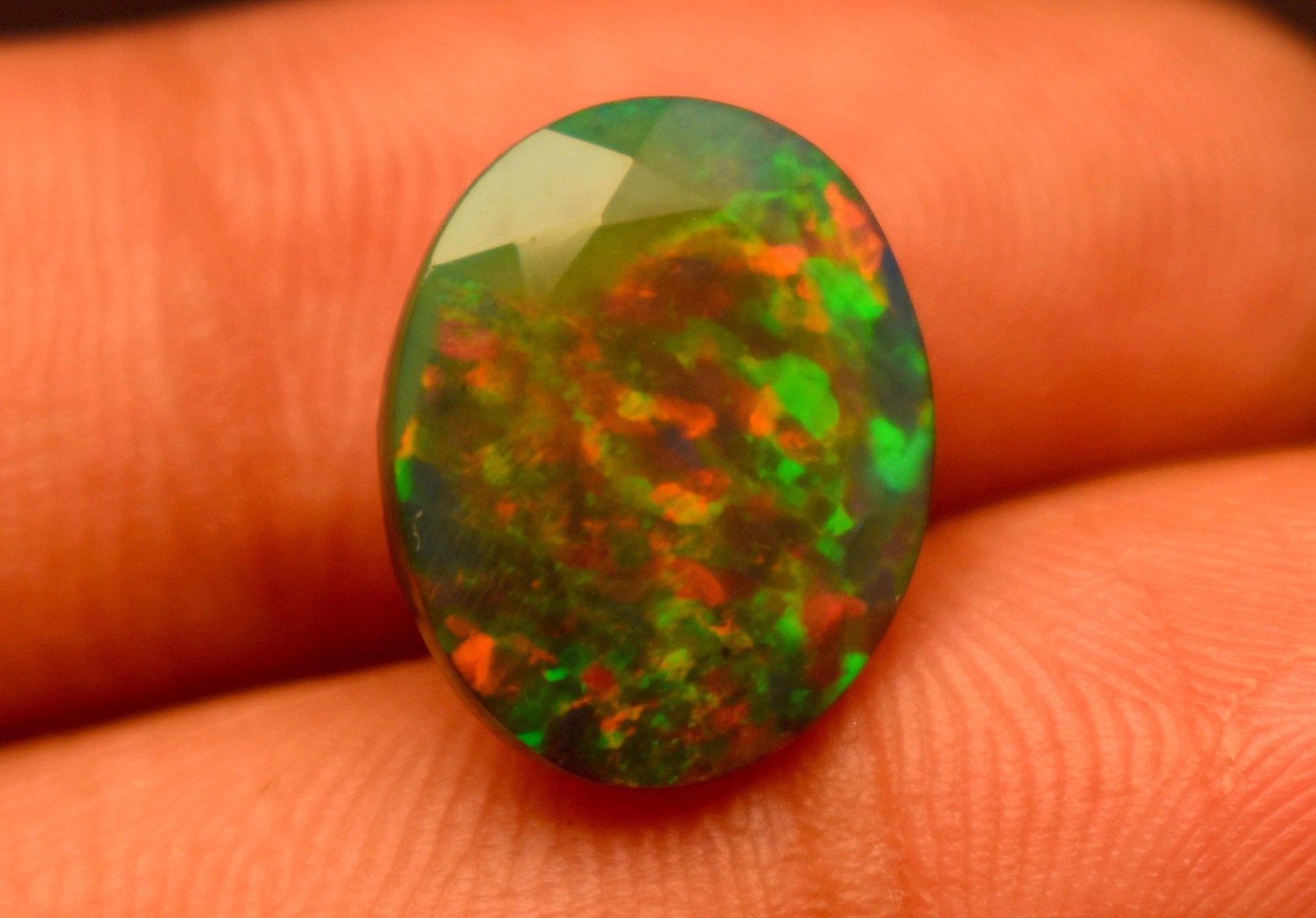 Opal, Black Ethiopian Opal, Oval Faceted Loose Gemstone, 5.20 Carat, Size-14.5x12x6.5mm, For Jewelry Making,