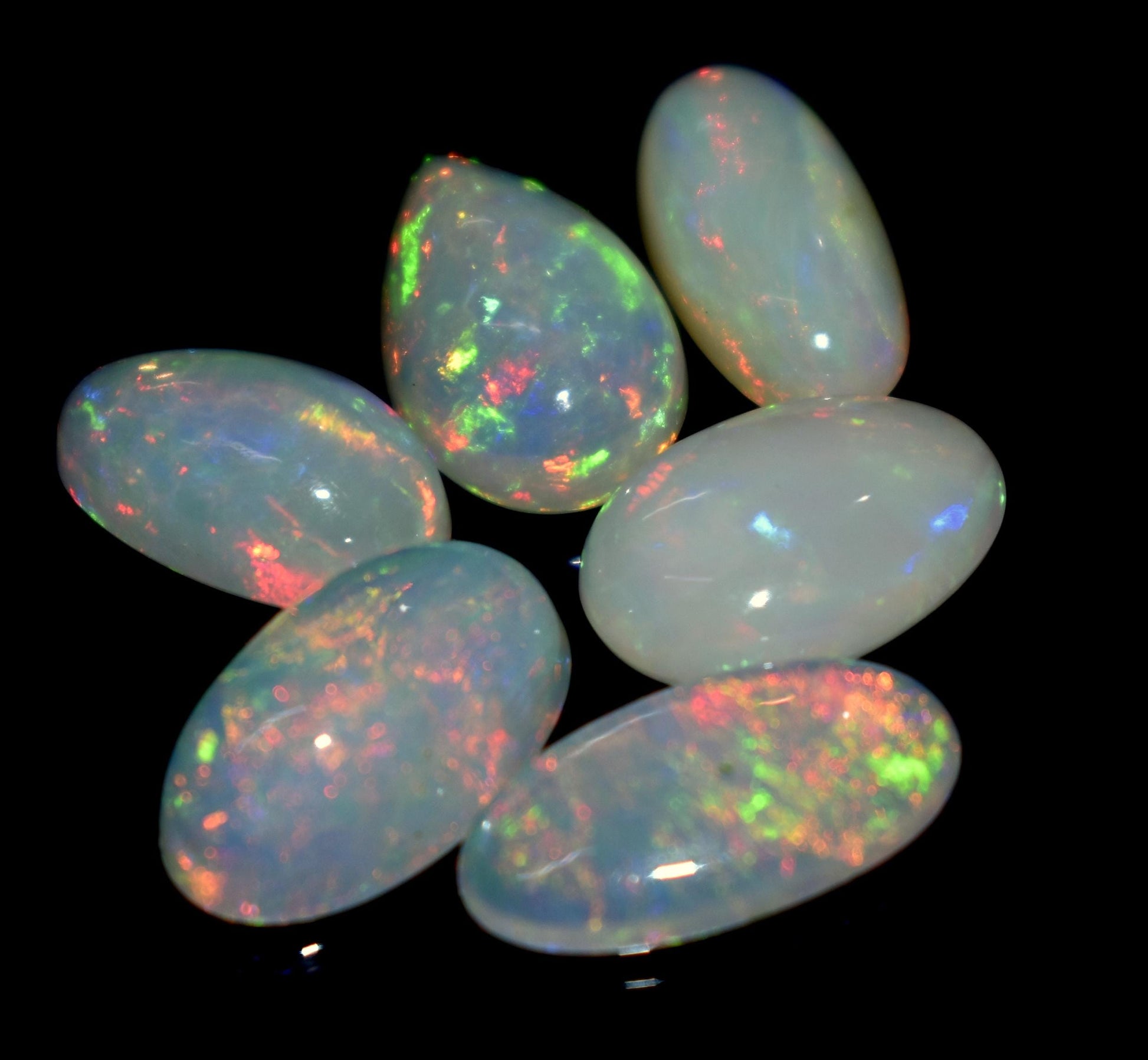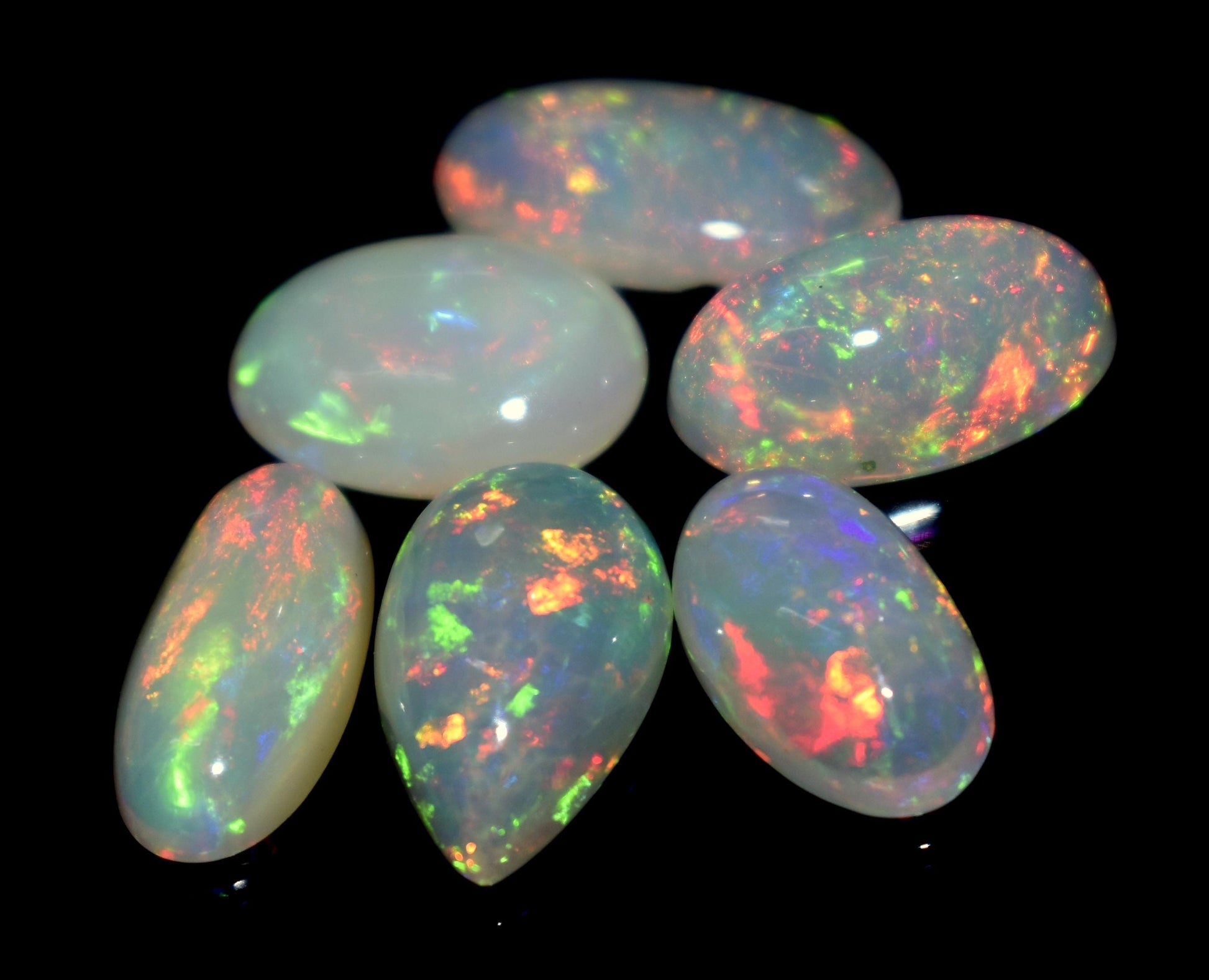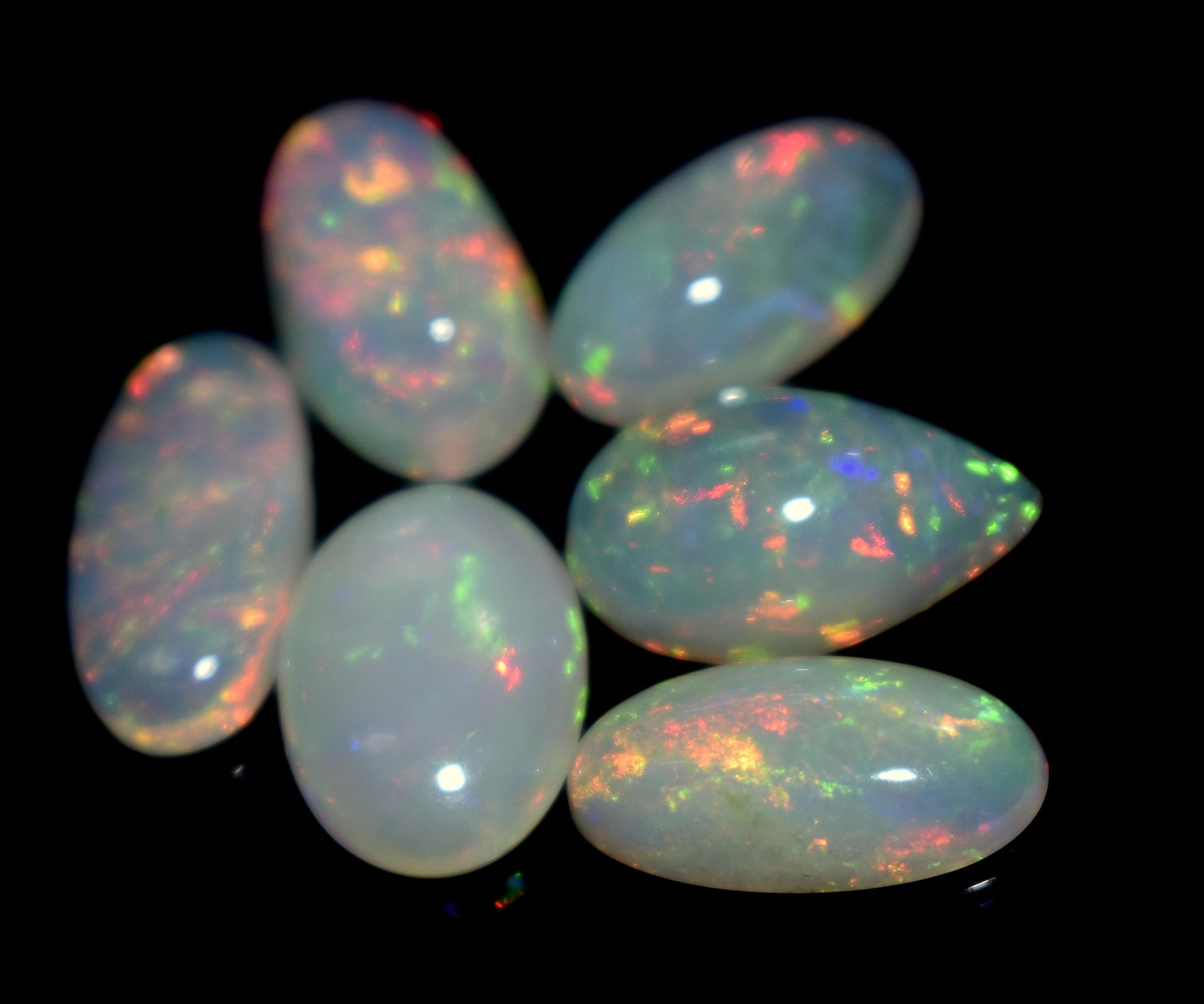 Opal, 100% Natural Ethiopian Opal, Mix Welo Fire Cabochon Gemstone Lot, 12.30 Ct, Size-14x7x3mm To 12x7x4mm, For Jewelry Making, PC-6