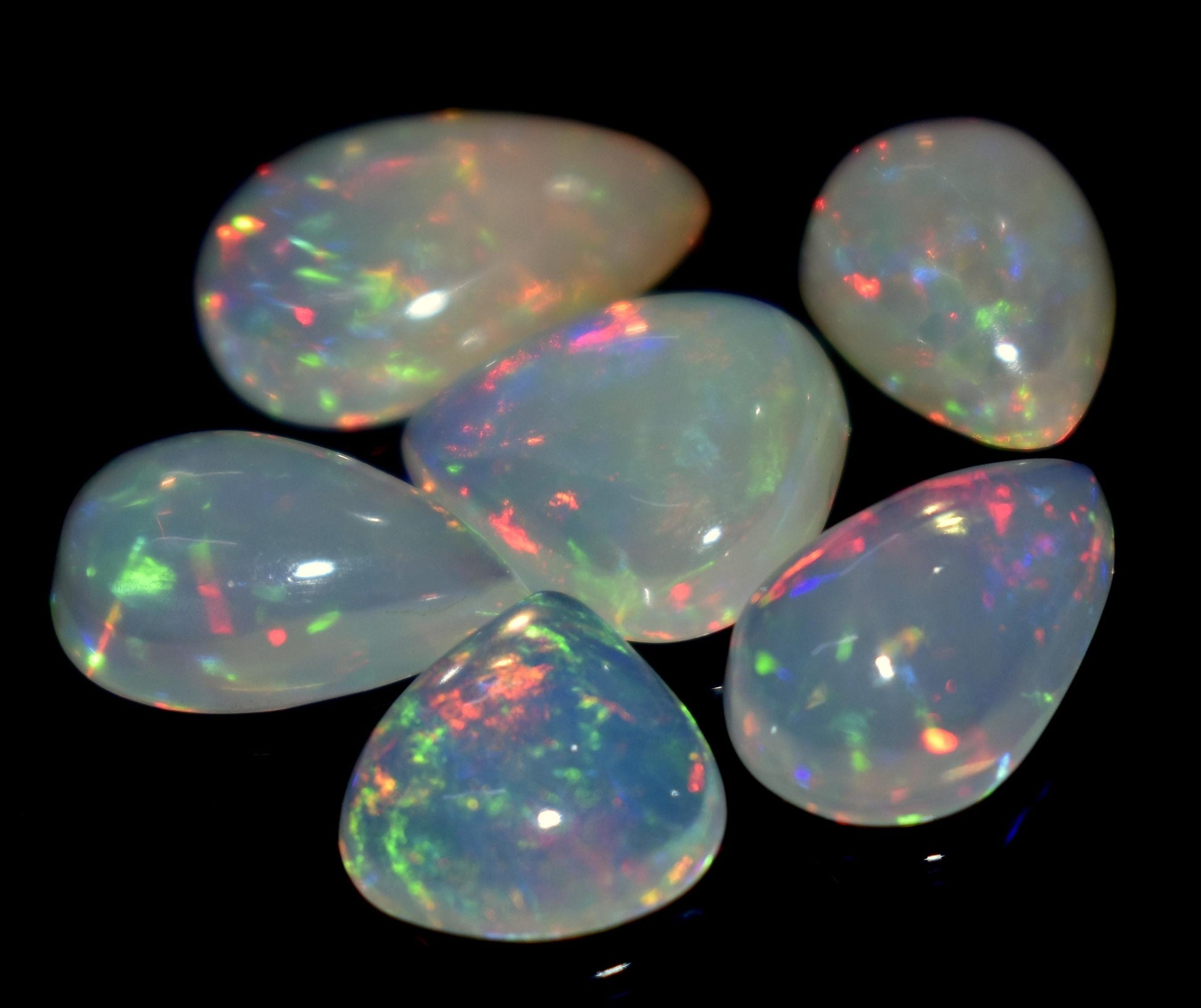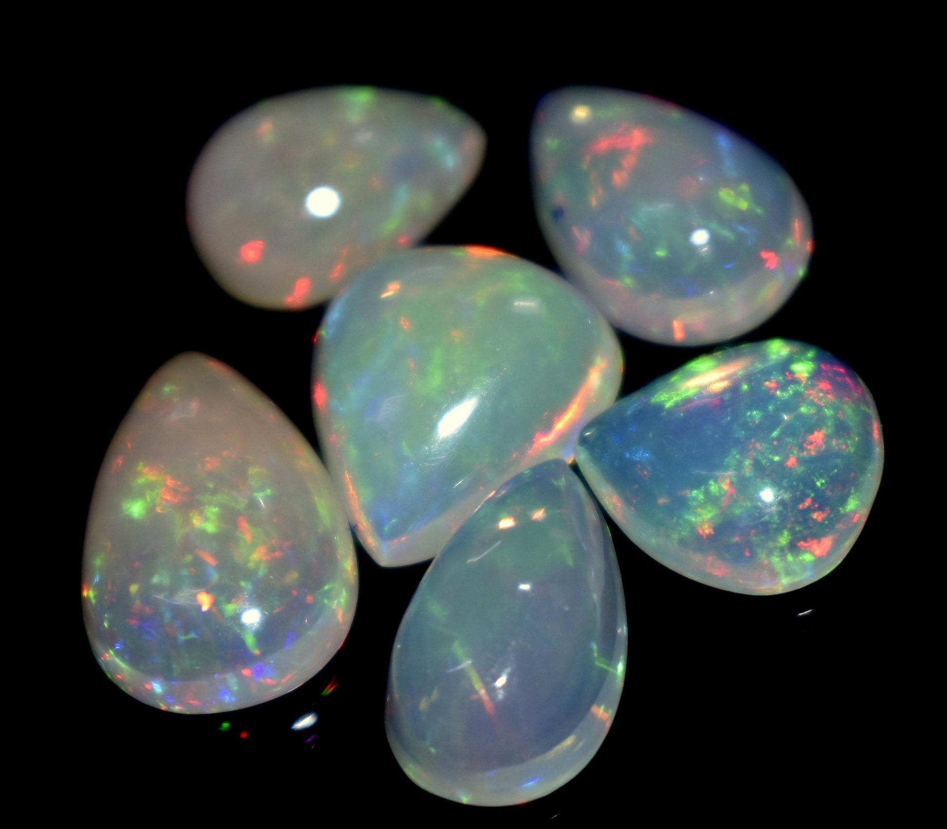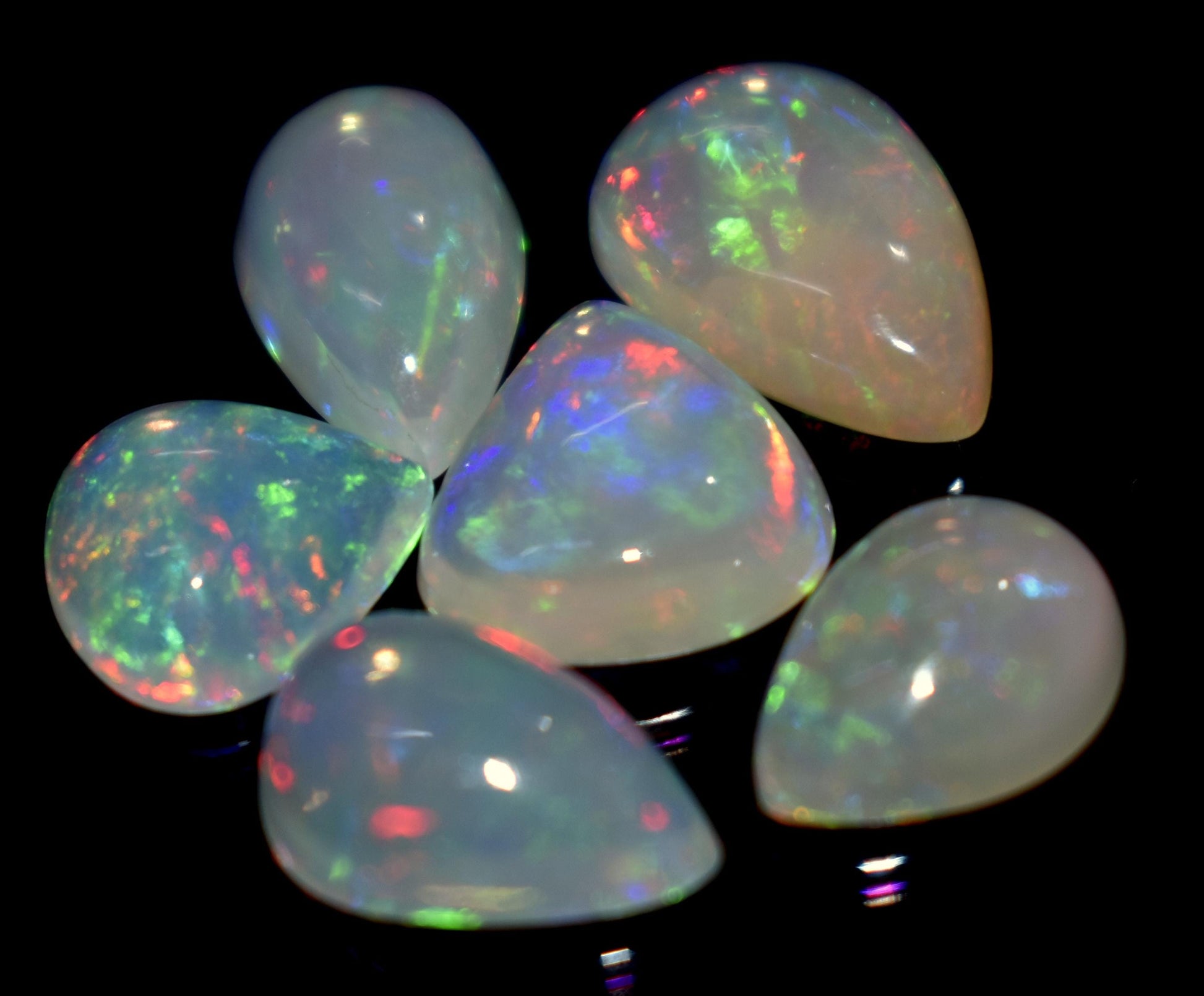 Very beautiful: 100% Natural Ethiopian Opal, Pear Welo Fire Cabochon Gemstone Lot