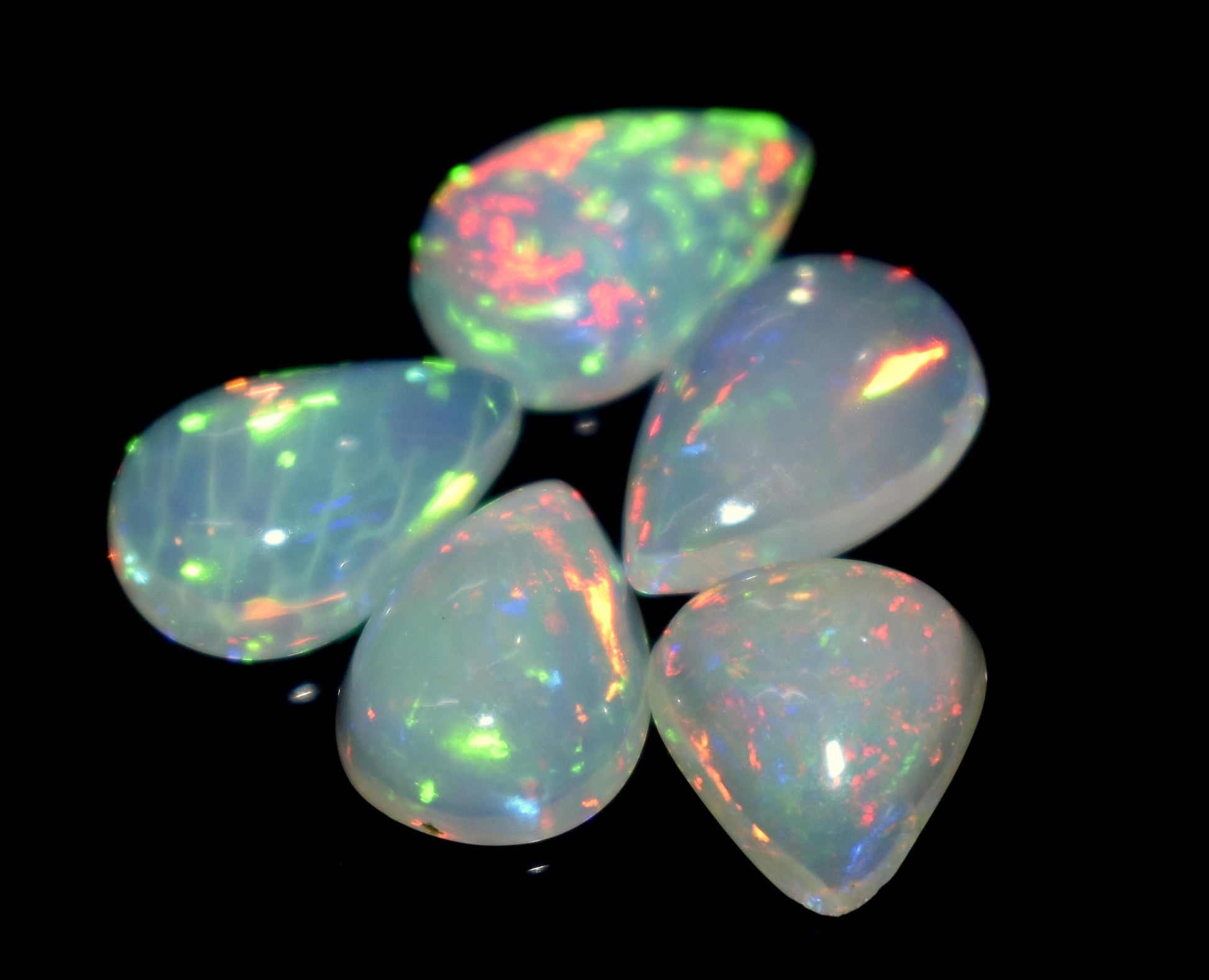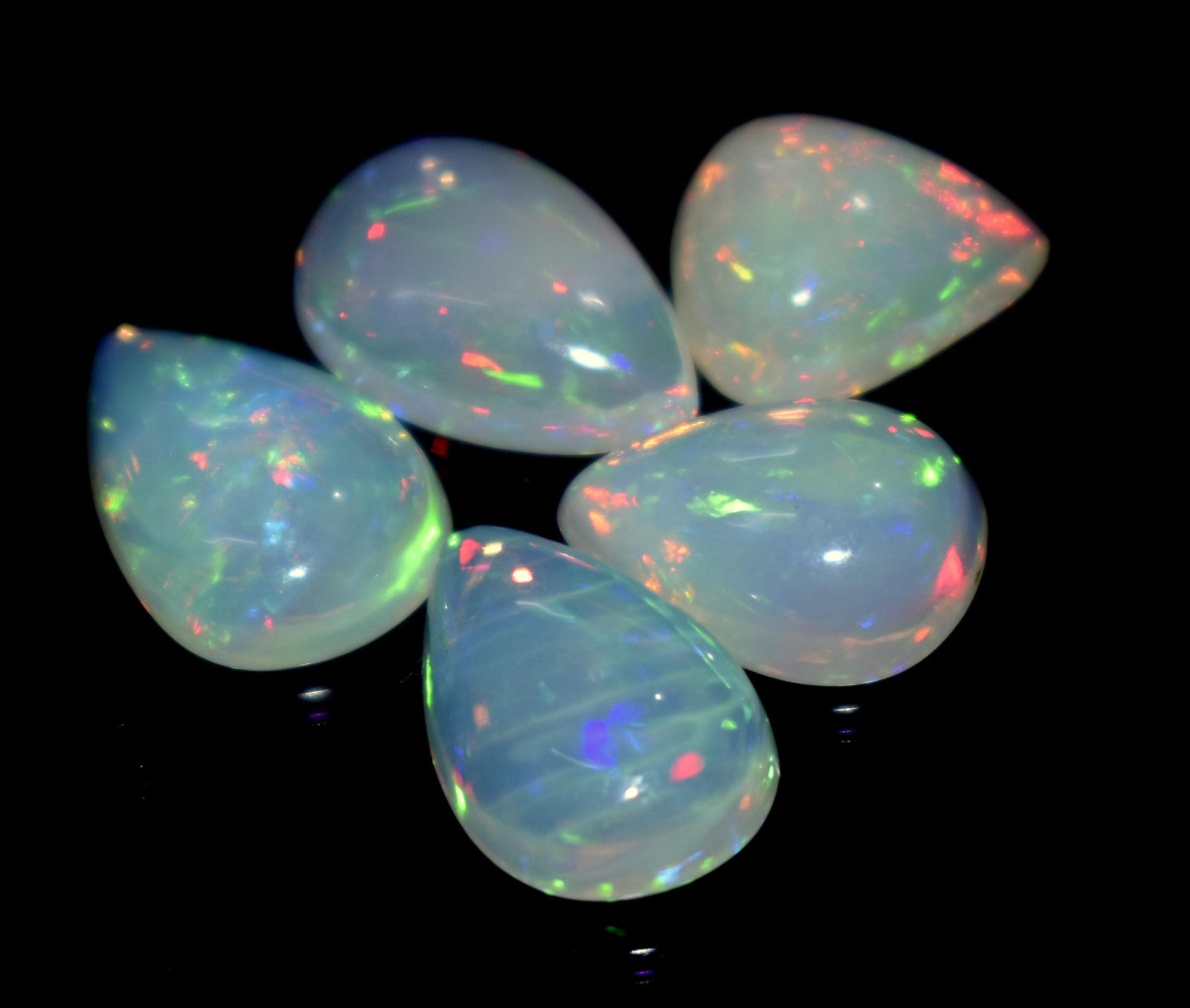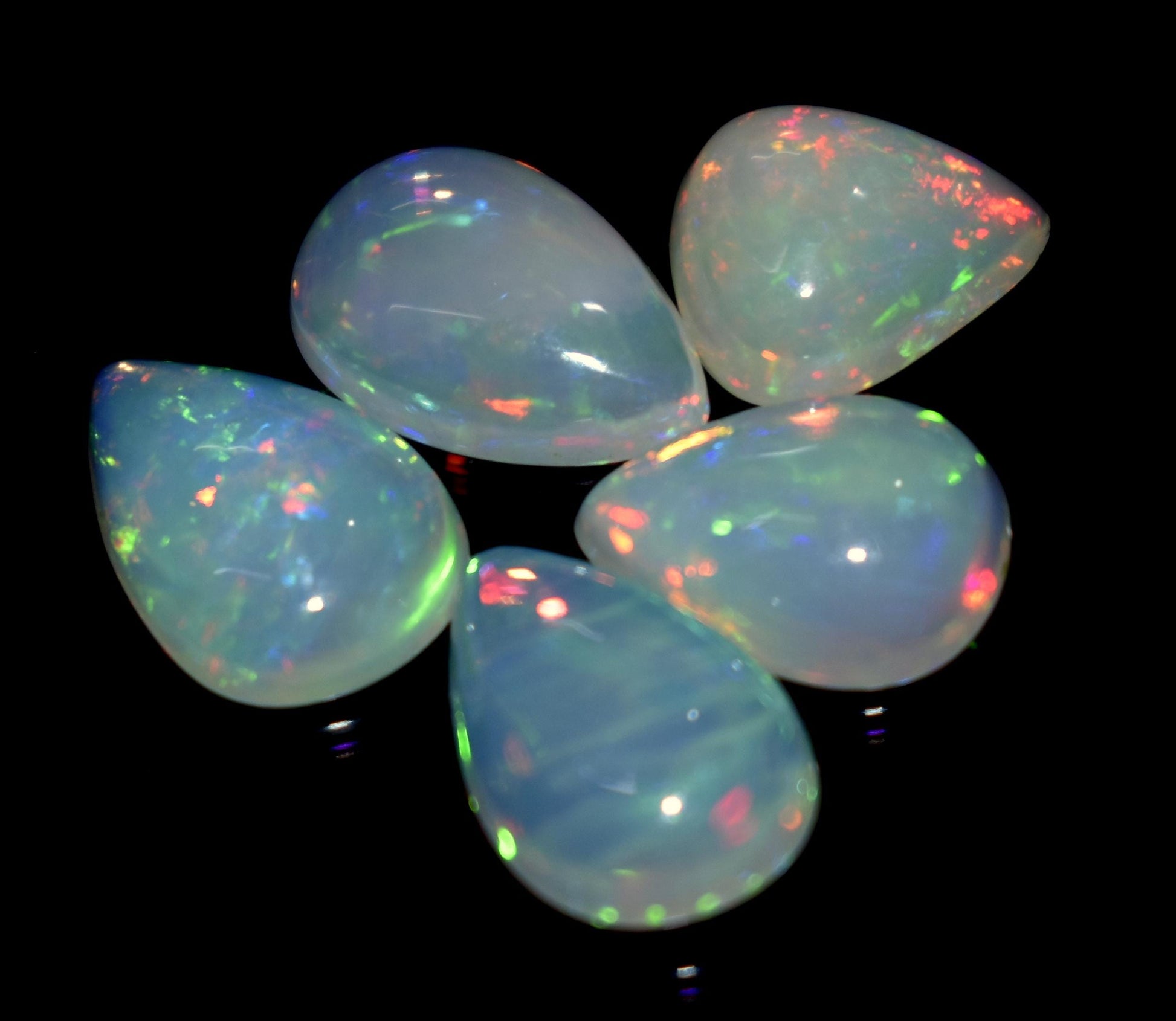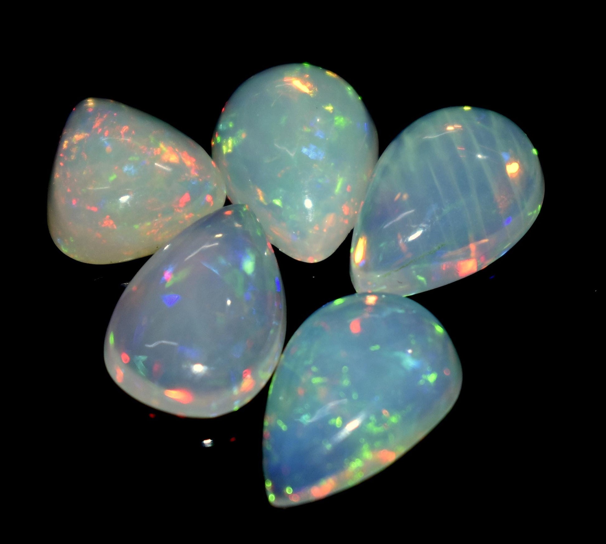 Opal, 100% Natural Ethiopian Opal, Pear Welo Fire Cabochon Gemstone Lot, 7.70 Ct, Size-12x8x3mm To 9.5x8.5x4mm, For Jewelry Making, PC-5