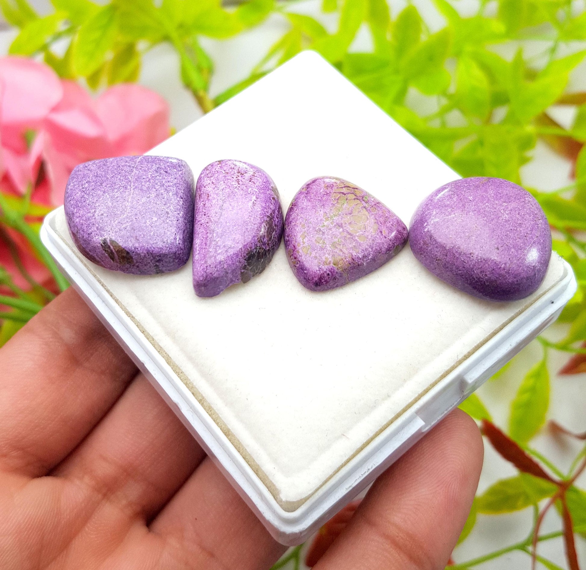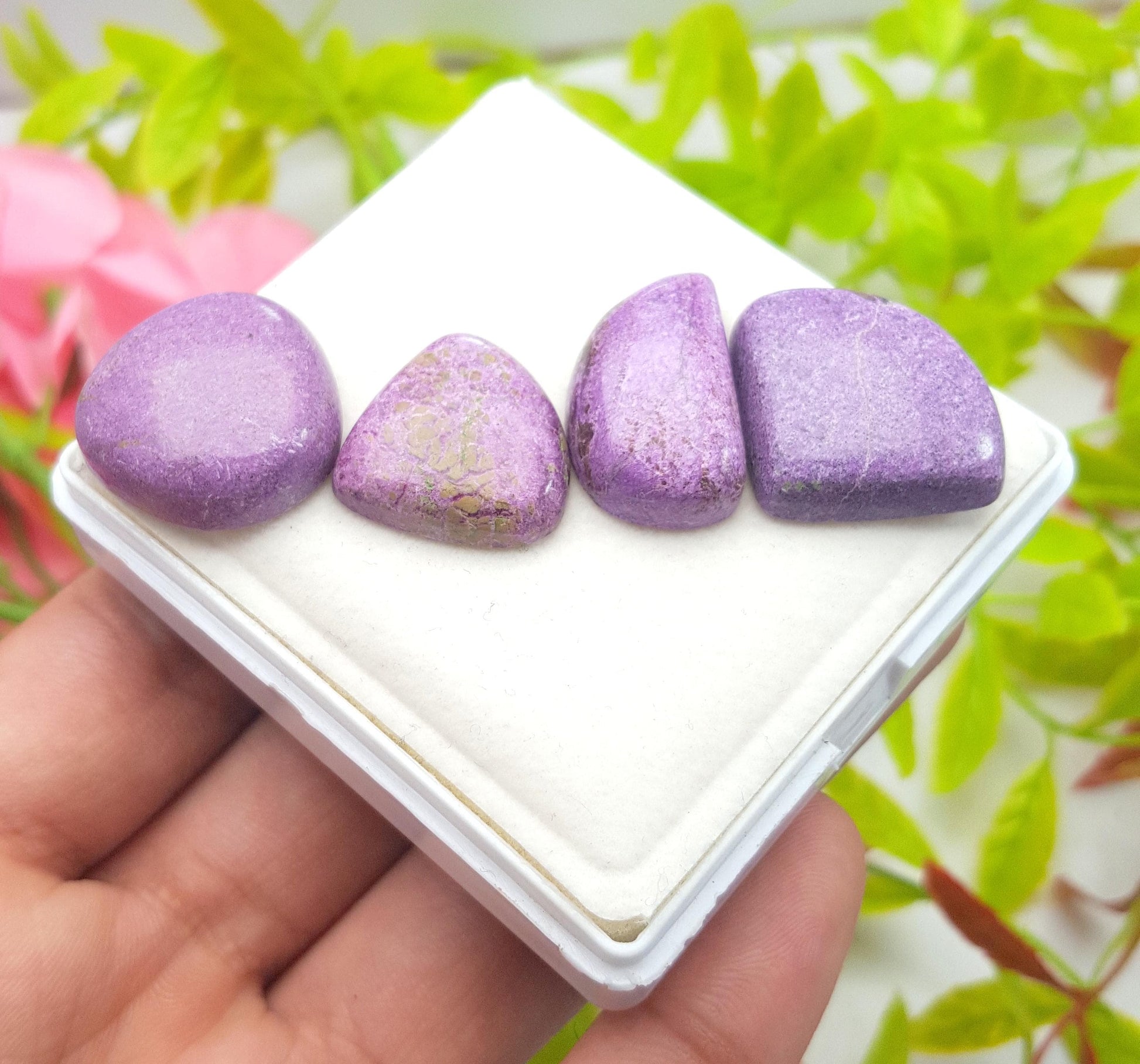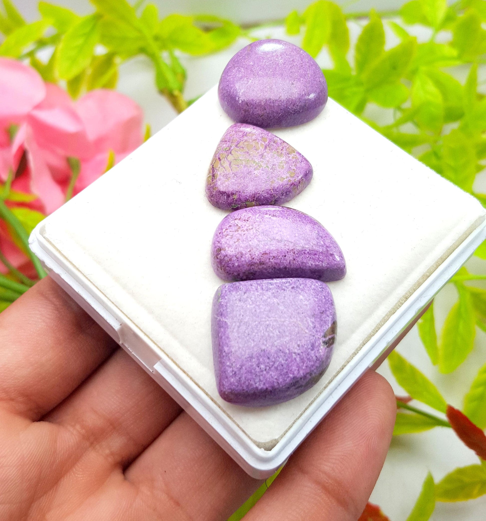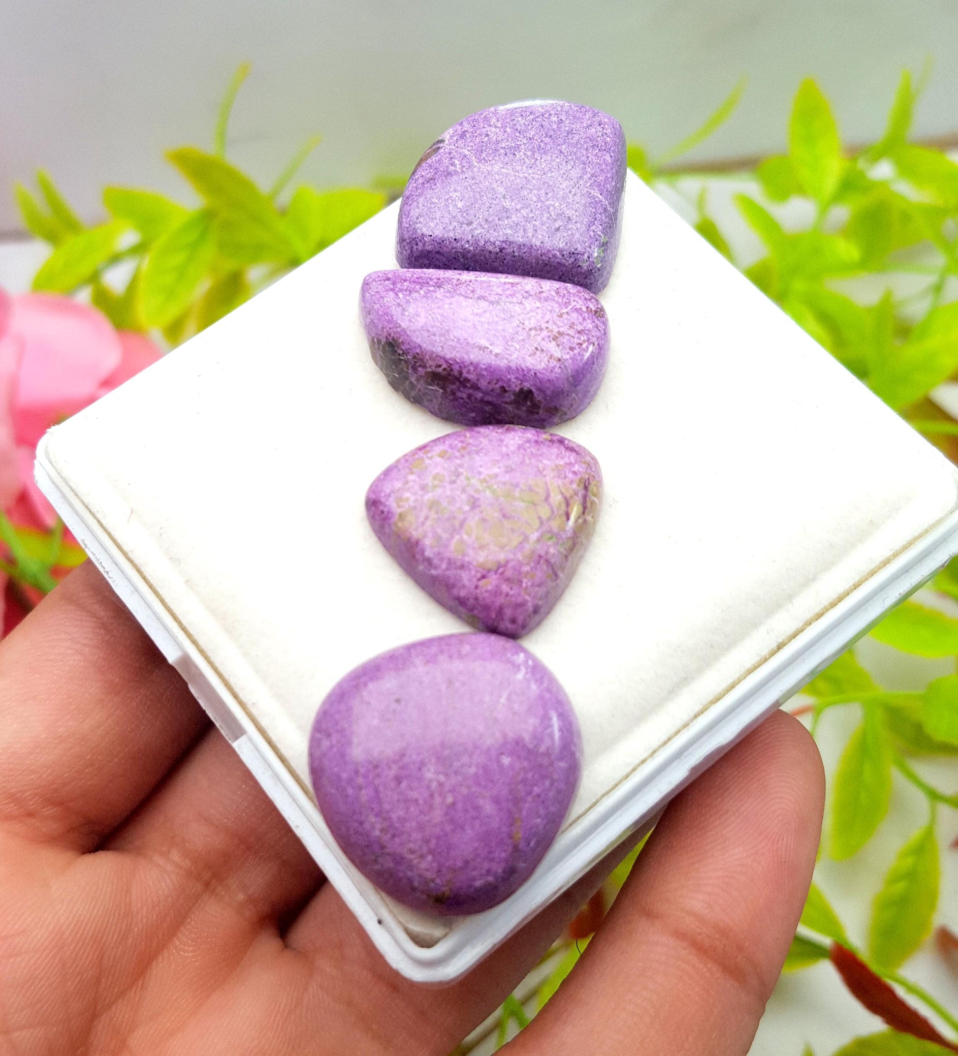Purpurite, Natural Purpurite, Mix Shape Cabochon Gemstone Lot, 60.15 Carat, Size-21x25x6mm To 22x13x11mm, Gift For Her, PC-4