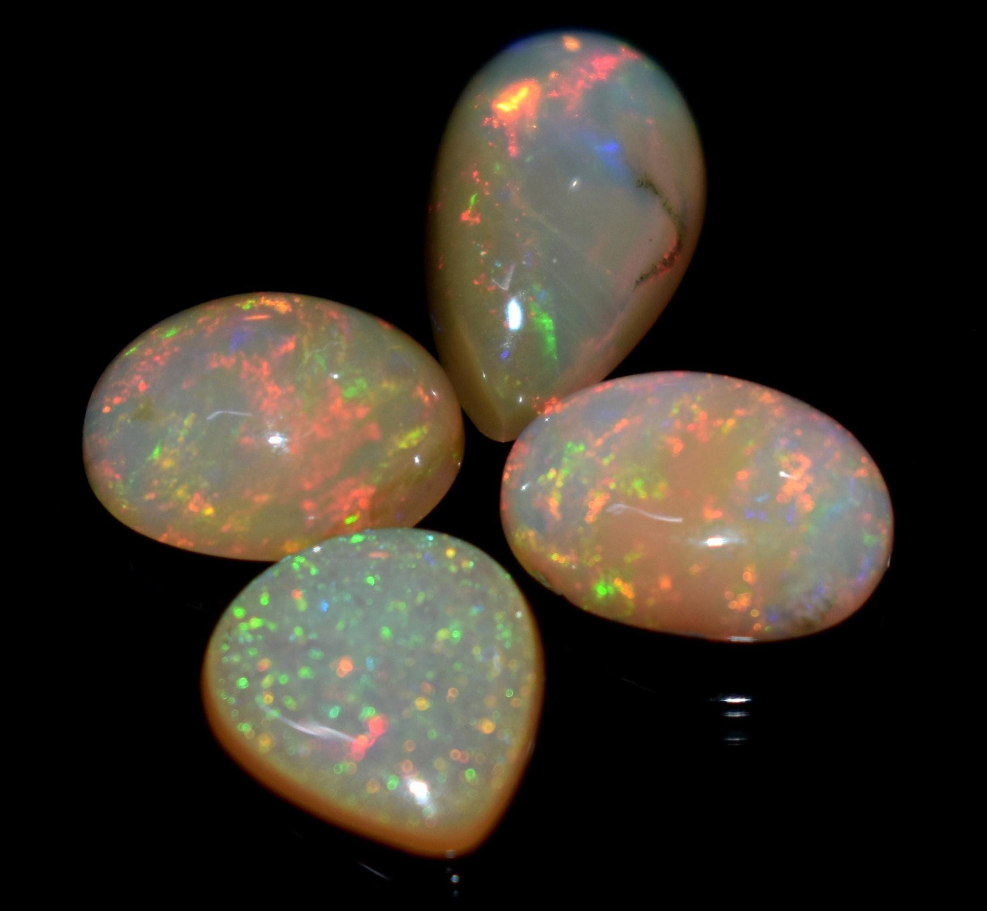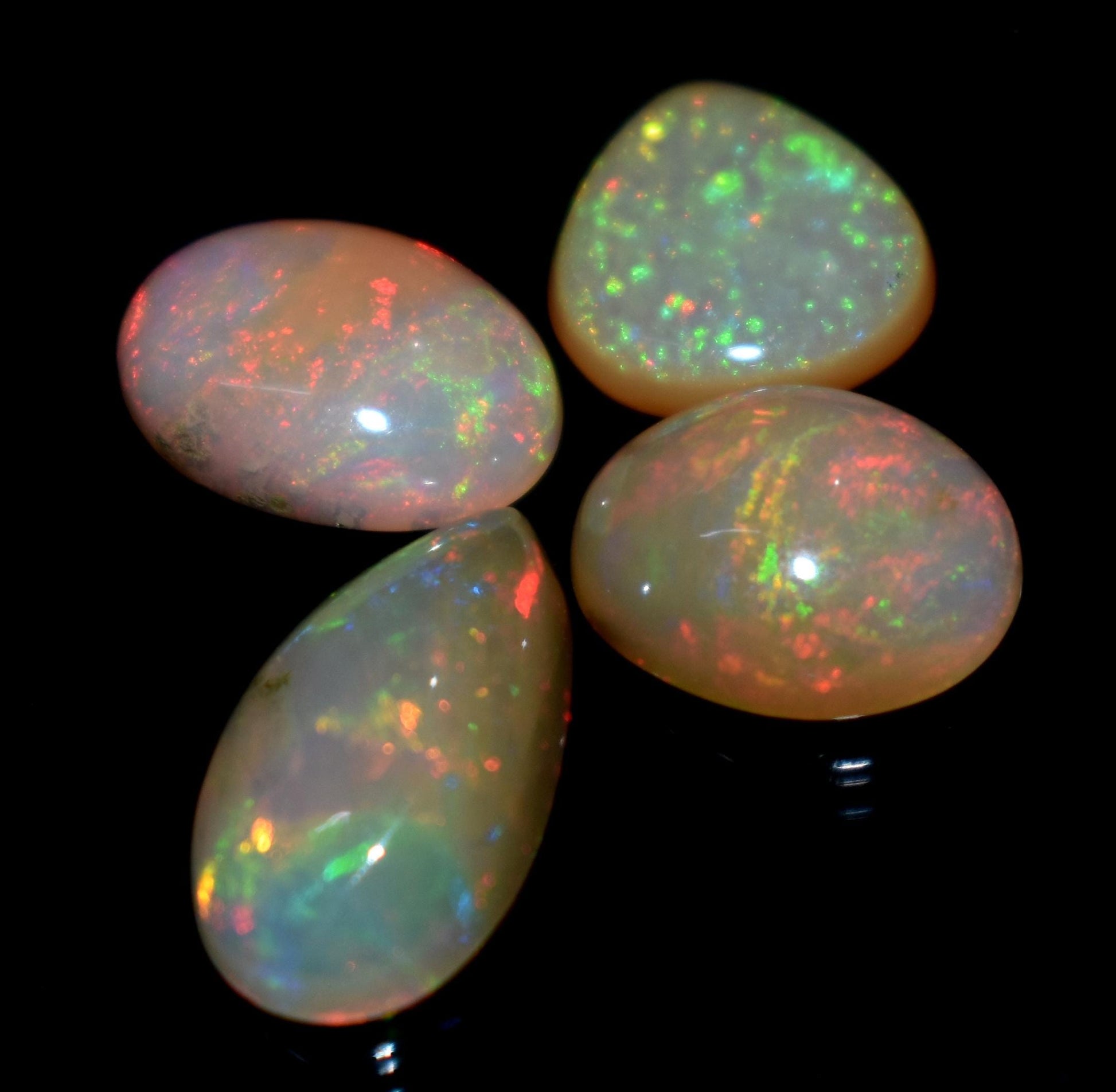 Rare & Natural Ethiopian Opal, Mix Shape Welo Fire Cabochon Gemstone Lot, 7.45 Carat, Size-14x8mm To 10x9mm, Gift For Her, PC-4