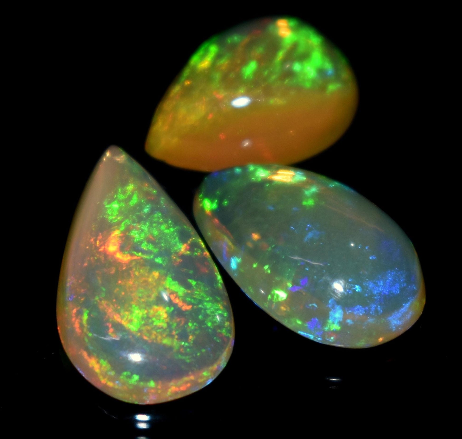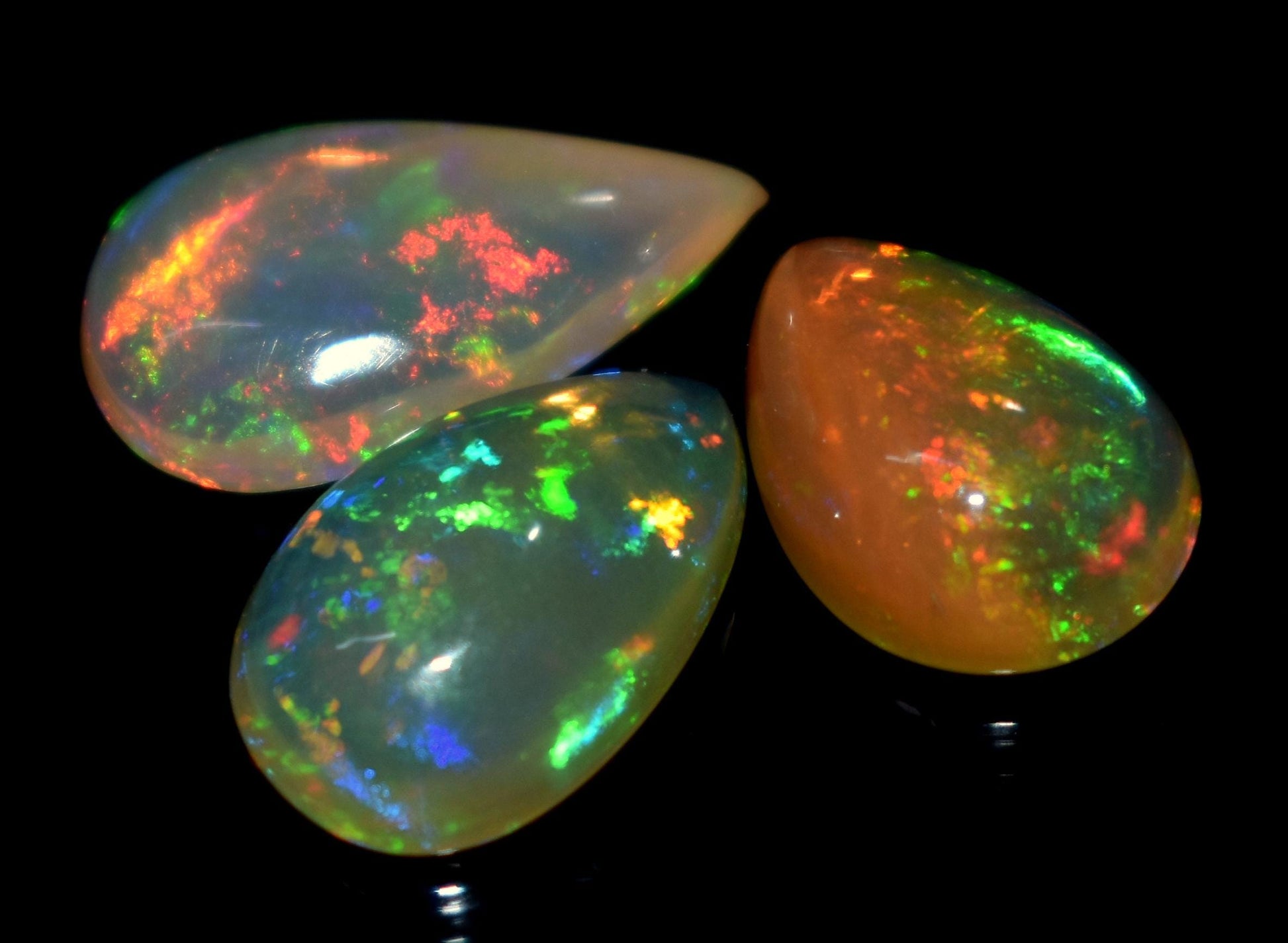 Very beautiful: 100% Natural Ethiopian Opal, Pear Welo Fire Cabochon Gemstone Lot