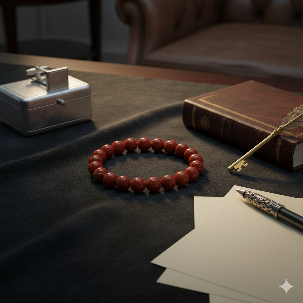 - Aesthetic: The stone has a deep red color, sometimes with specks of yellow or brown, creating a rich and earthy look. It's often polished into smooth beads for bracelets, making it both an attractive and meaningful accessory.