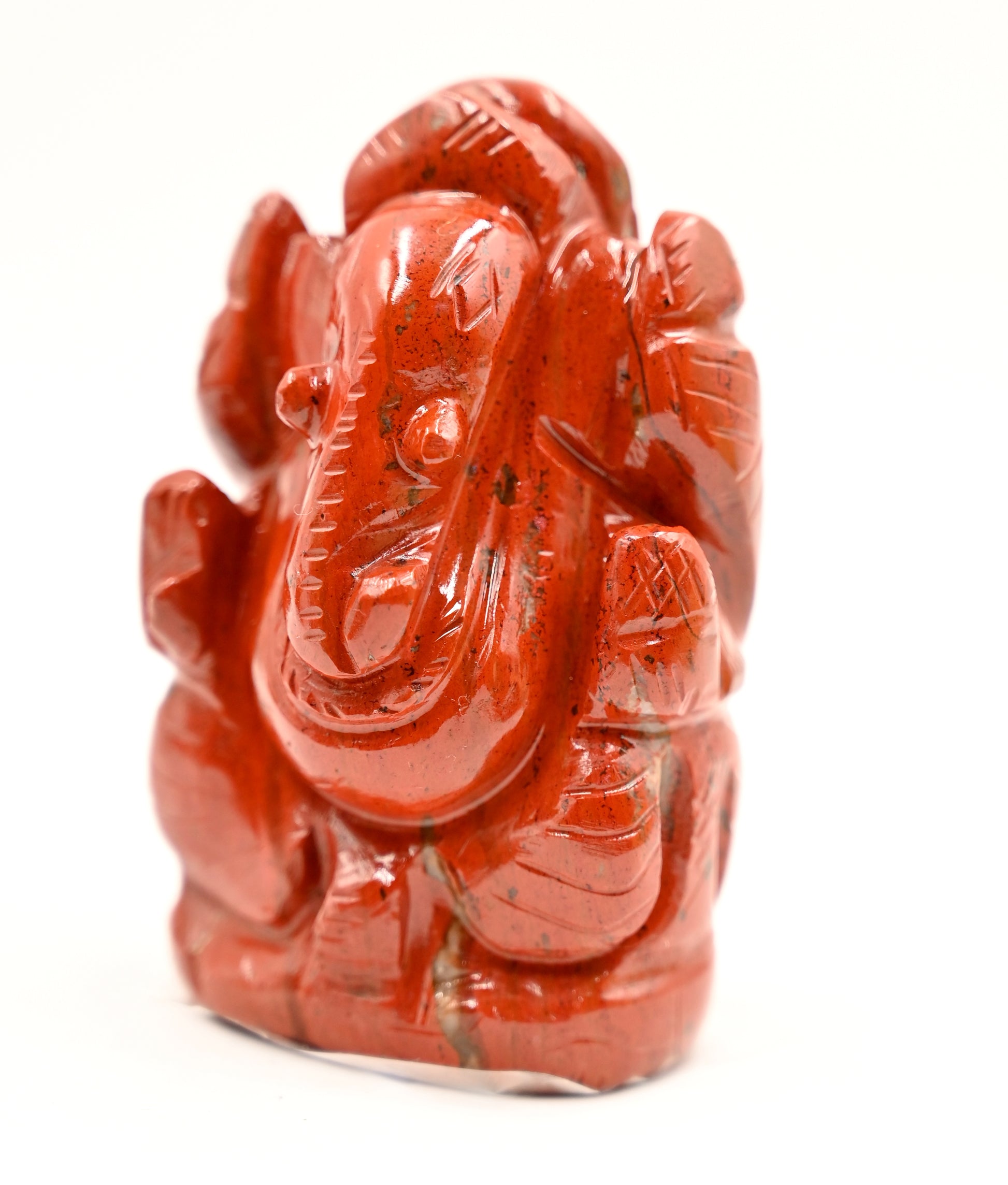 Invoke the blessings of Lord Ganesha with this beautifully hand-carved Red Jasper Ganesh idol. Weighing 151 grams, this sacred piece is not just a symbol of wisdom and new beginnings, but also a powerful source of grounding energy.