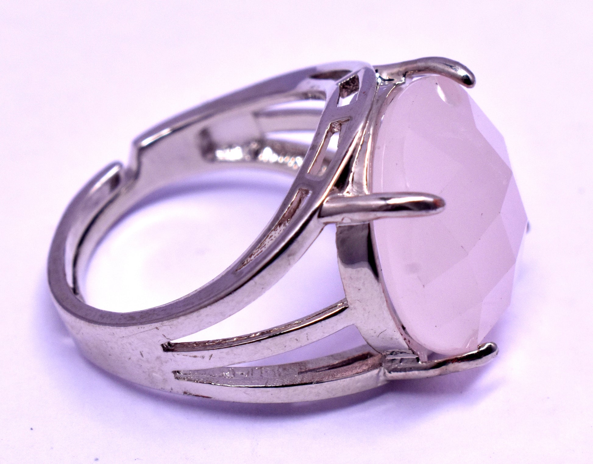 Rose Quartz Faceted {Cut} Round Shape Adjustable Ring, {Weight - 5.60 Gram}