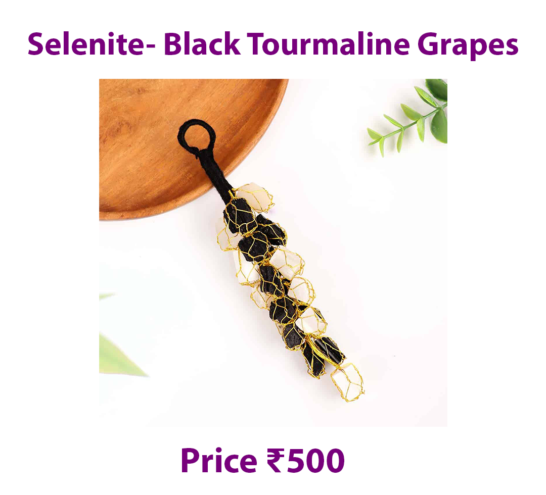 Experience the powerful combination of Selenite and Black Tourmaline in a beautifully handcrafted grape cluster design. This unique crystal accessory not only enhances the aesthetics of your space but also serves as a strong energy cleanser and protector.
