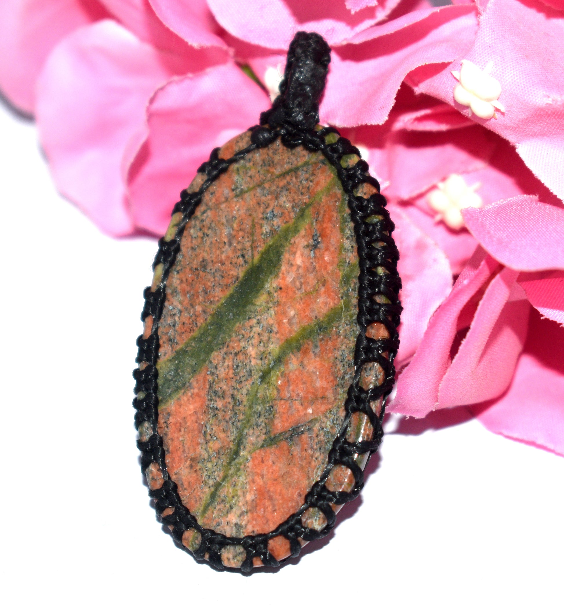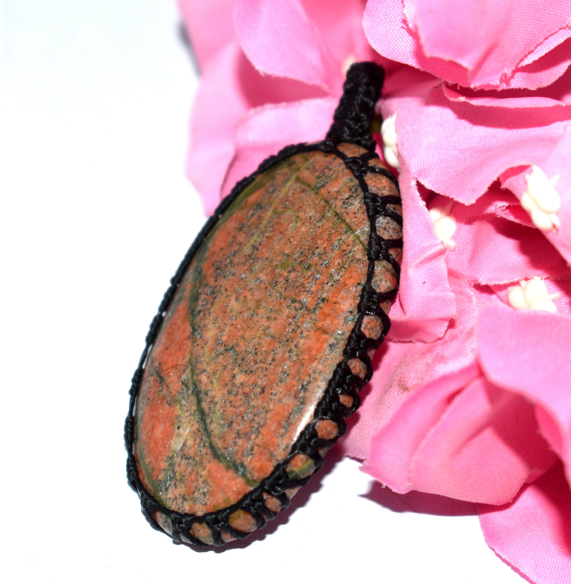 Unakite Cabochon Macramé Pendant